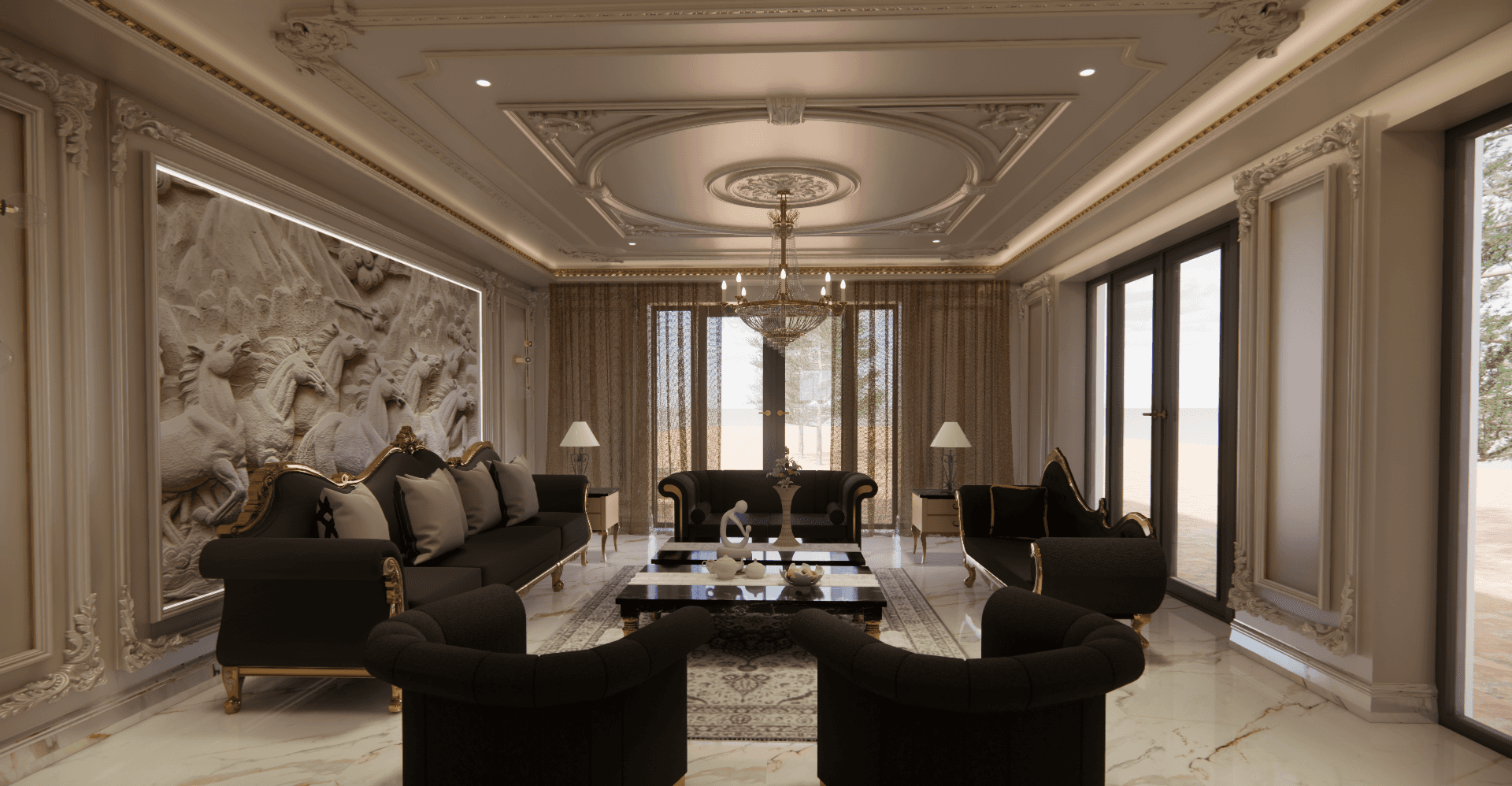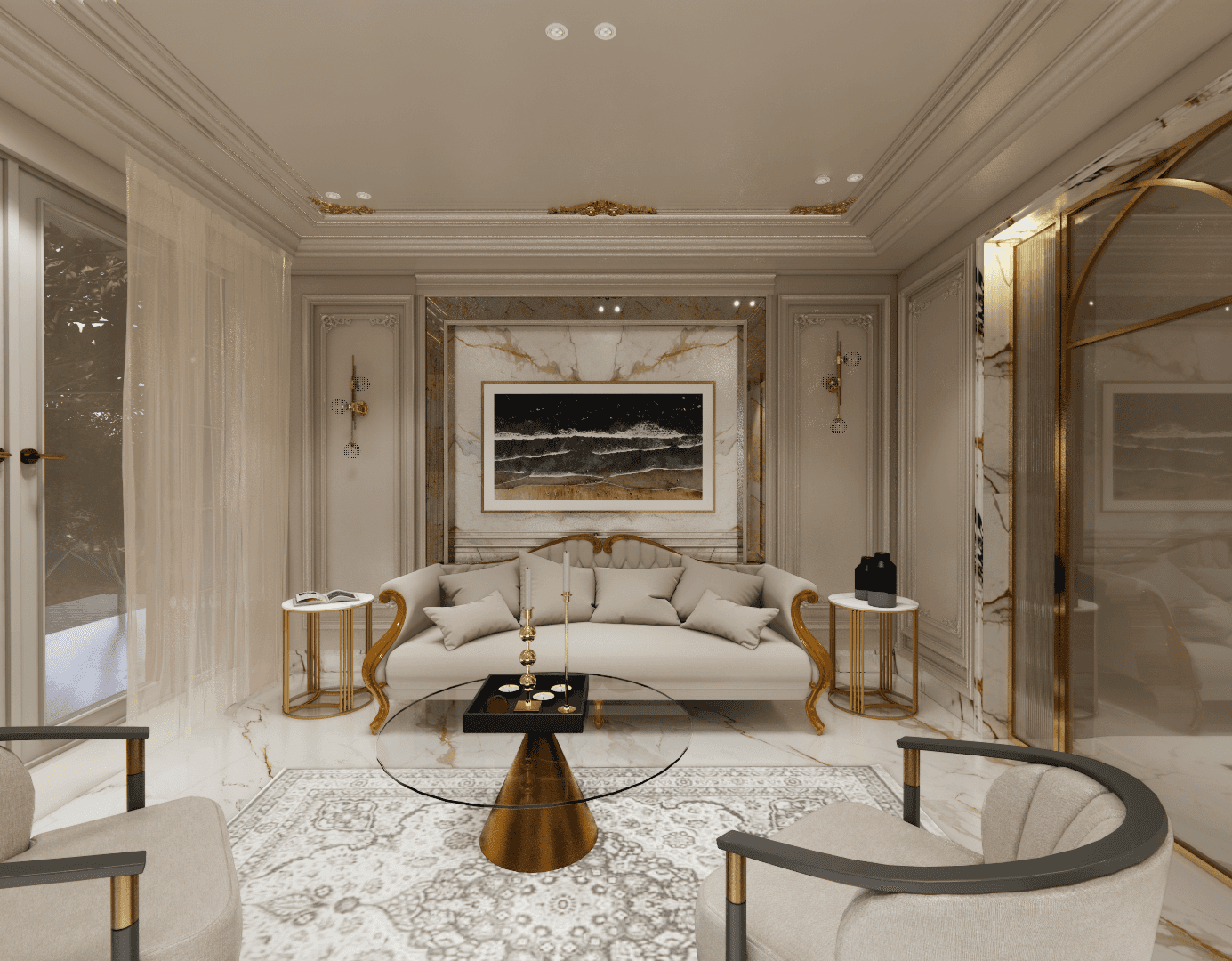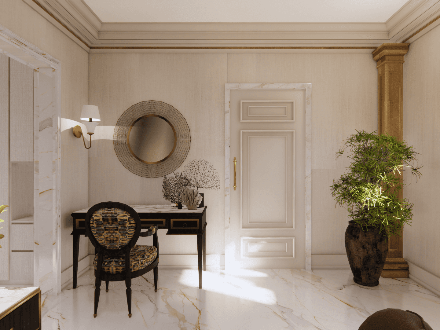 A high-end residential project in North London designed for an Iranian family with a taste for opulence and refinement. The design seamlessly blends classical elegance with contemporary luxury, incorporating bespoke details, intricate moldings, rich material palettes, and exquisite finishes.