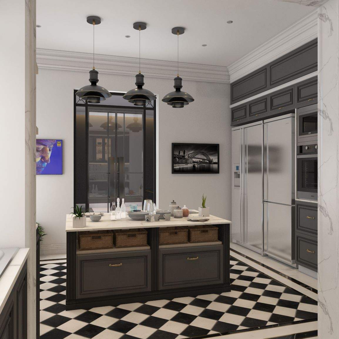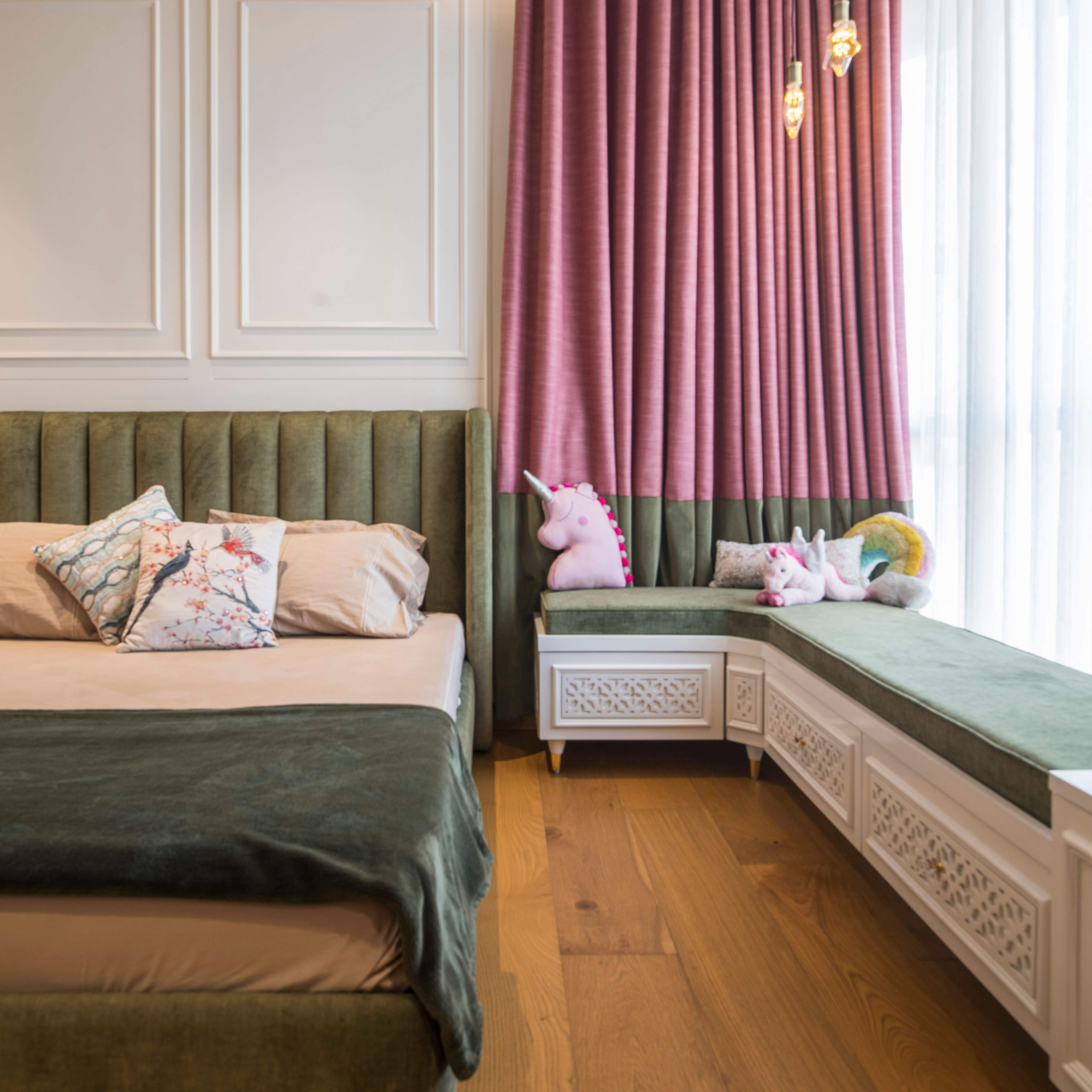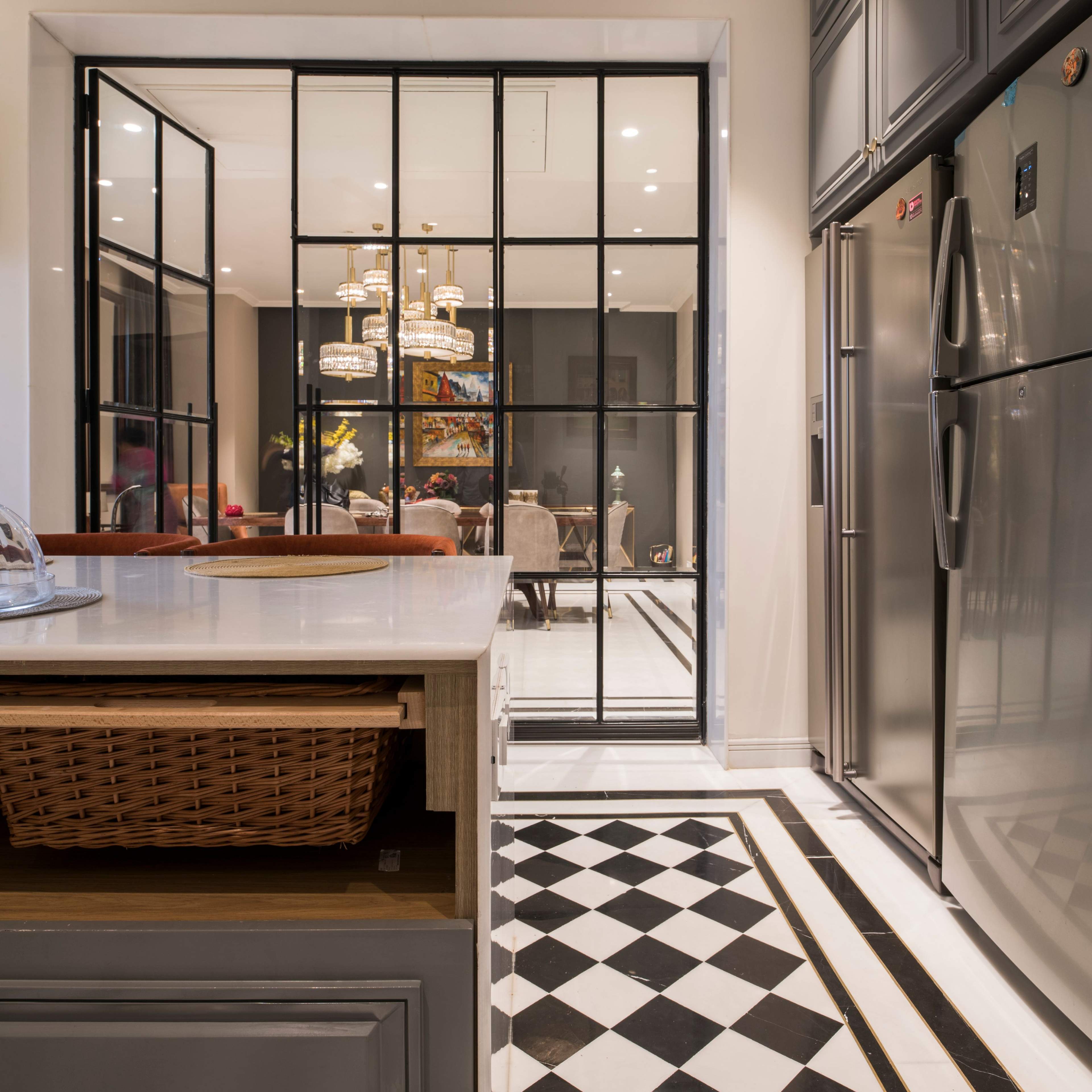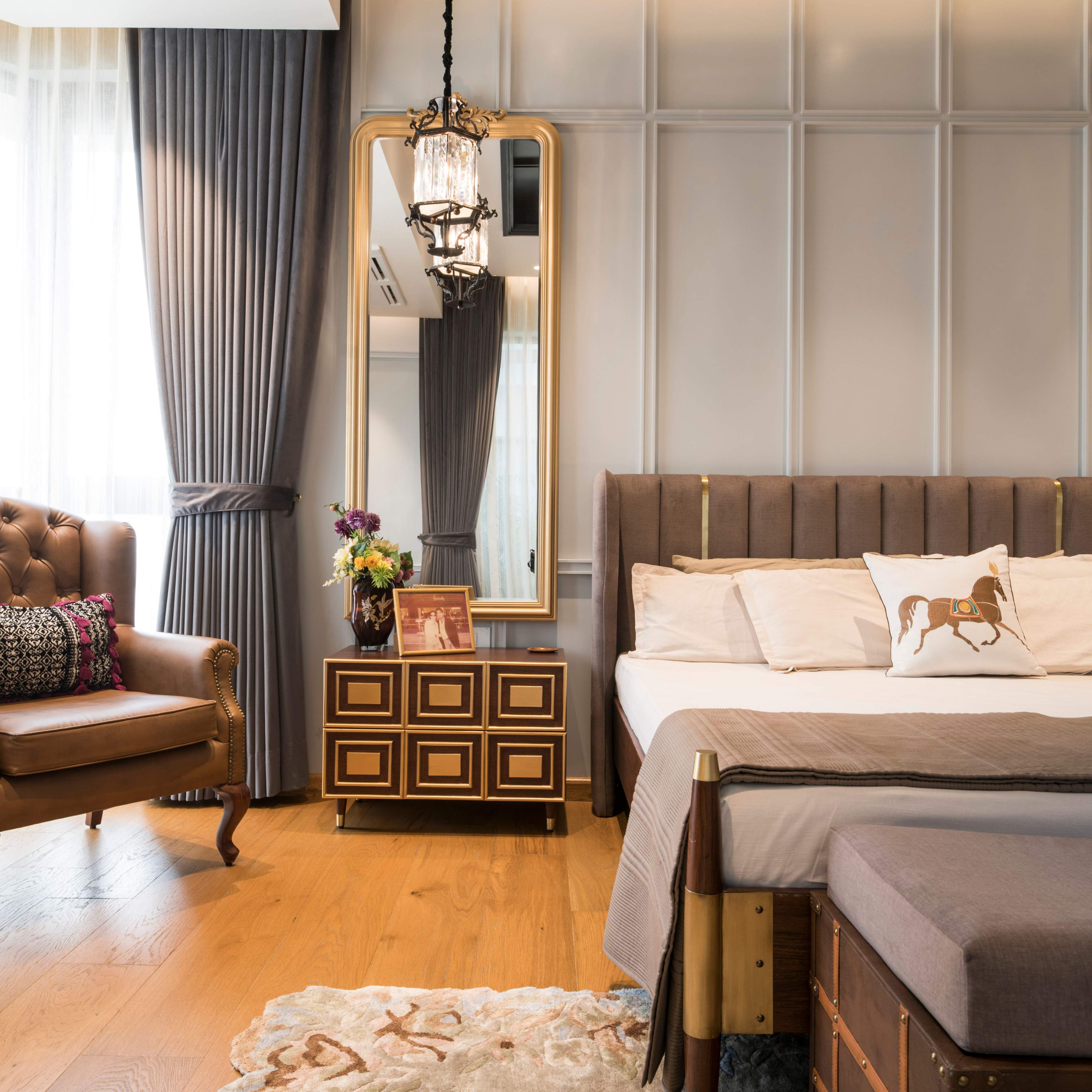 As one climb upstairs on the family's private floor, the spatial configuration is carefully arranged to accommodate their needs and lifestyle. Opening into a spacious living area, the floor plan encourages gathering and relaxation with ample seating. Adjacent to the living area is a dedicated office space. The master bedroom is strategically positioned for privacy, offering a tasteful neo-classical décor. Likewise, the kids' bedroom is conveniently located nearby, fostering a sense of independence while ensuring easy access for parents.