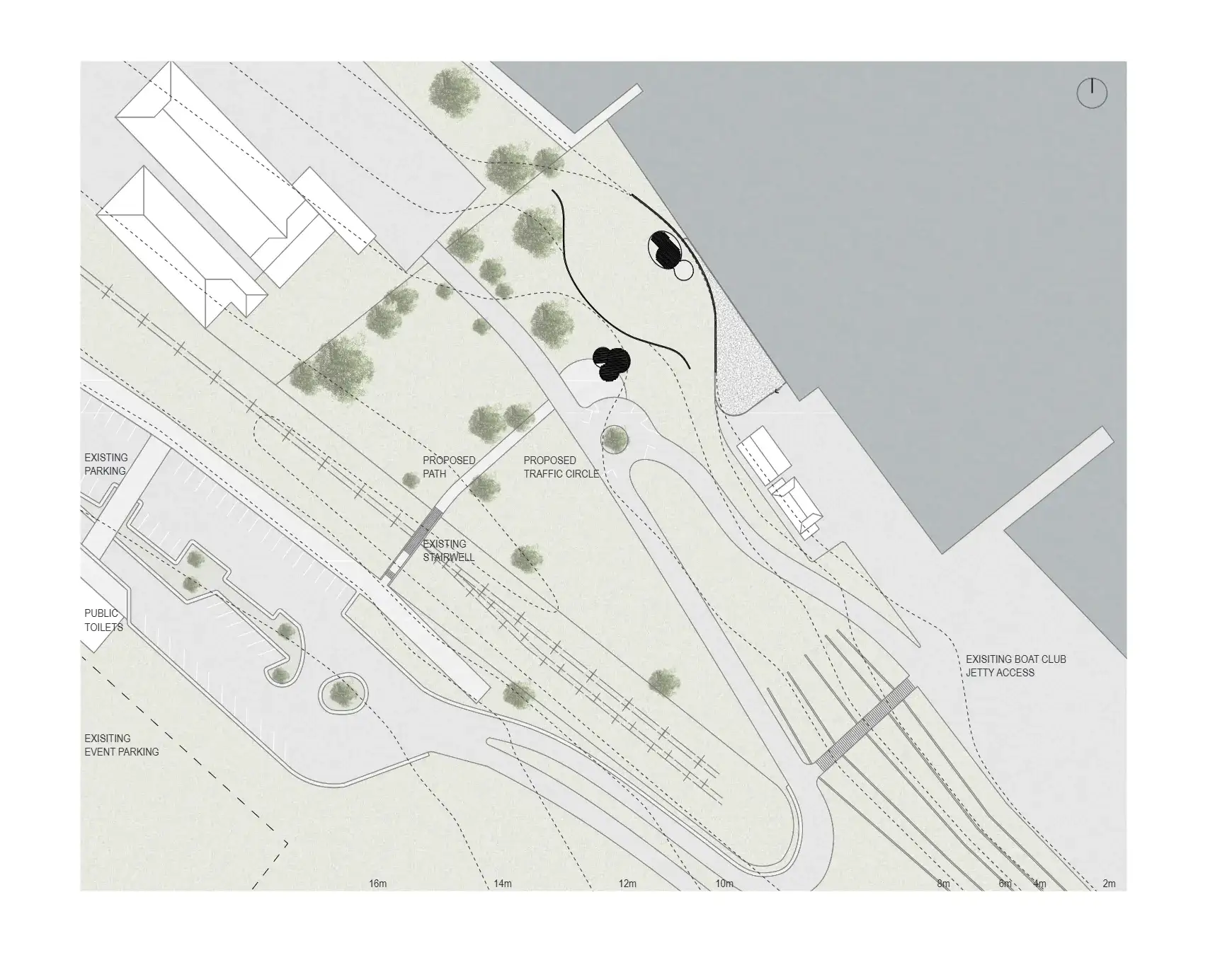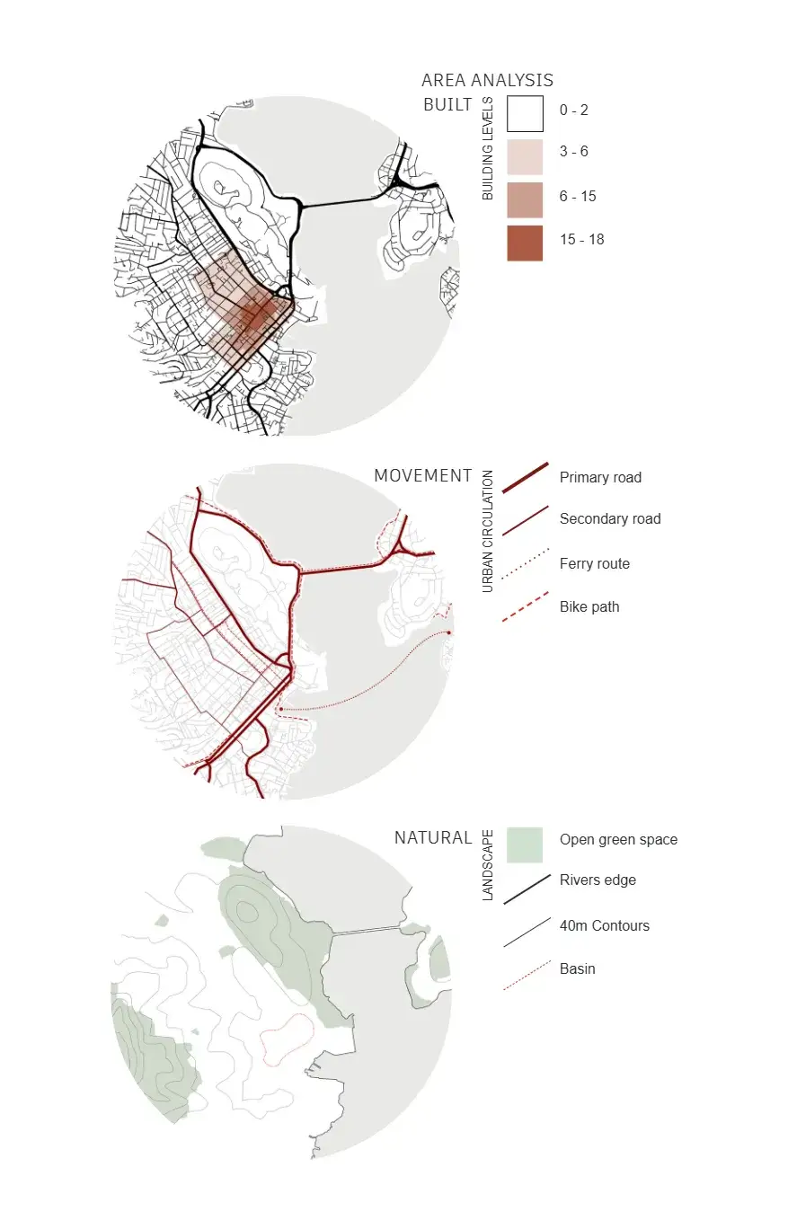We were assigned Macquaries Point, Hobart, Tasmania, as the site for a public pavilion. Following an investigation of the area’s natural and built landscape, history, culture and existing social systems; we proposed a small scale multi-purpose music venue and restaurant functioning as an indoor and outdoor space. The preliminary assignment encouraged us to explore the underlying concepts of a sub-genre of punk. Forest punk inspired the initial idea of transforming the natural landscape into habitable space. We explored following the natural patterns of the slope to build the architecture into the land, merging angular geometry with organic organizations. We pursued building into the slope to maximize the usable outdoor public area and expansive views.