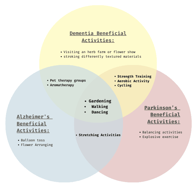 Use case study analysis and research about activities that positively impact patients cognitive decline with the mentioned mental illnesses to incorporate meaningful and impactful activities through strategic design into the programming.