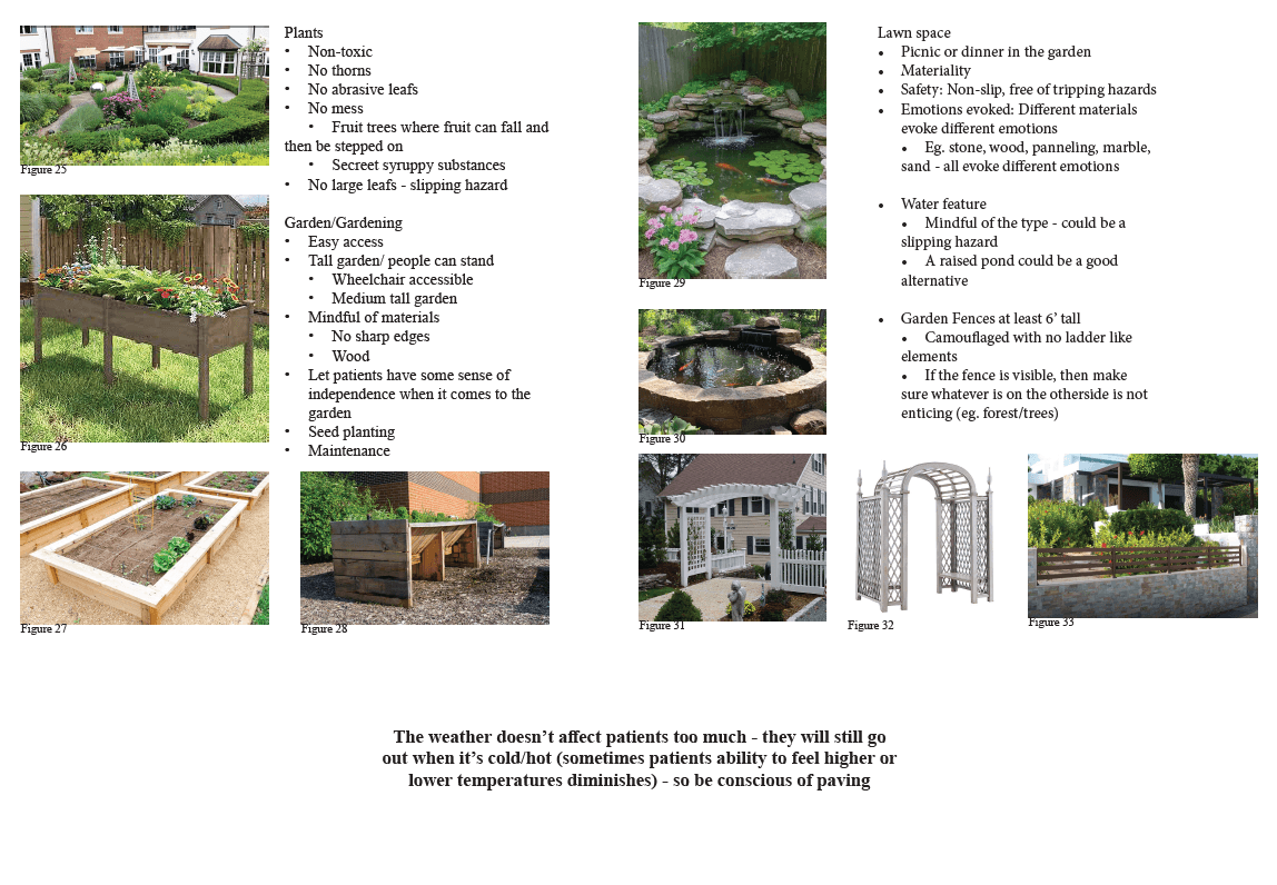 How can landscape design be naturally incorporated for the benefit of patients suffering with Dementia, Alzheimers and Parkinsons?