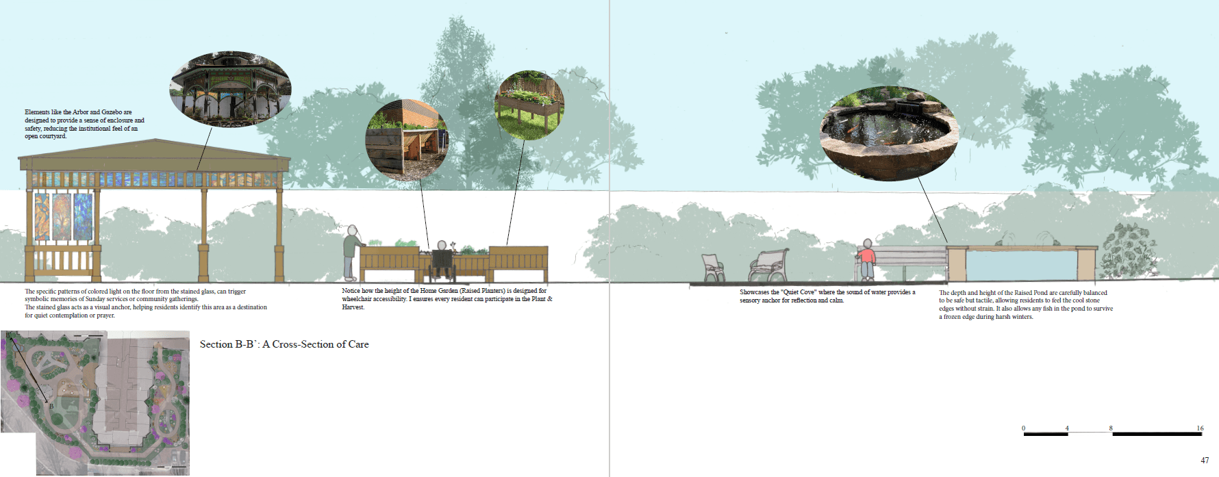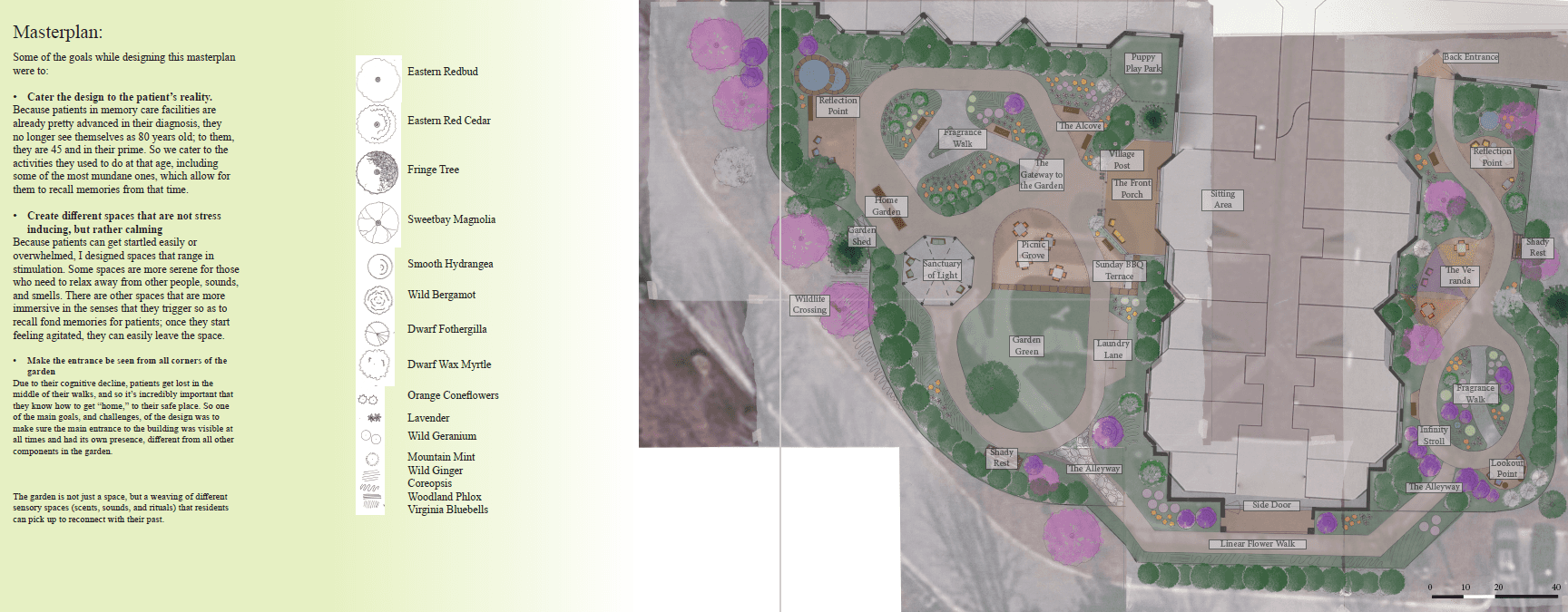 This project explores how landscape design can serve as a therapeutic tool to support individuals living with neurodegenerative conditions—such as Dementia, Alzheimer’s, and Parkinson’s disease—by helping delay cognitive decline, encouraging physical activity, and enhancing overall well-being.