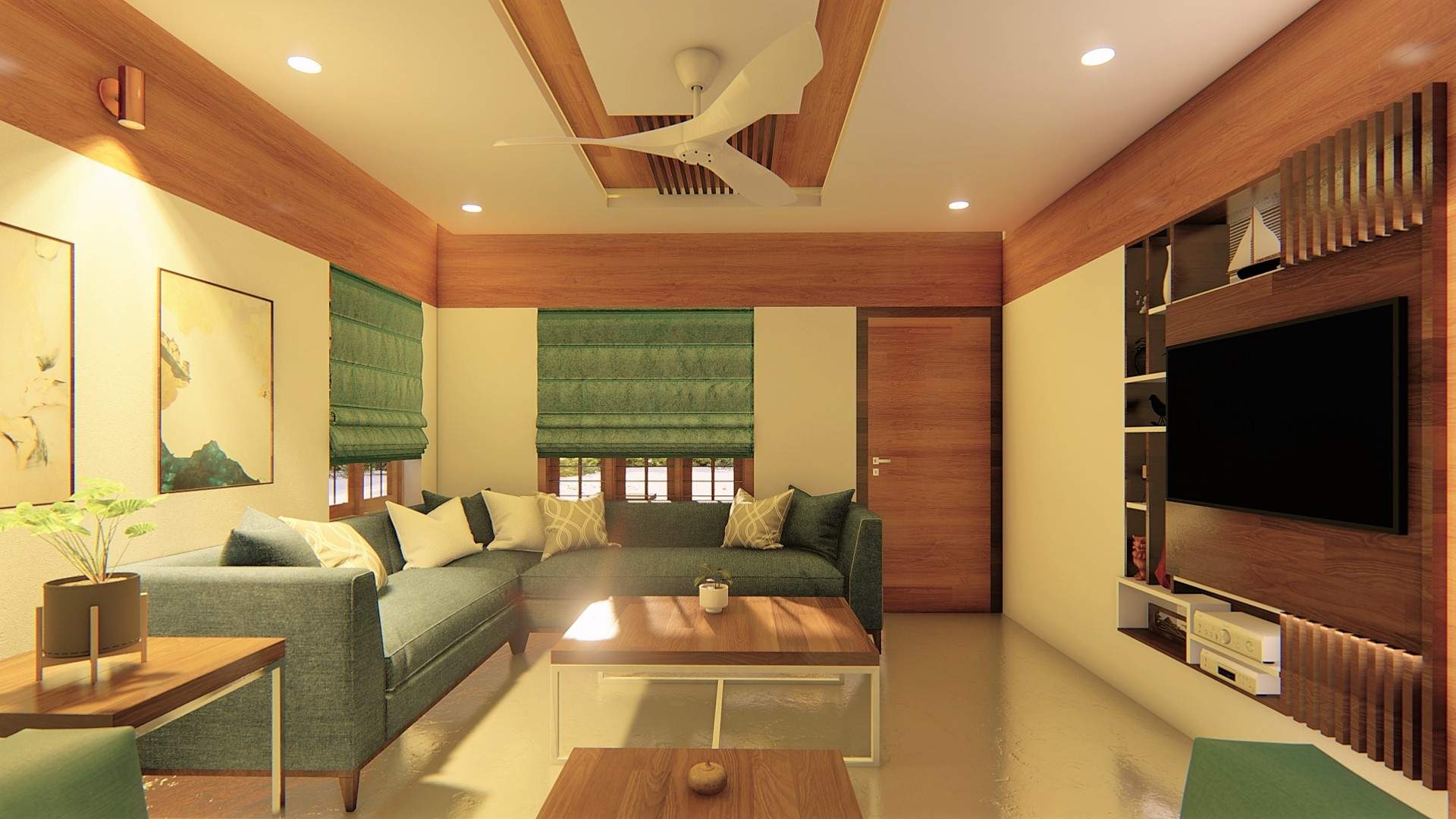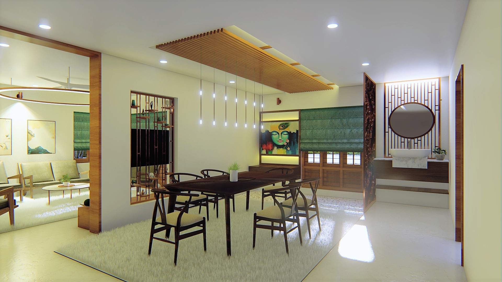 I worked as an architect on a residential project for a family of three in a suburban neighborhood. Our goal was to create a modern and aesthetically pleasing home that was functional as well. The interiors were mostly made of teak wood, chosen by me based on the family's preferences for warm, beige tones. From the initial conceptual stage to the final completion of the project, I was involved with the client. We incorporated false ceilings into the design to meet the customer's request. Overall, the finished product was a beautiful and rich modern home that met the needs and desires of the family.