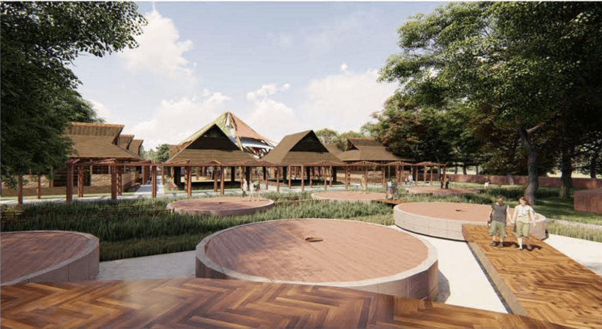 This government project aims to design a master plan for the state's tourism department, with the goal of creating a cultural hub for international people to study local dances and traditions, like Kathakali. The project aimed to preserve the traditional wooden structure and aesthetics while accommodating a small restaurant, dance practice mandapas, a leisure walk space, and an area for entertainment..