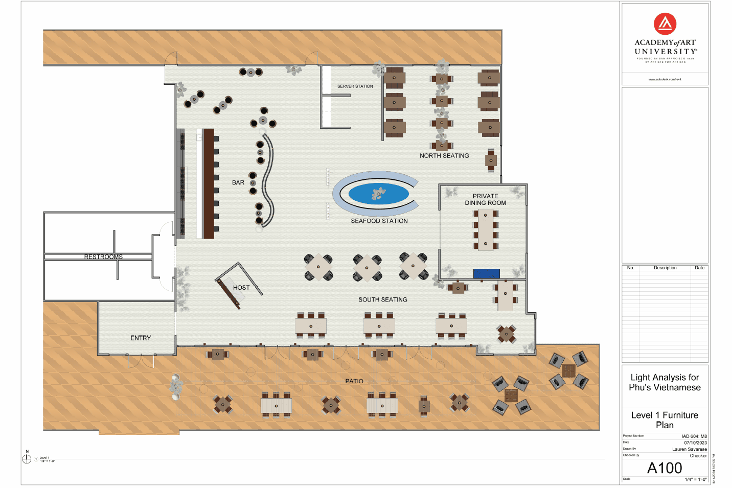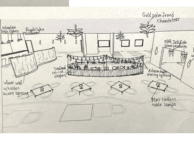 This project marked my introduction to interior lighting design. The final project of my Lighting Design class at AAU, the objective for the project was to design a restaurant for Michelin-rated chef, David Phu, a Vietnamese American from Oakland, at a site directly above the Pacific Ocean on San Francisco's Fisherman's Wharf. While the project spans from the Programming phase through the Schematic Design phase, the bulk of the project's focus was on learning and implementing various lighting design practices that aligned with our chosen concept for the restaurant.