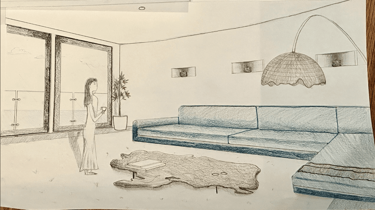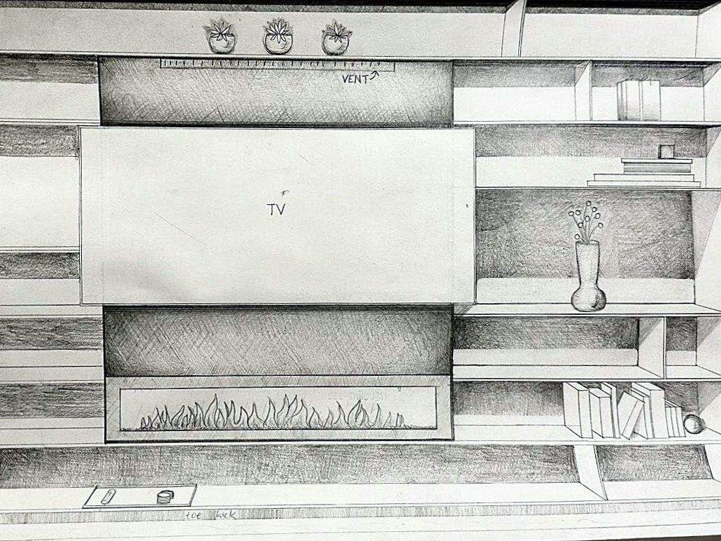 This assignment was given as part of my introductory perspective sketching class. The objective was to draw and design a room in perspective, and include hand drawn details of any special functions or details within the room to take it from a basic drawing to an interior designer drawing.
