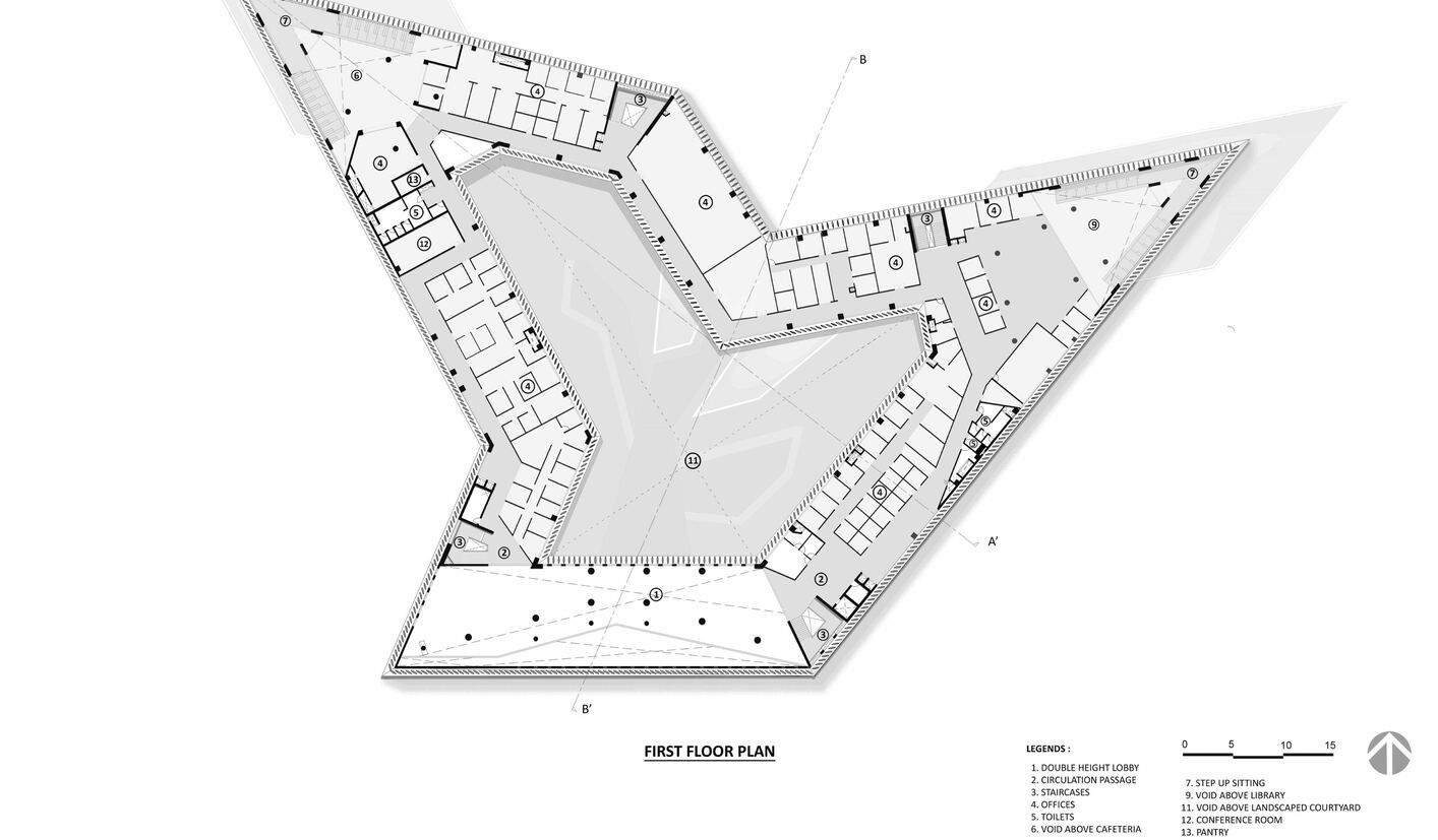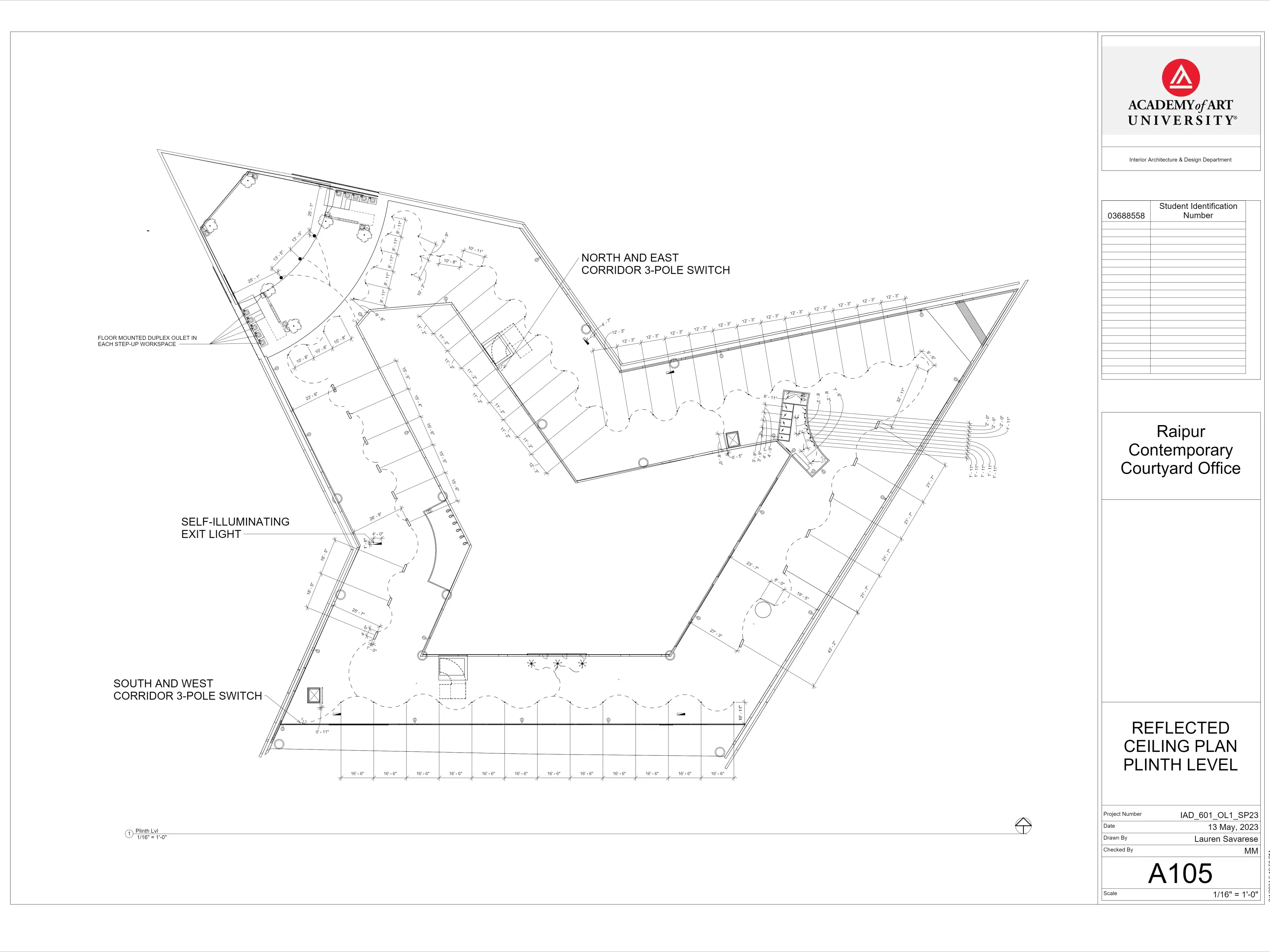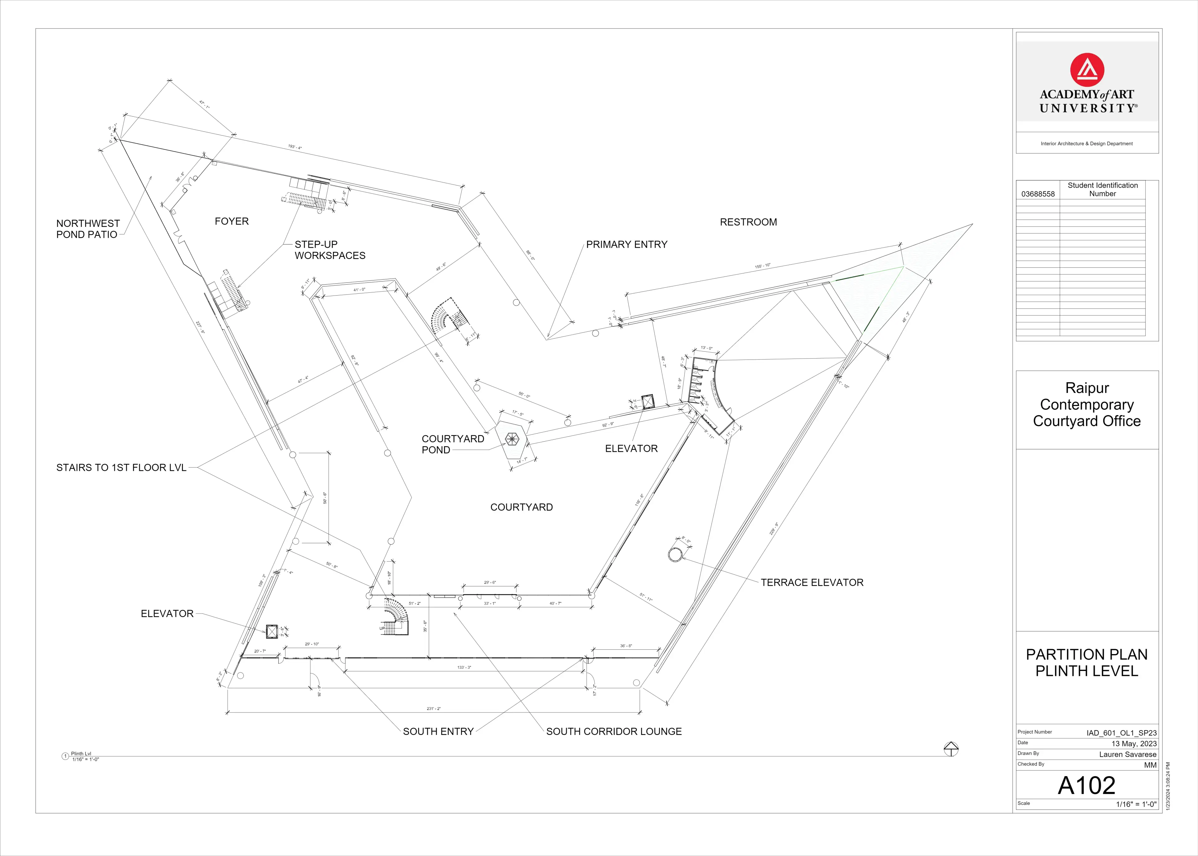 Following, are the floor plans, sections, and images of the office from Sanjay Puri Architects that had absolute guide over my recreation of the space. My recreation was of identical scale to the completed build.