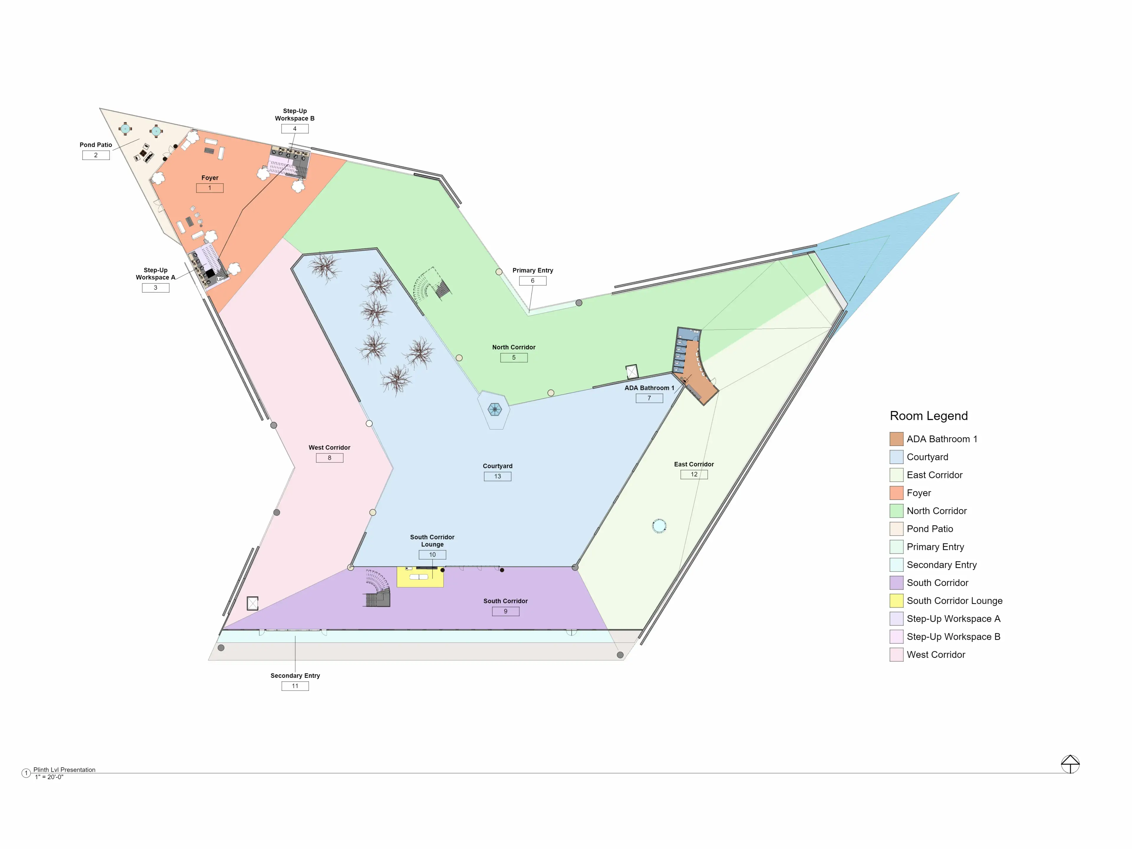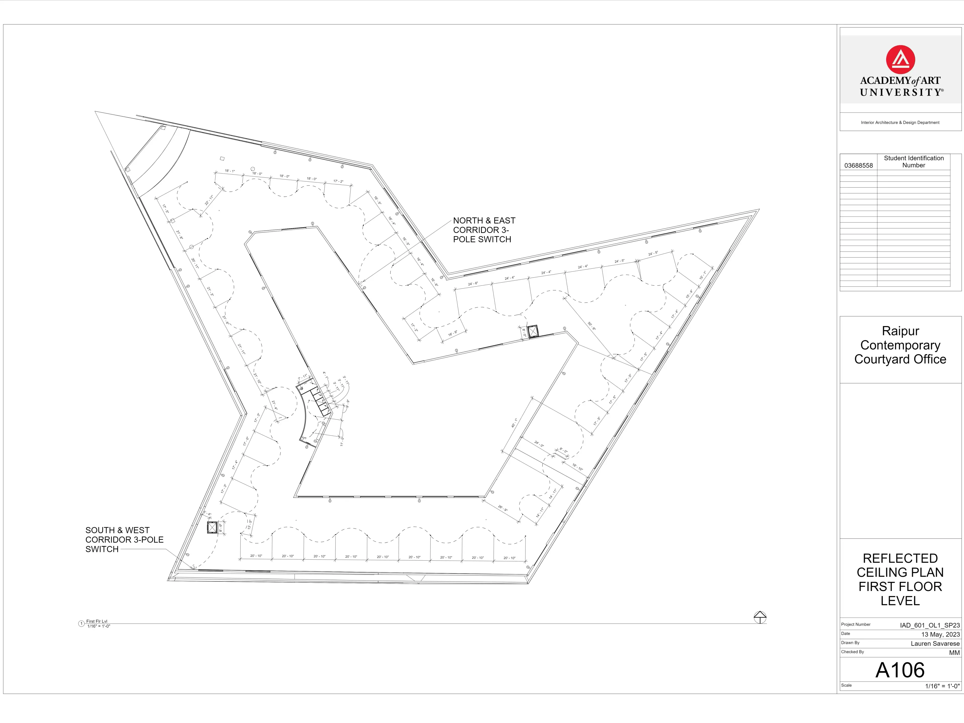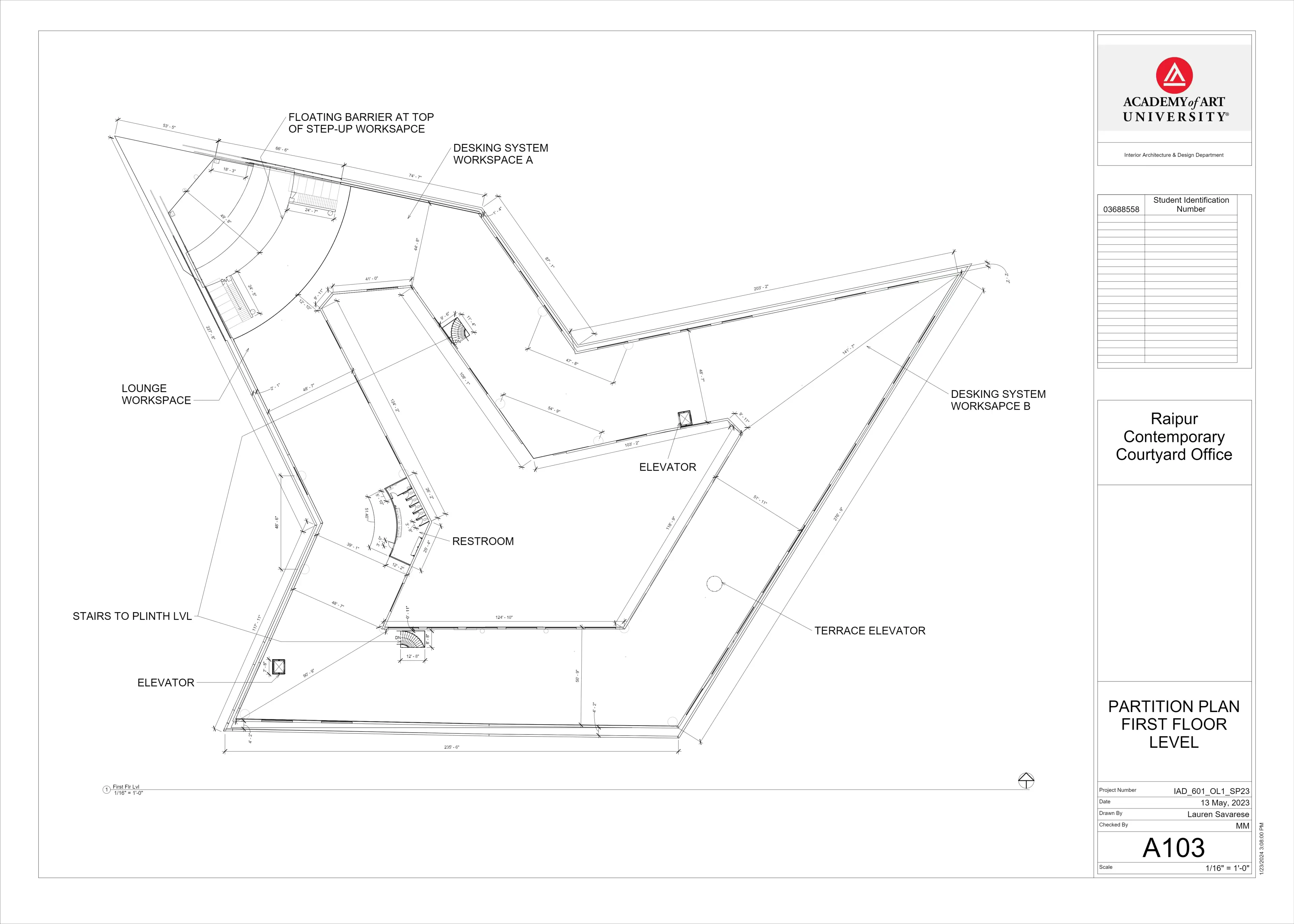 Following, are the floor plans, sections, and images of the office from Sanjay Puri Architects that had absolute guide over my recreation of the space. My recreation was of identical scale to the completed build.