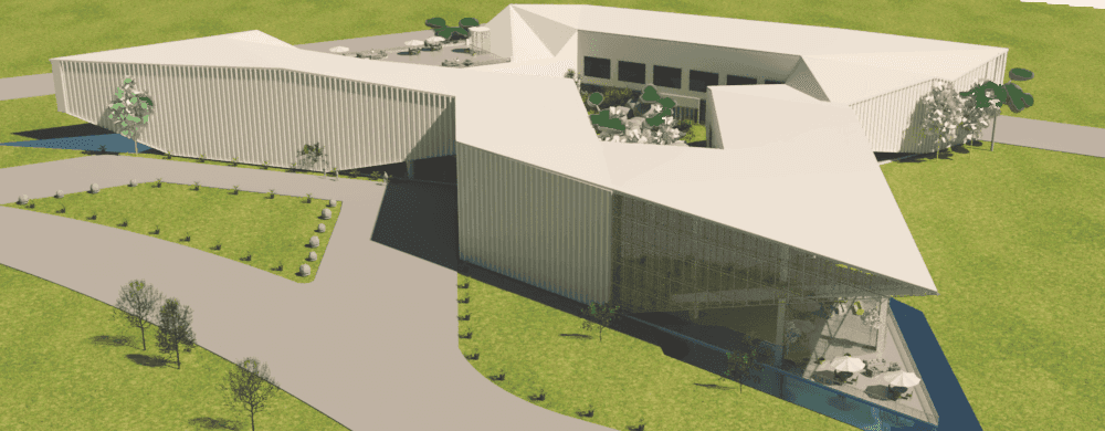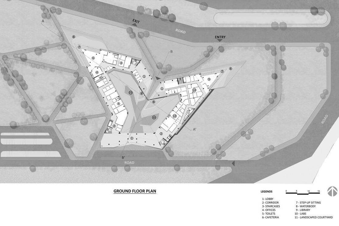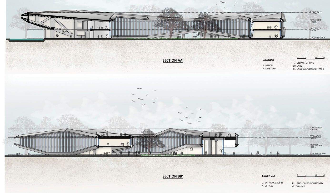 As part of my Building Information Modeling Class (Revit), the objective for this assignment was to find a commercial building with accessible floor plans to replicate within Revit, and to provide our own construction document set for the project. Wanting to challenge my 3D modeling skills, particularly my manipulation of organic masses, I picked this challenging 88,000 sq. ft. office in Raipur.