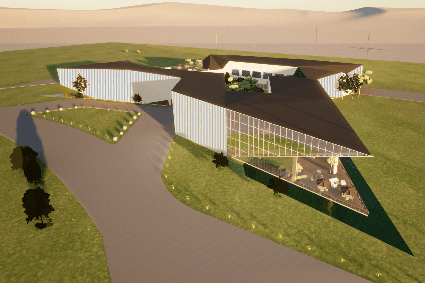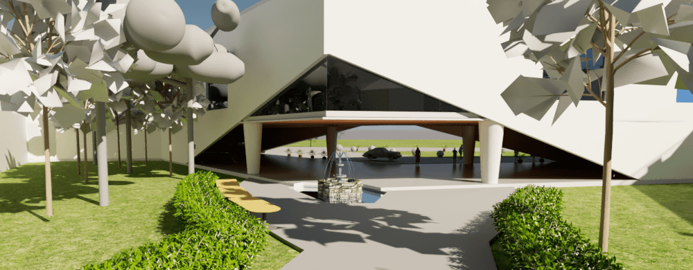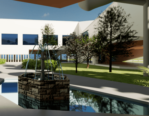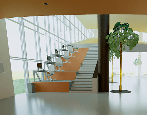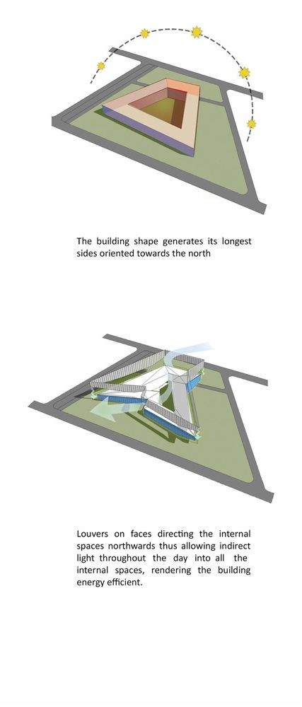 This project involves the 3D model replication of 'The Courtyard Office', as completed in 2020 by Sanjay Puri Architects in Raipur, India. A linear office space twists organically in the plan, naturally revealing a landscaped courtyard within its center. Varying from two to three levels sectionally, the office floors are lifted from the ground at the southwest and northeast sides to facilitate a south-westerly breeze through the courtyard.