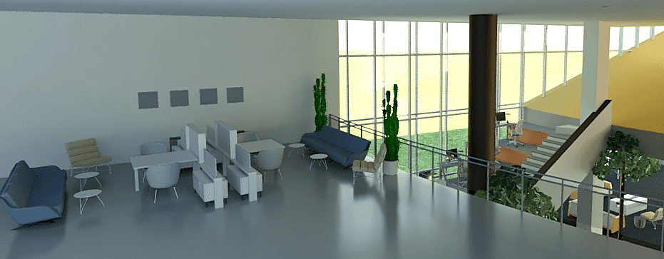 Using Revit's Cloud Rendering, I generated images of key areas of both the interior and exterior of the building. A sun study was also conducted to ensure comfortable lighting for occupants at all times of day.