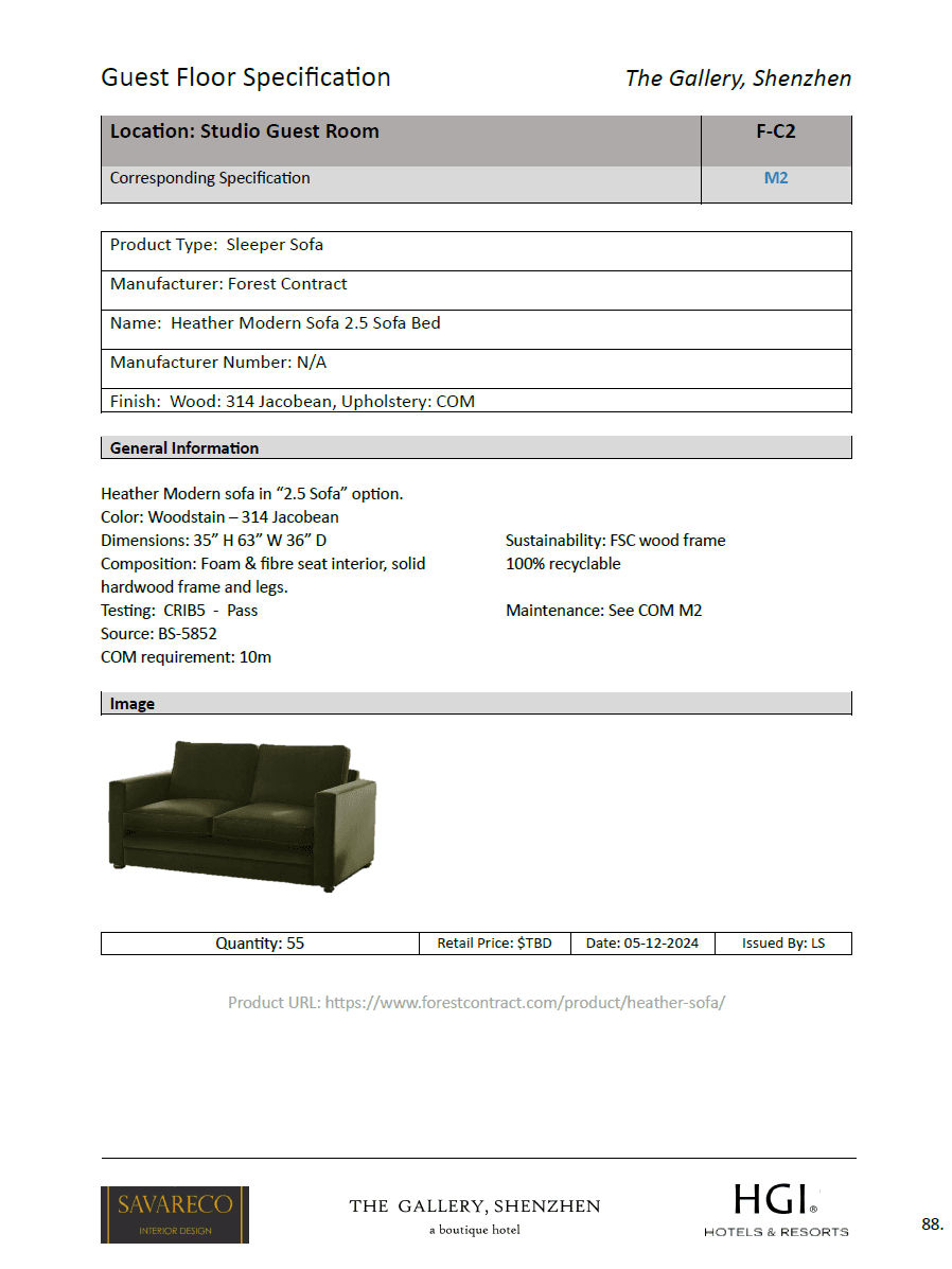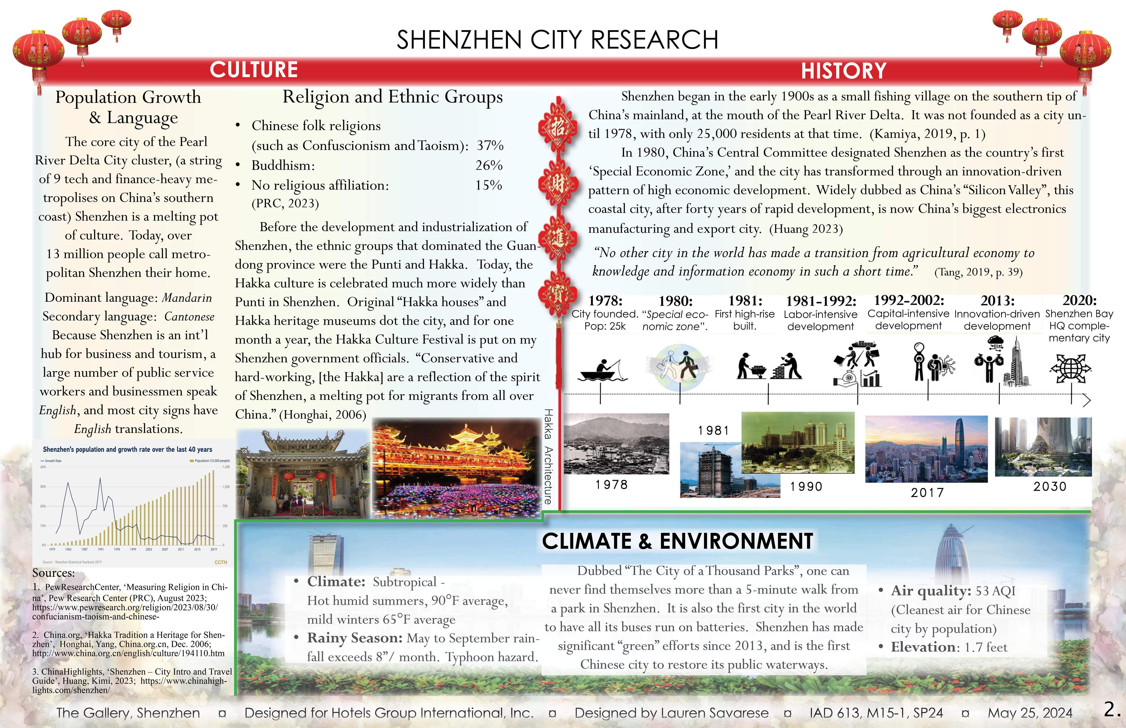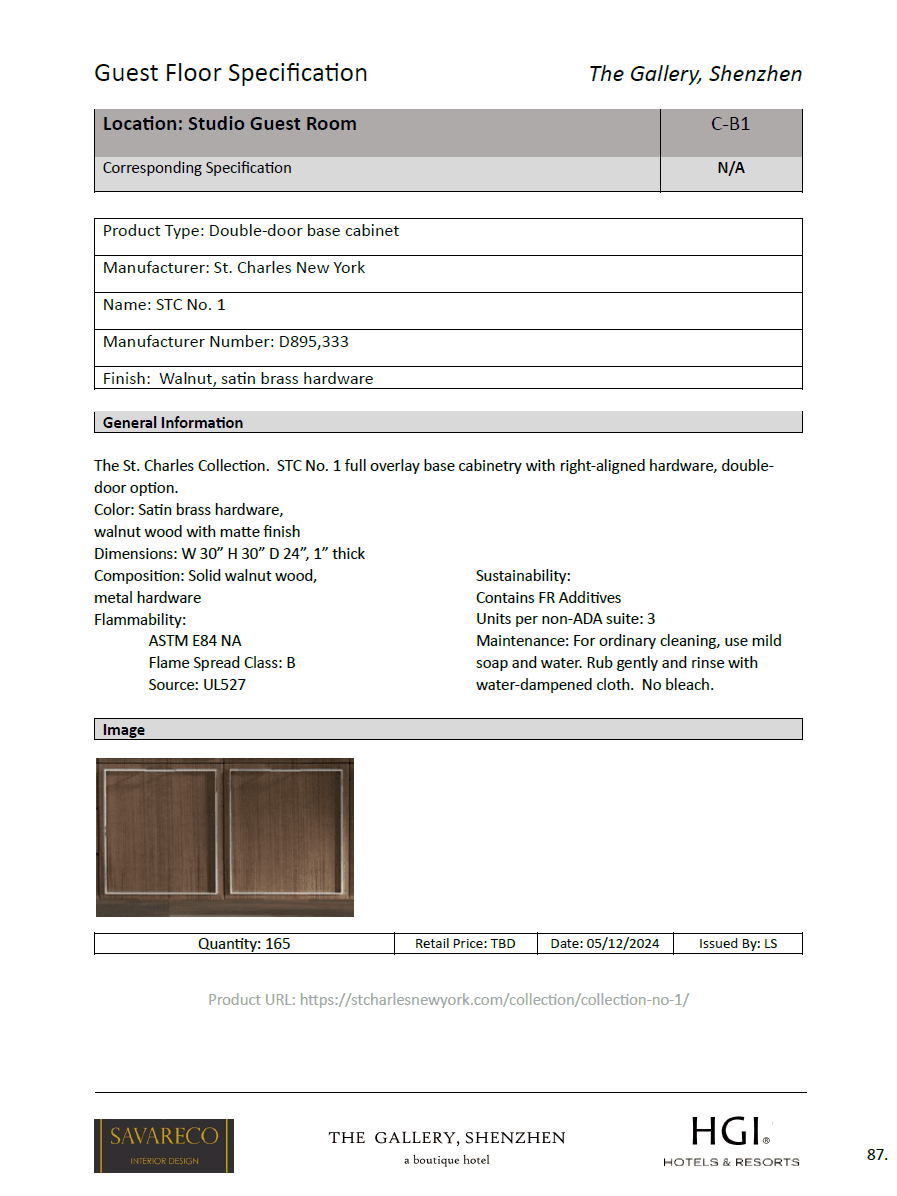 This project involves the schematic design of primary public and back of house spaces in a 65-room boutique hotel, and complete design of the lobby, and guest suites for corporate hotel client, HGI (Hotels Group International, Inc), in the central financial district of Shenzhen, China. HGI's commission of this project was part of their new line of downtown boutique hotels meant to cater to business guests in these financial districts. The hotel was to follow a high-end, extended-stay model, and be constructed within an existing building. The client's key drivers for the project were as follows: