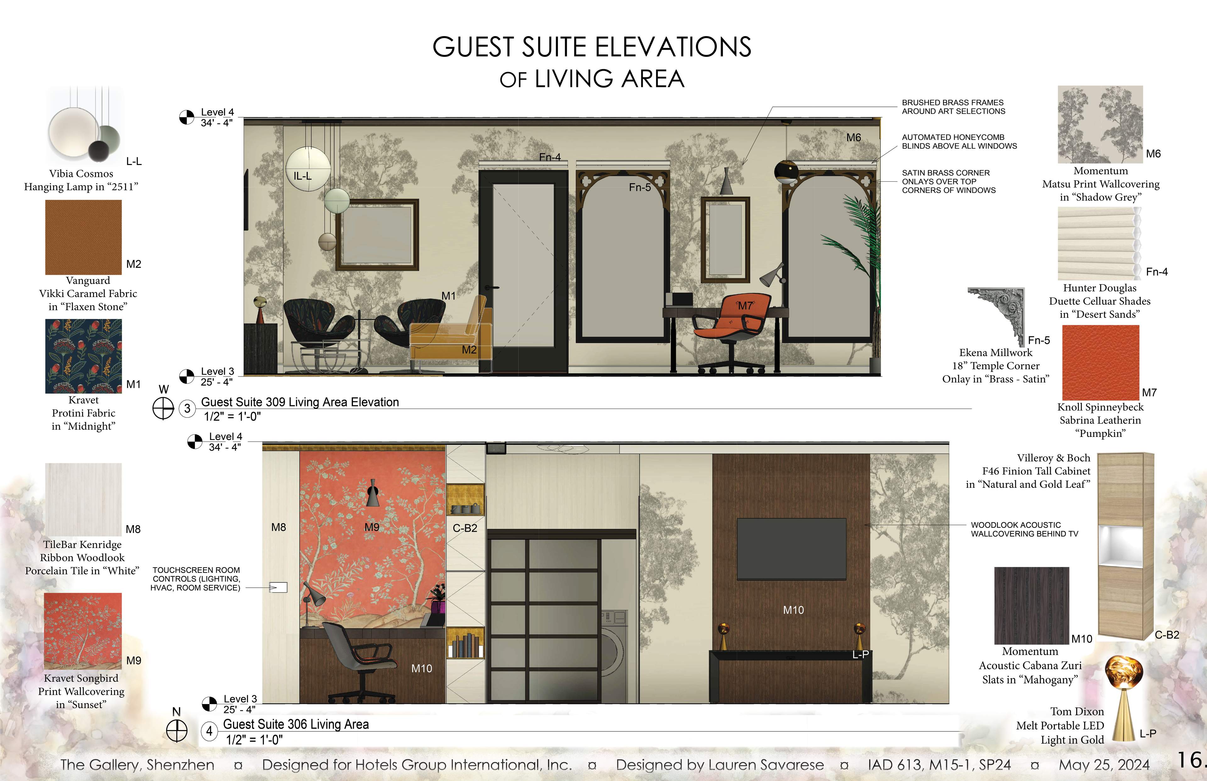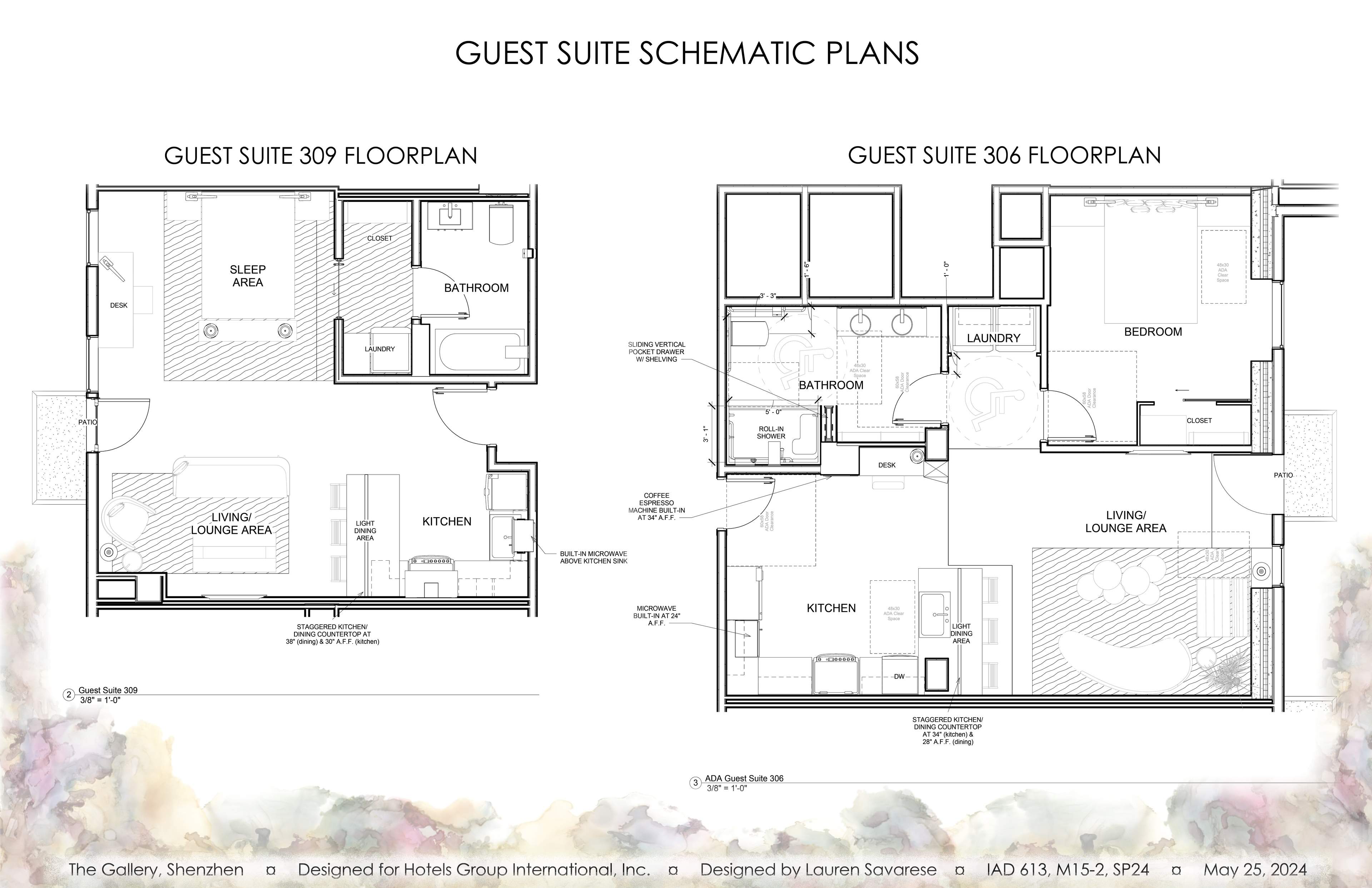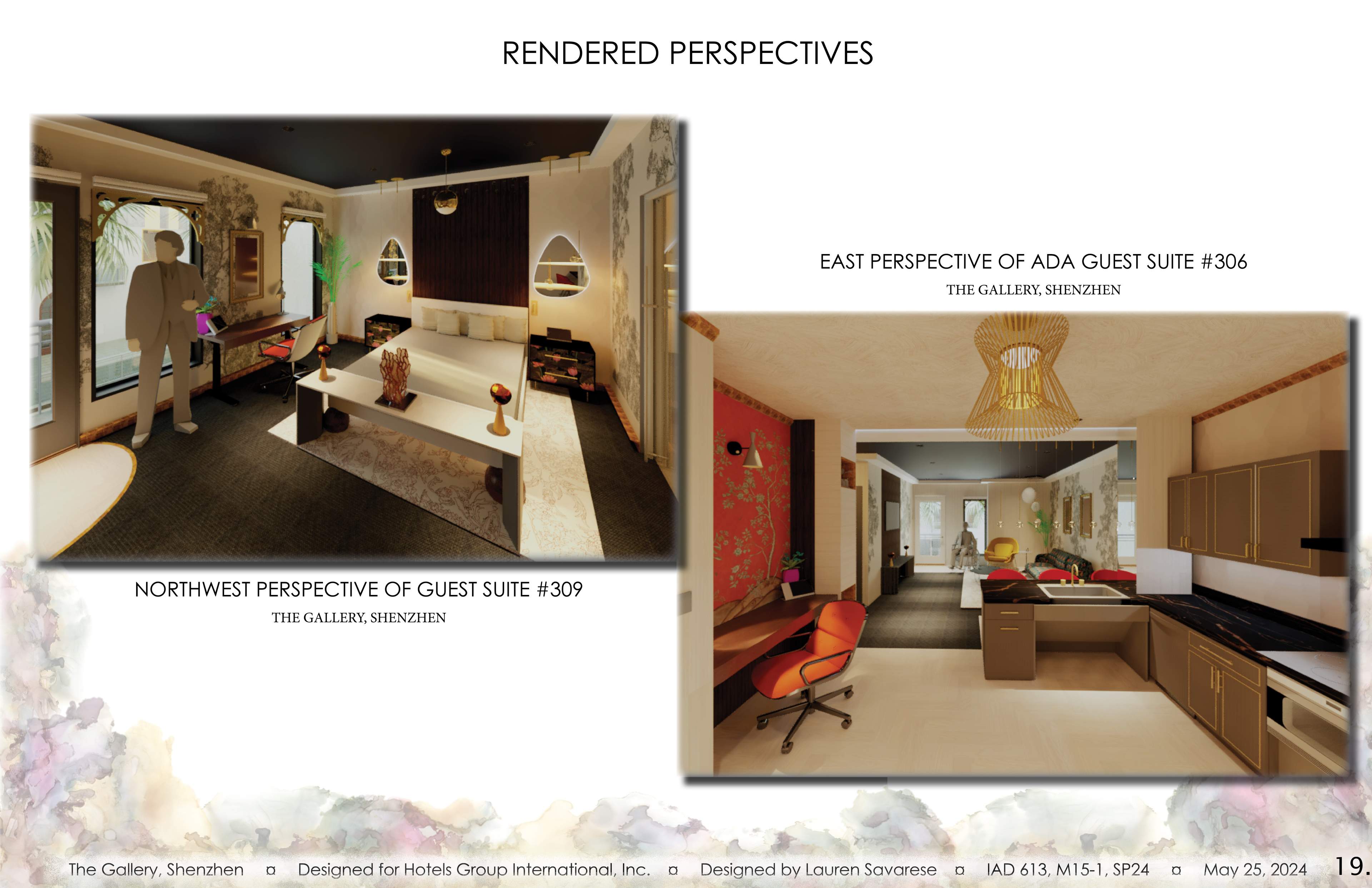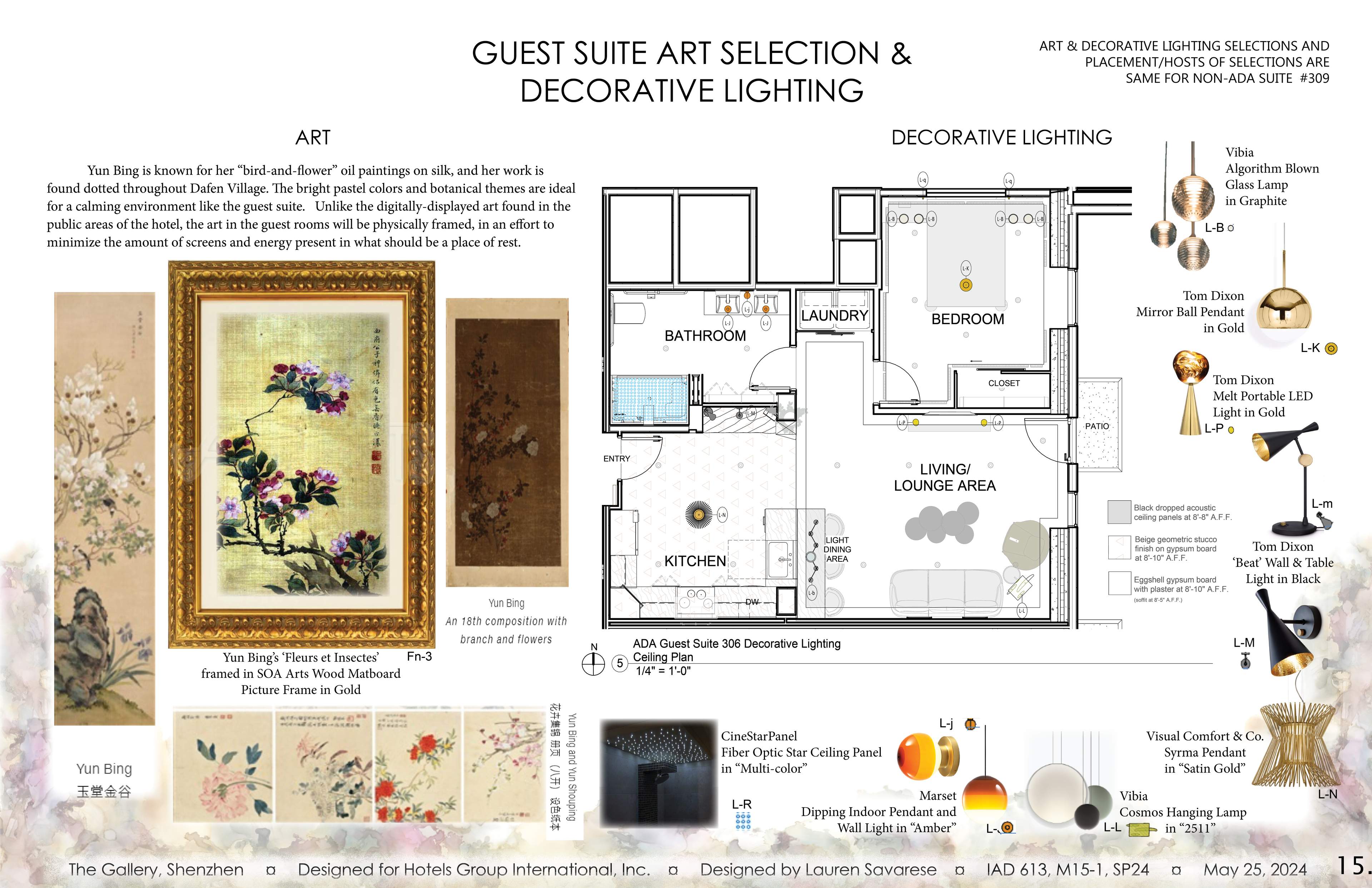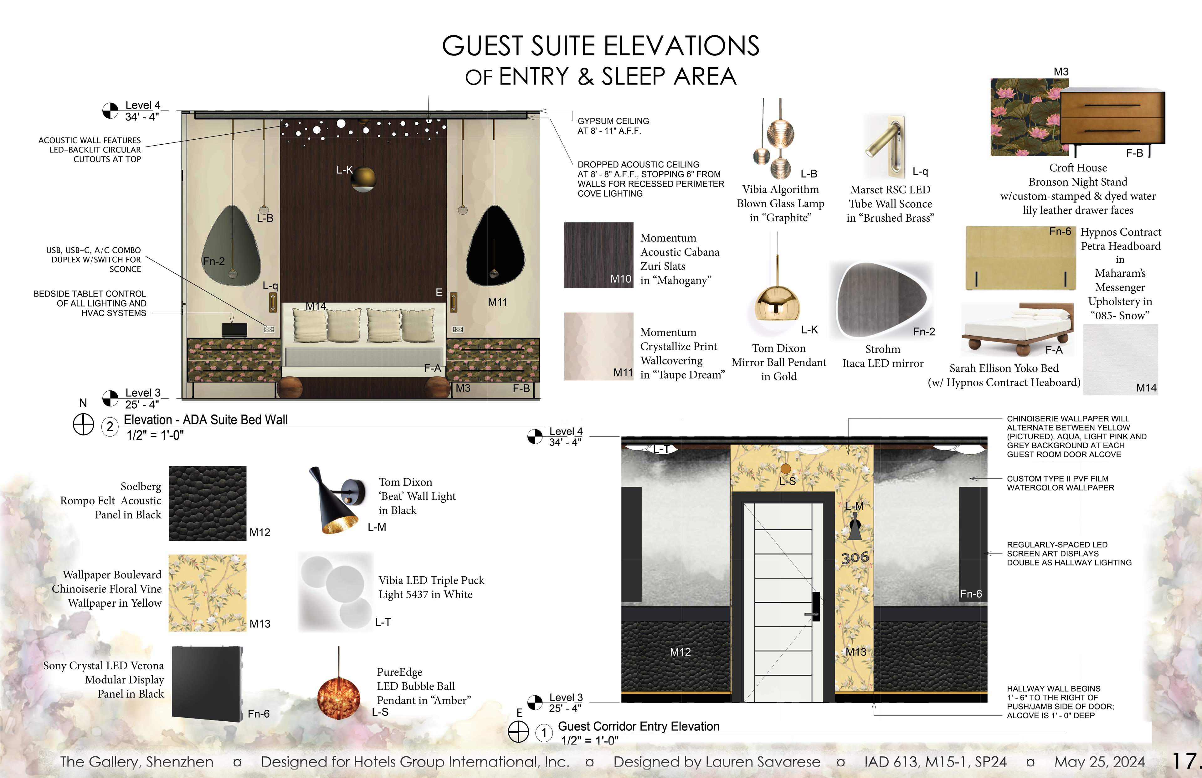 If desired, please reach out to request my full process book which includes all of the work that went behind the final design presentation, as well as more in-depth attention to areas outside of the lobby and guest suites of the hotel.