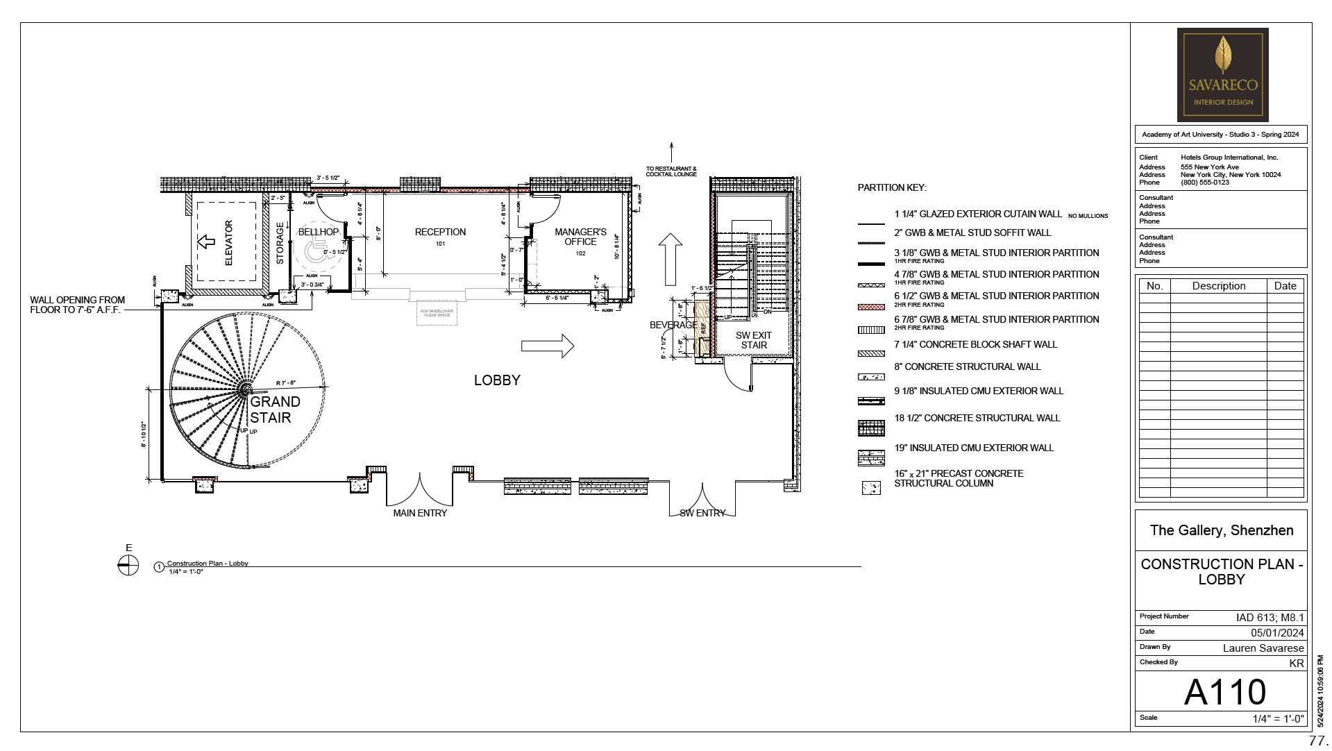 As my final review assignment for my Masters degree in architectural and interior design, this project is the culmination and best example of my current skillset. This file is a final design development presentation for the lobby/entry/reception area, and guest suites, with the client as the intended audience. The presentation is prefaced by the project program and existing building analysis, and supplemented with construction plans to capture the full project scope. My complete 99-page process book, that includes the precedent studies, sketching, scheming and brainstorming that went behind the presented designs, and is supplemented with the schematic design of the remaining public areas of the hotel, is available for this project by request.