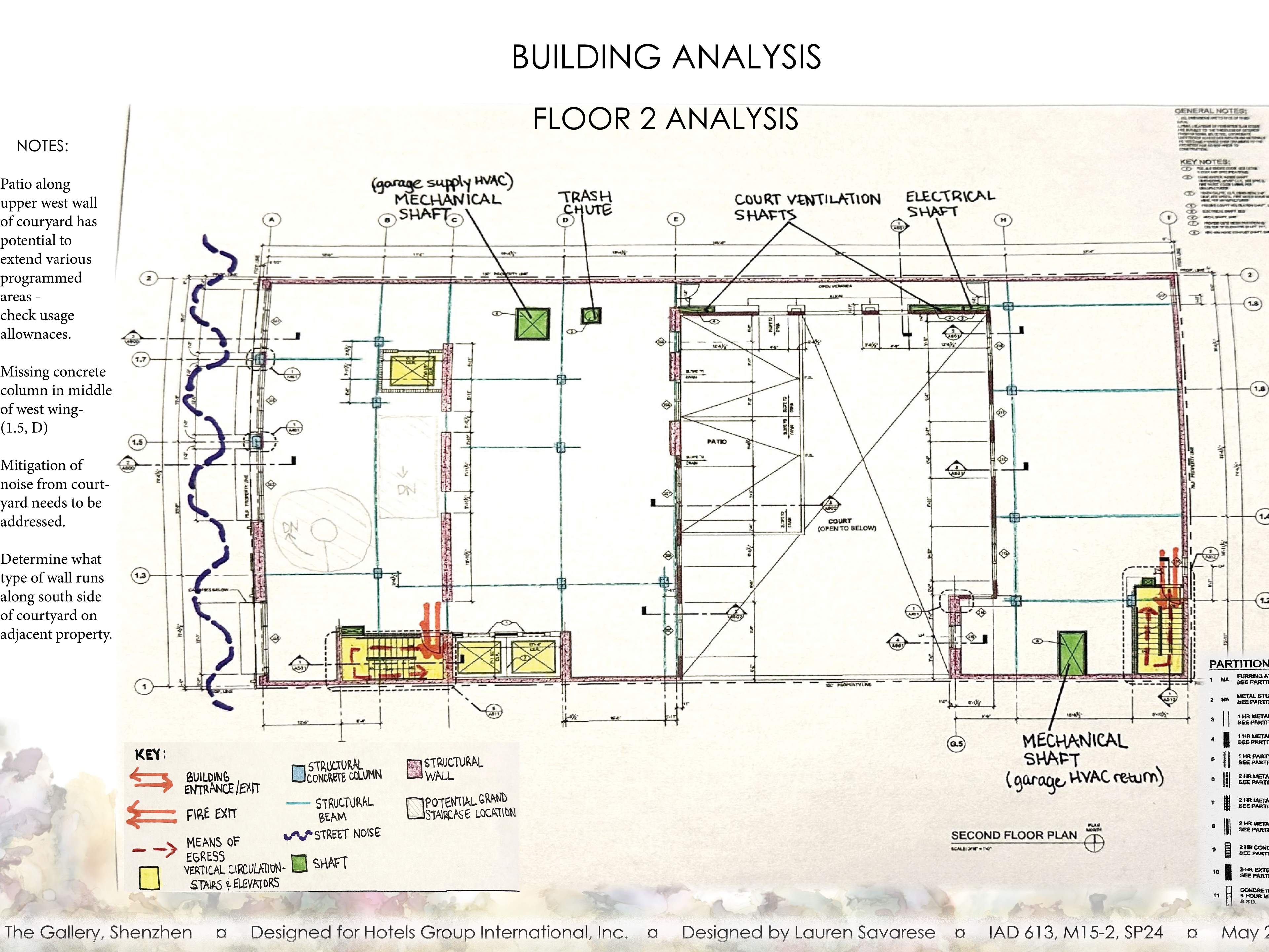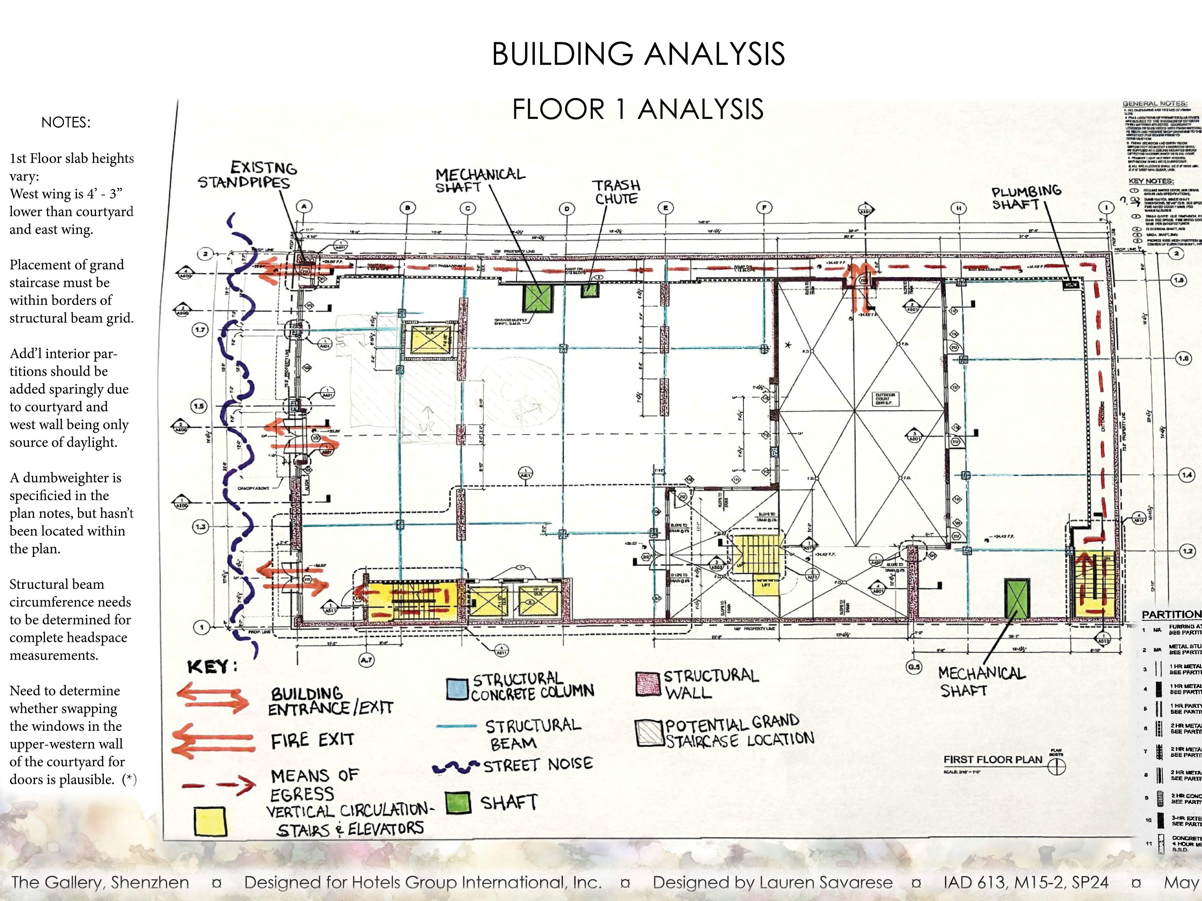 With programming complete, analysis of the existing building structure could begin. This analysis, coupled with the program, will allow for the first pass at schematic design to take place. Each floor roughly nets 10,000ft².