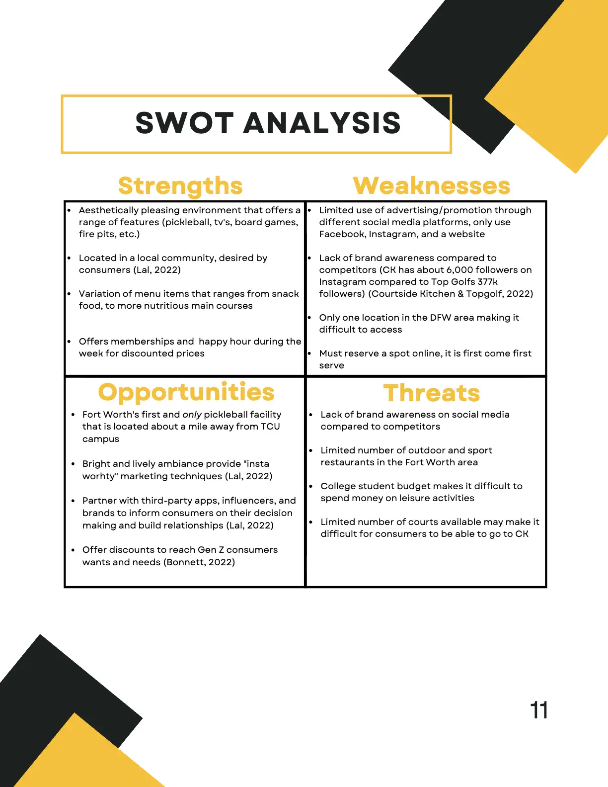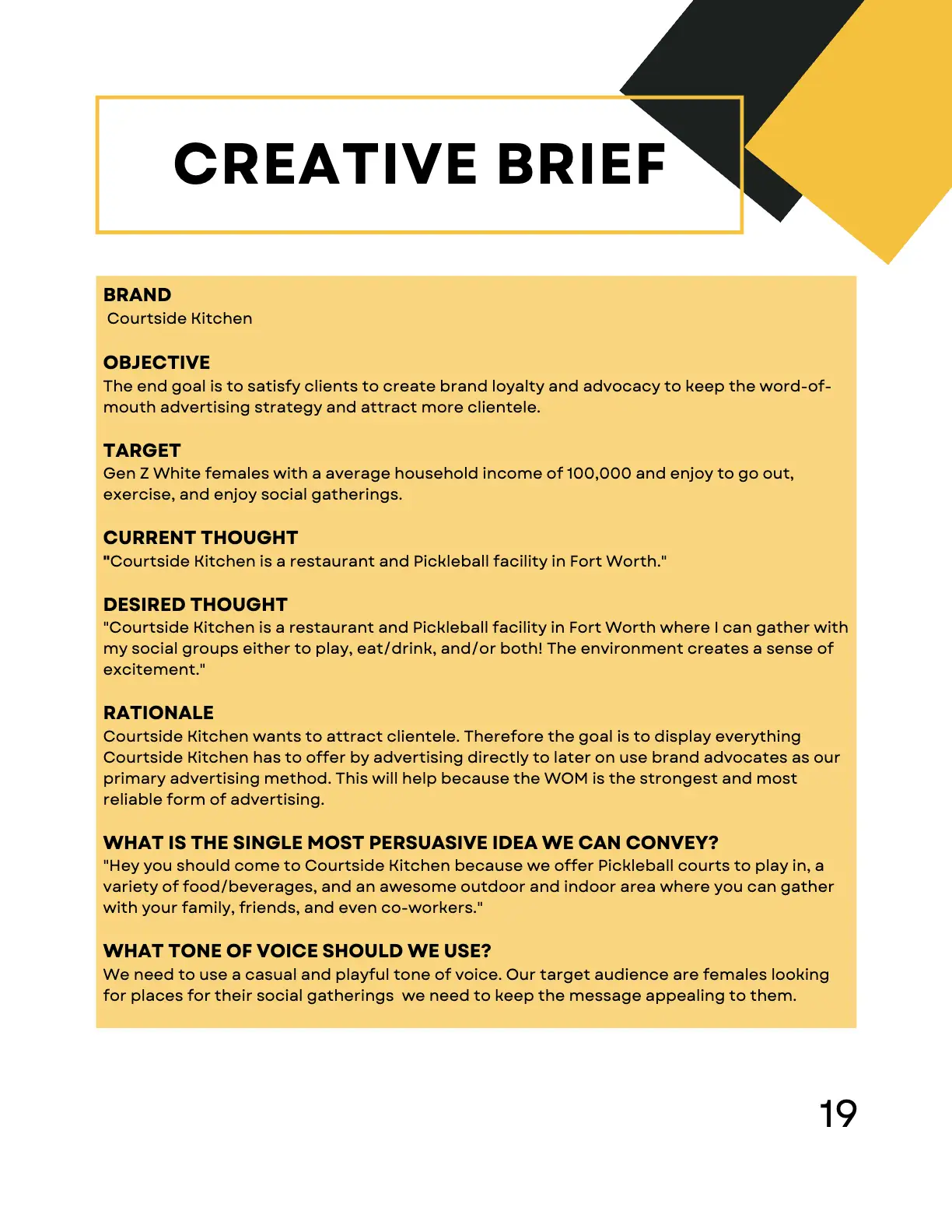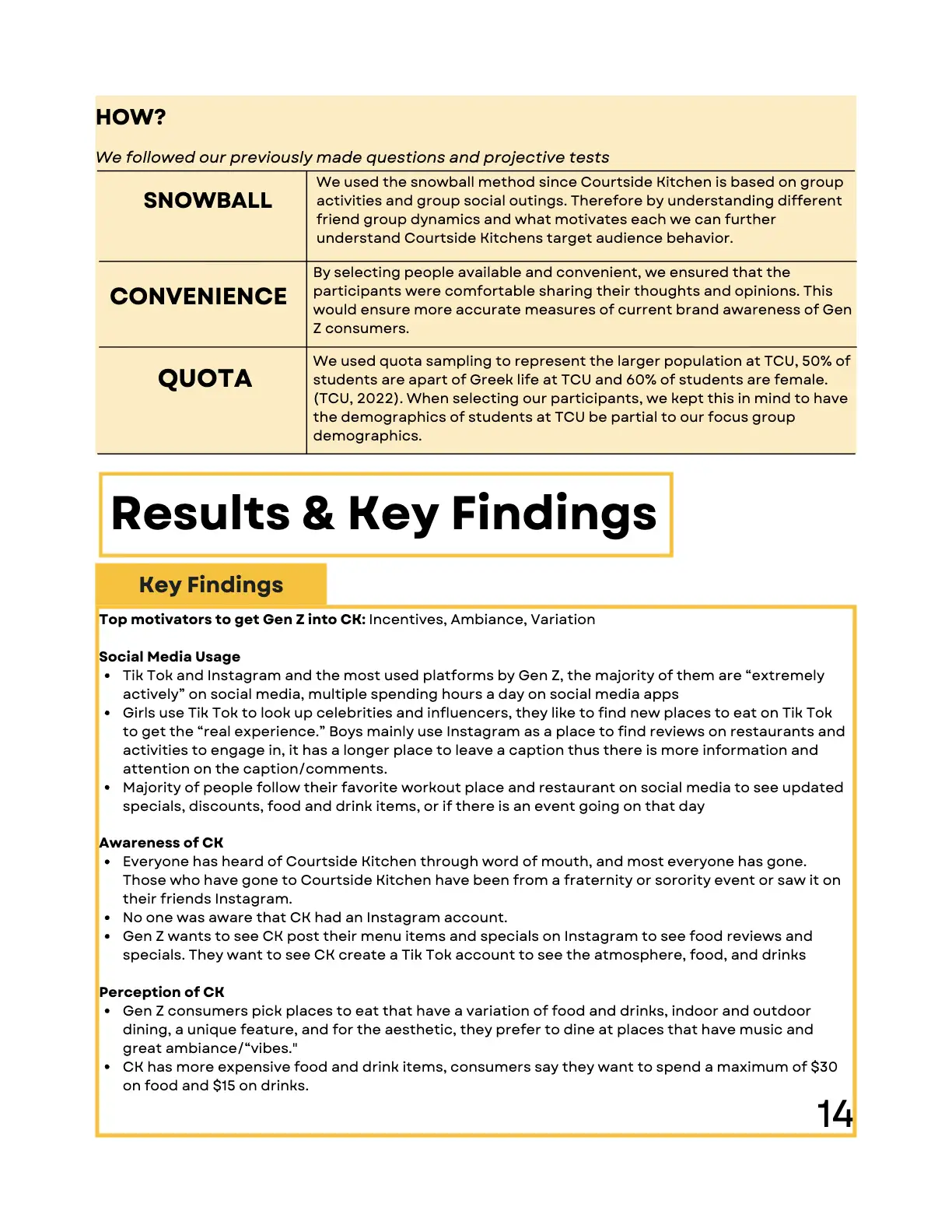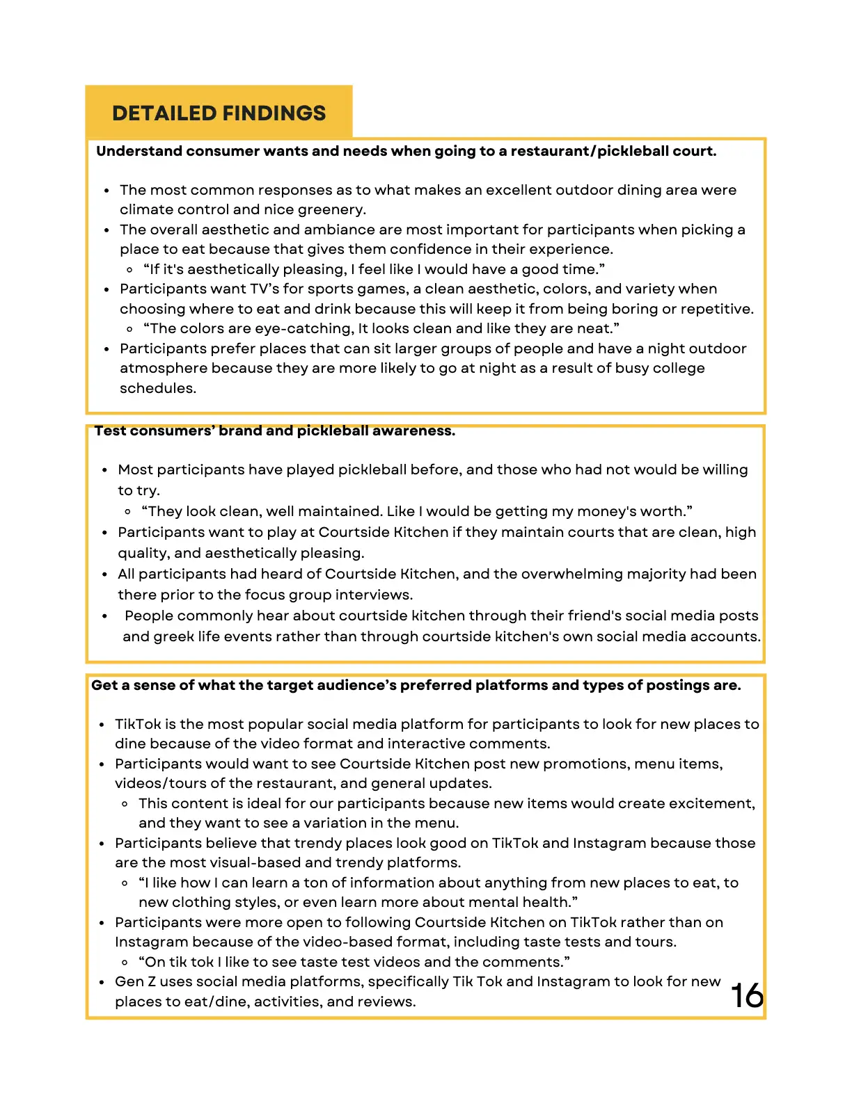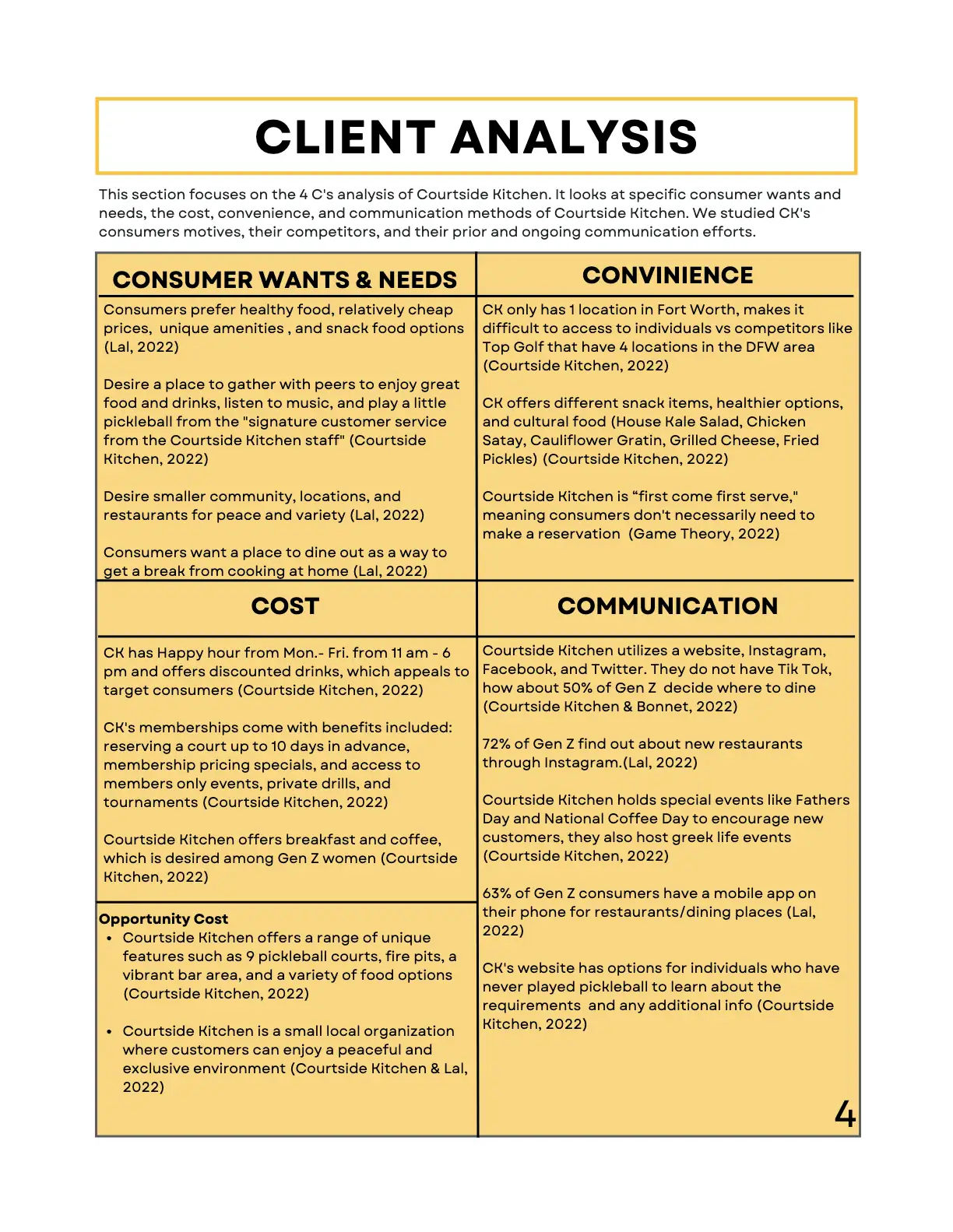 As part of a Research class, I collaborated with a small team to create a comprehensive report on Courtside Kitchen, a pickleball-centered restaurant and entertainment venue. The project combined both qualitative and quantitative methods to explore strategies for attracting more Gen Z consumers.
