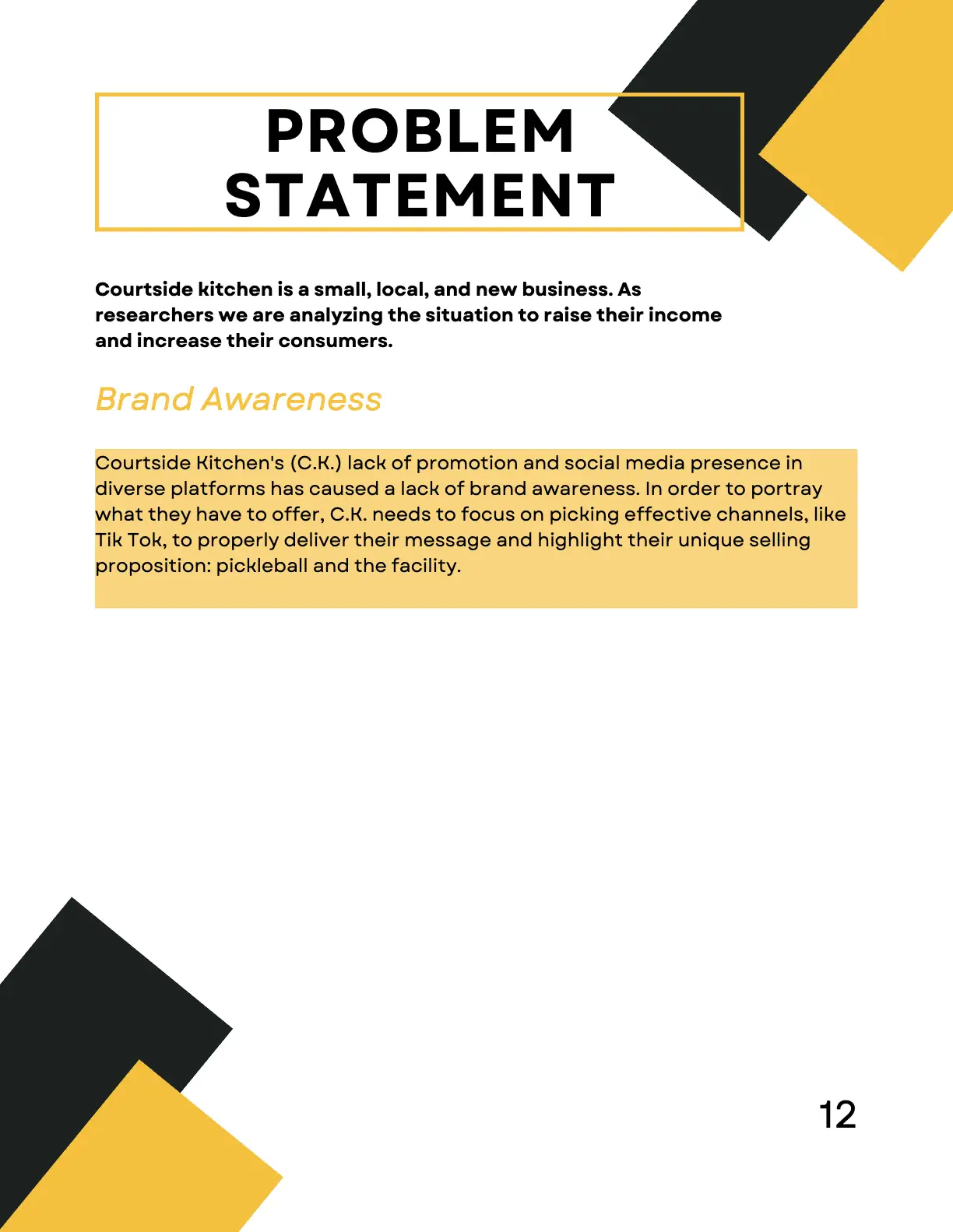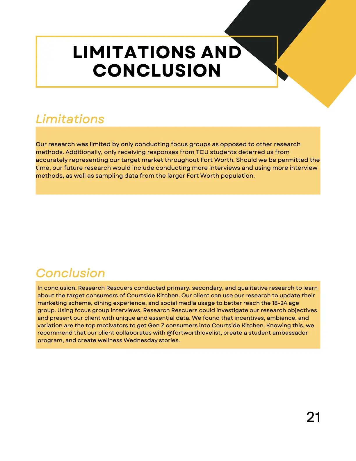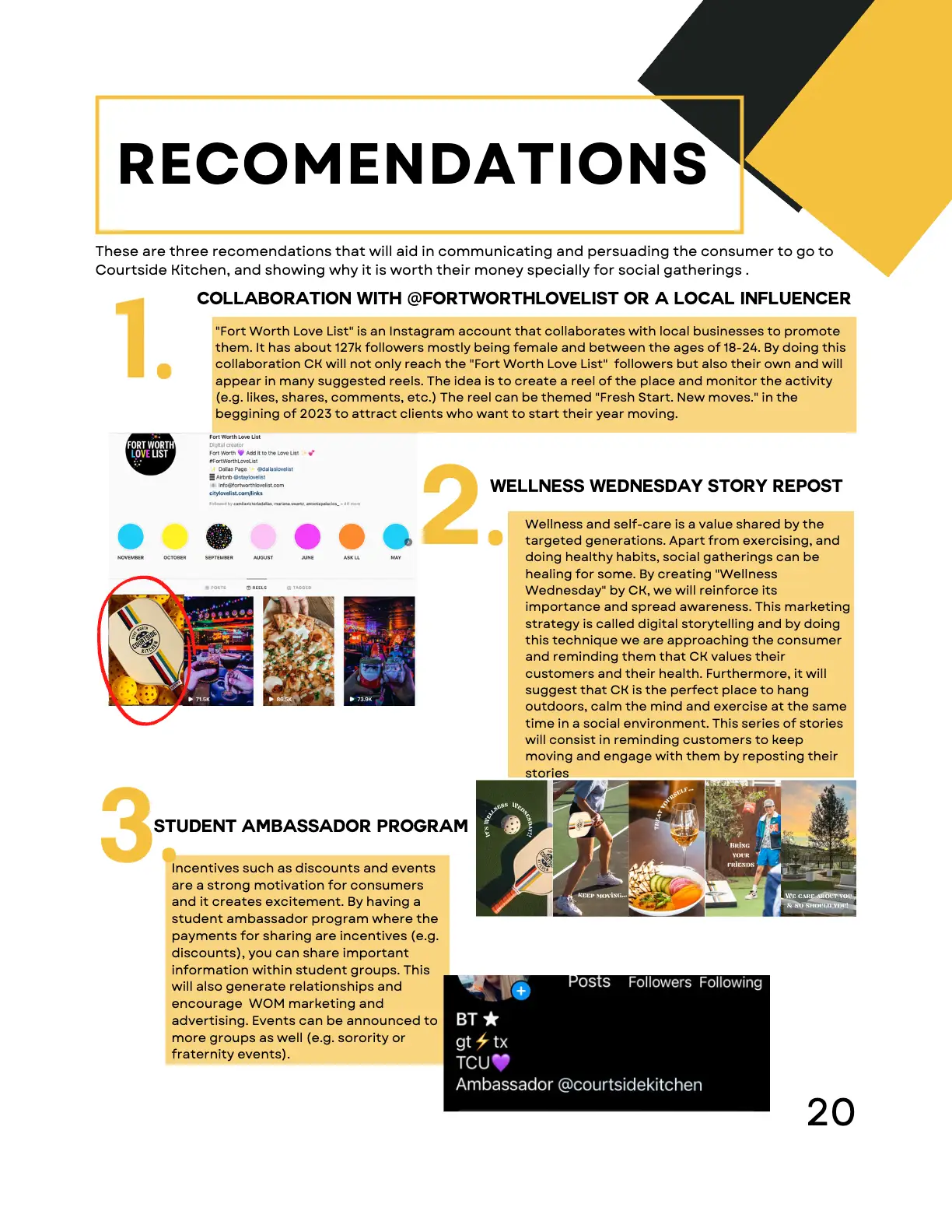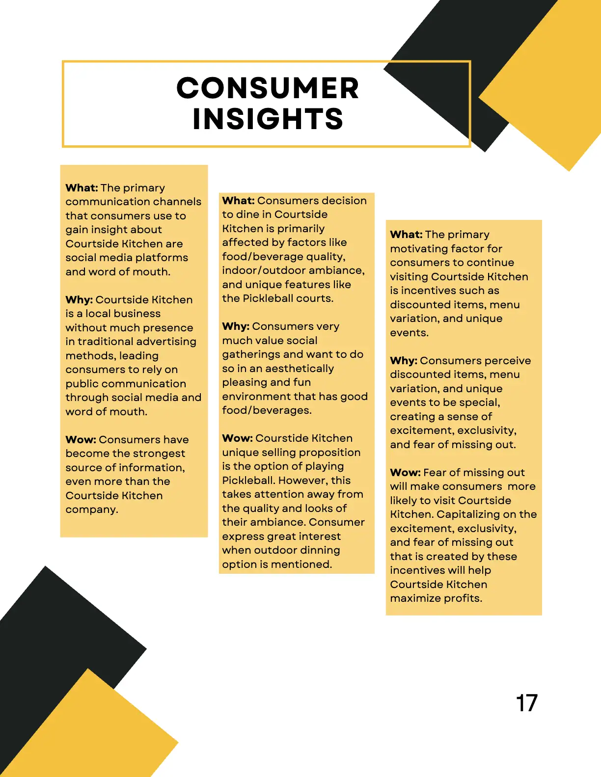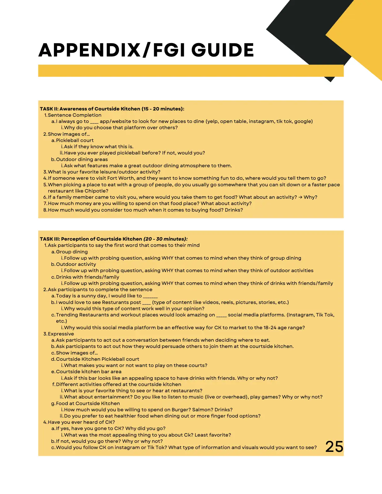 As part of a Research class, I collaborated with a small team to create a comprehensive report on Courtside Kitchen, a pickleball-centered restaurant and entertainment venue. The project combined both qualitative and quantitative methods to explore strategies for attracting more Gen Z consumers.