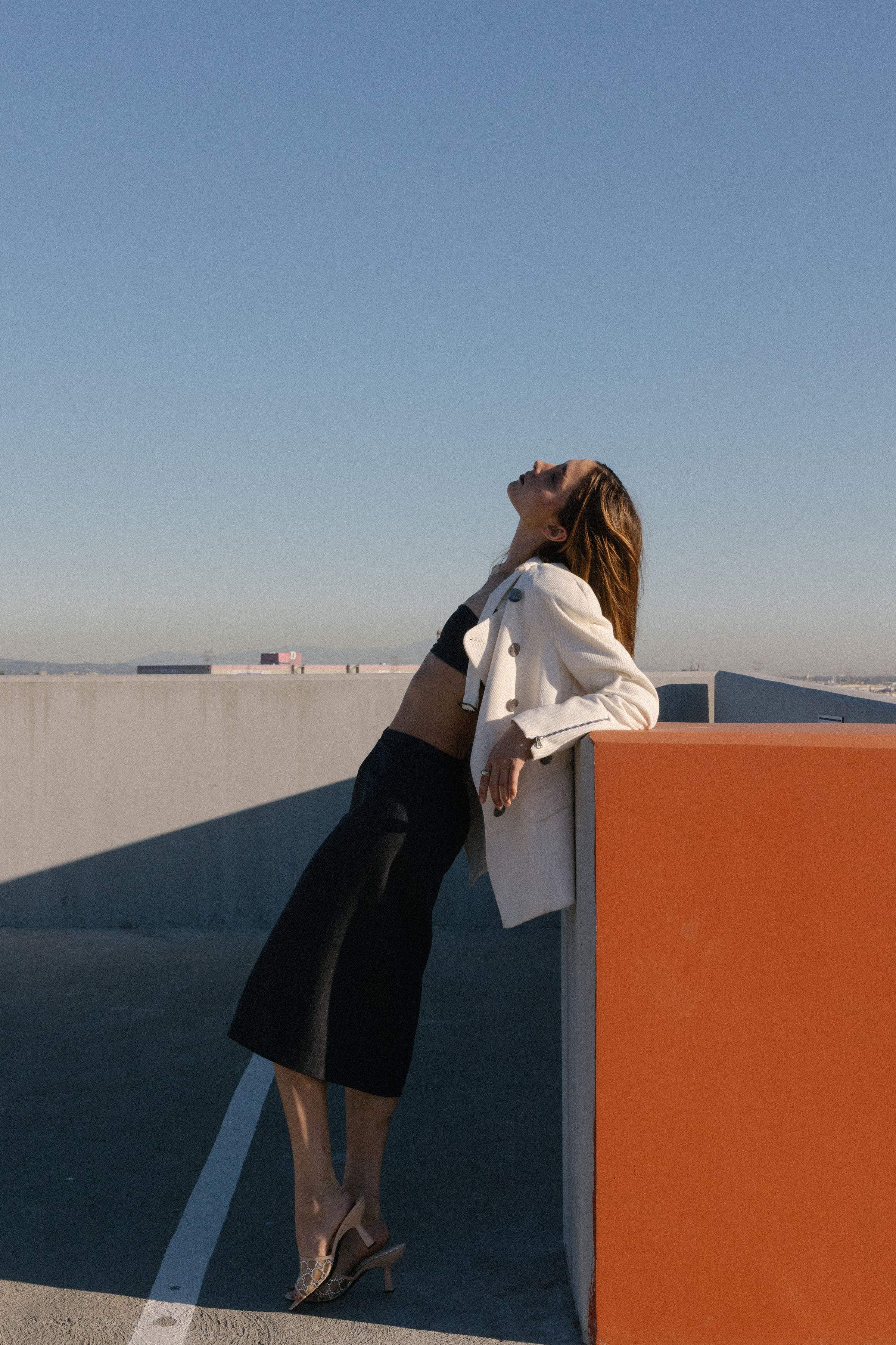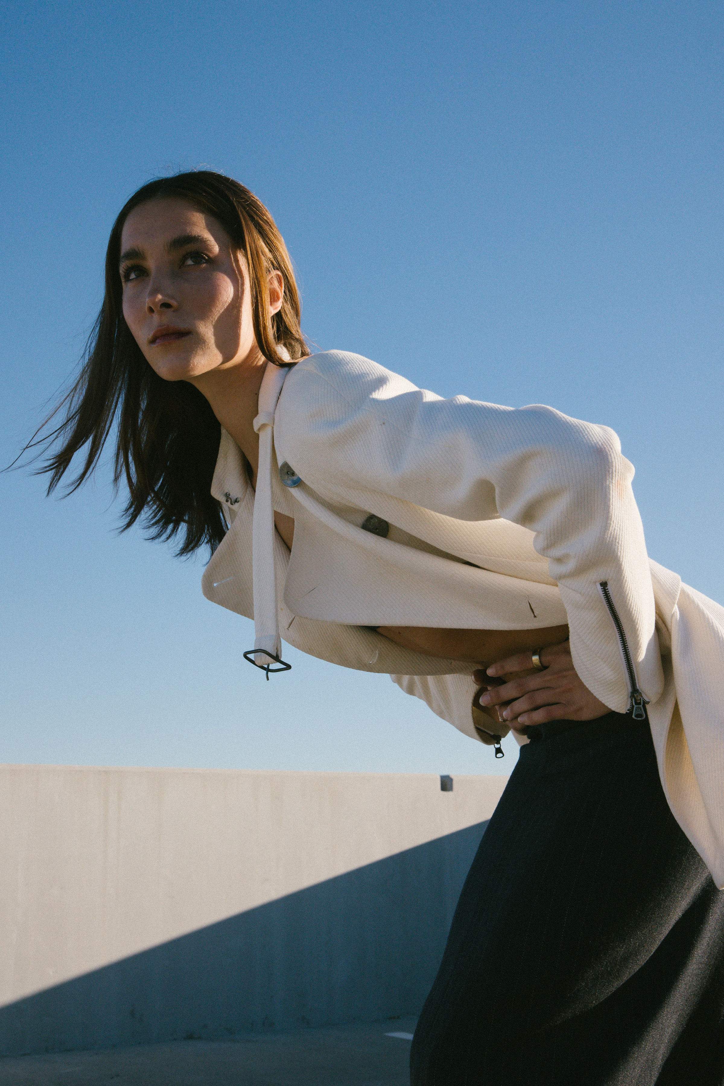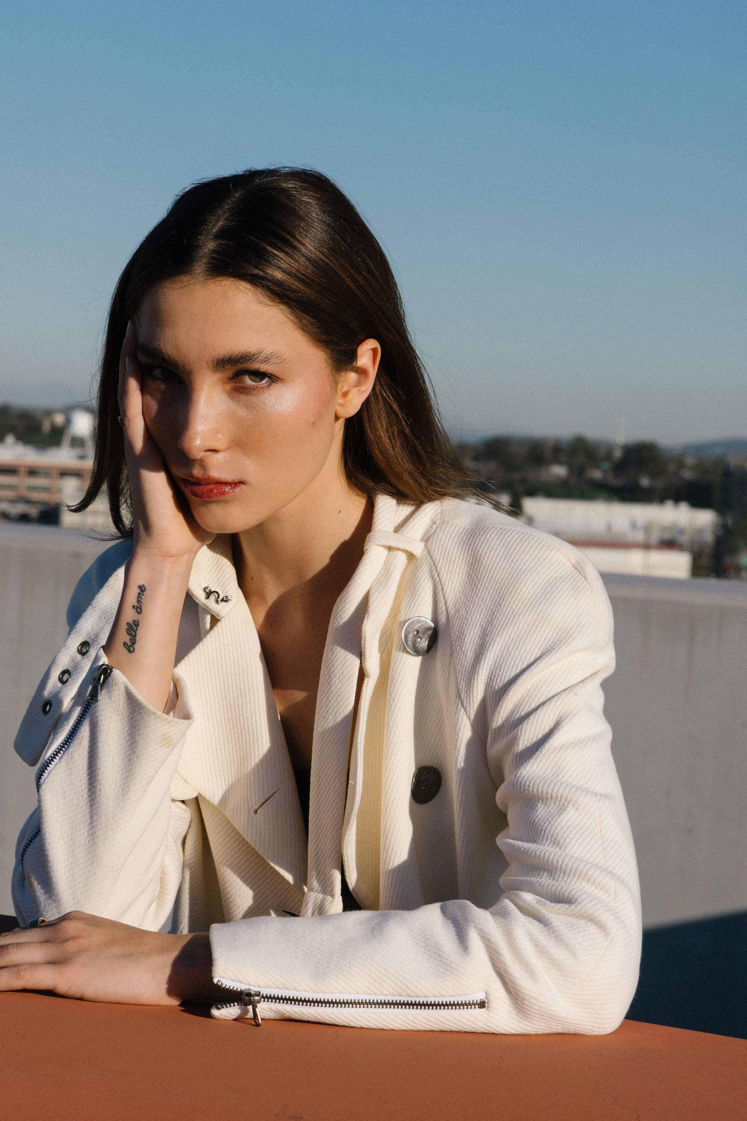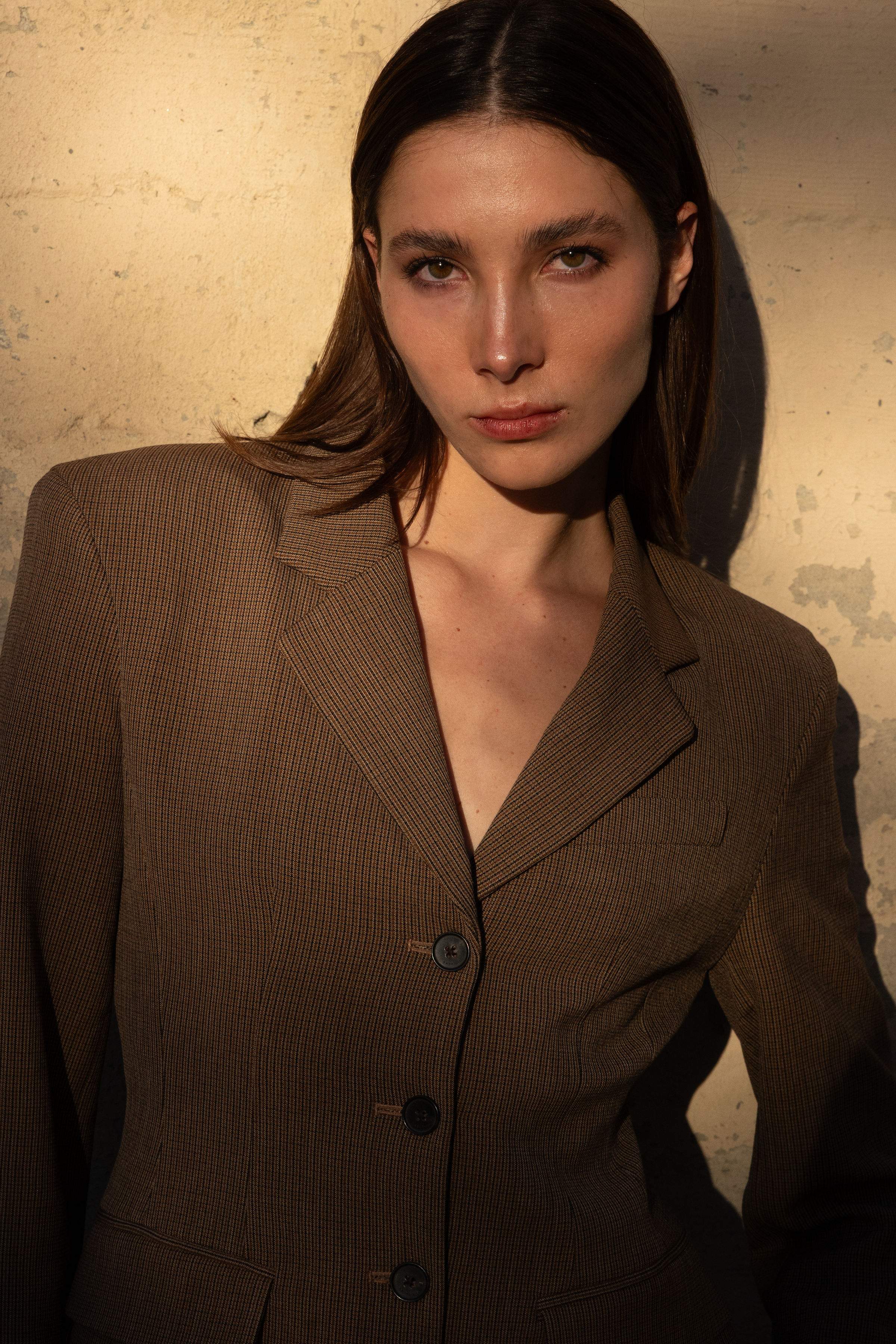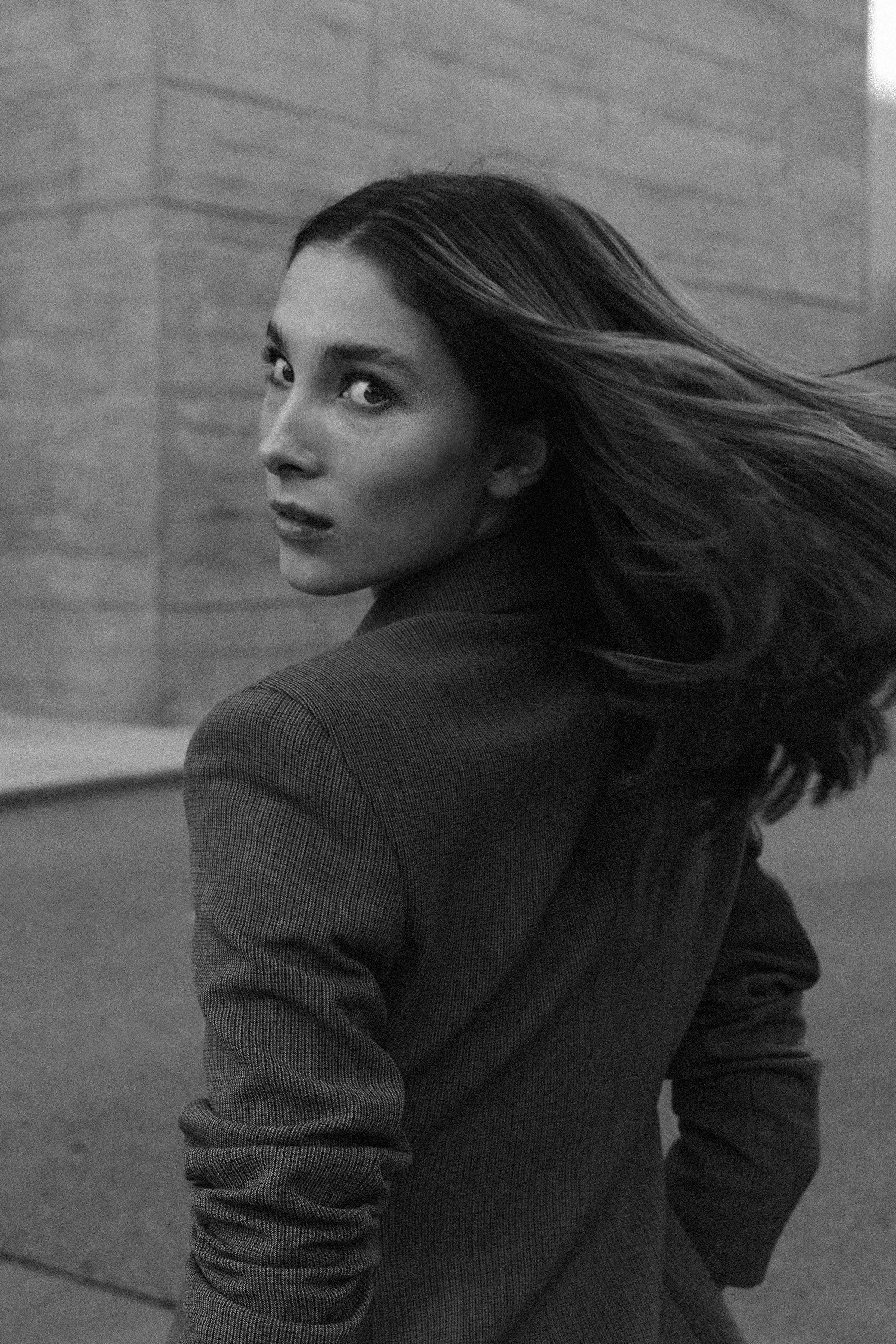 This test shoot evokes a New York lifestyle. Sharp air, fast footsteps, and a woman moving through it all with quiet intensity. Each frame holds a different layer of her: the flicker of fear in her eyes as she stands against the city’s steel edges, the softness of innocence in natural light, the ache of lived pain beneath tailored silhouettes, and finally the rise of power, composed, self-possessed, untouchable.