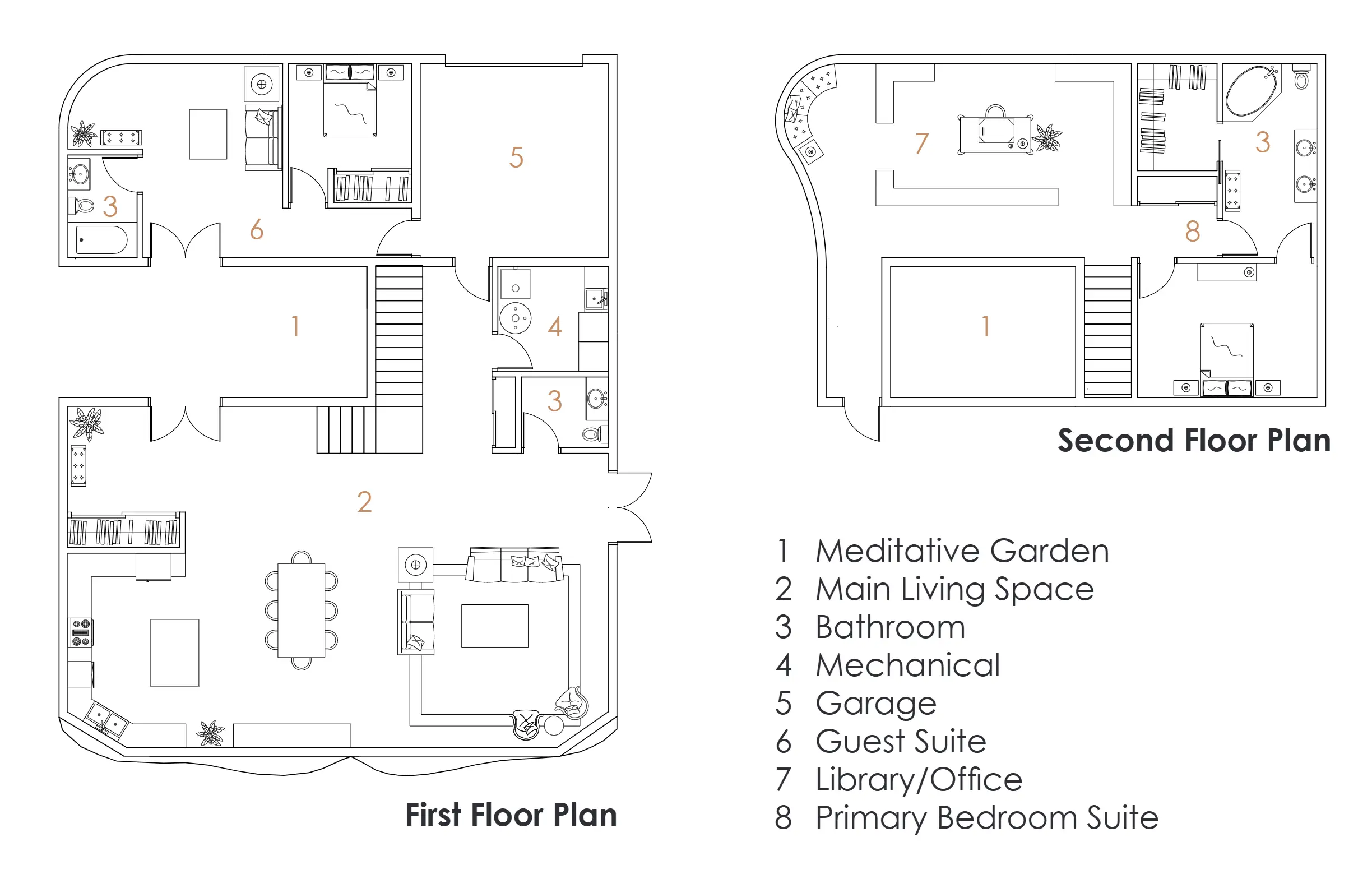 Zora Neale Hurston is an author, researcher, playwright, and anthropologist who focused her time on the racial struggles of black Americans in the early 1900s. Mainly focusing on the repetition of book pages and the rigidity of book stacks, this retreat offers private spaces for Zora to work and live, while drawing inspiration from modern, coastal designs.