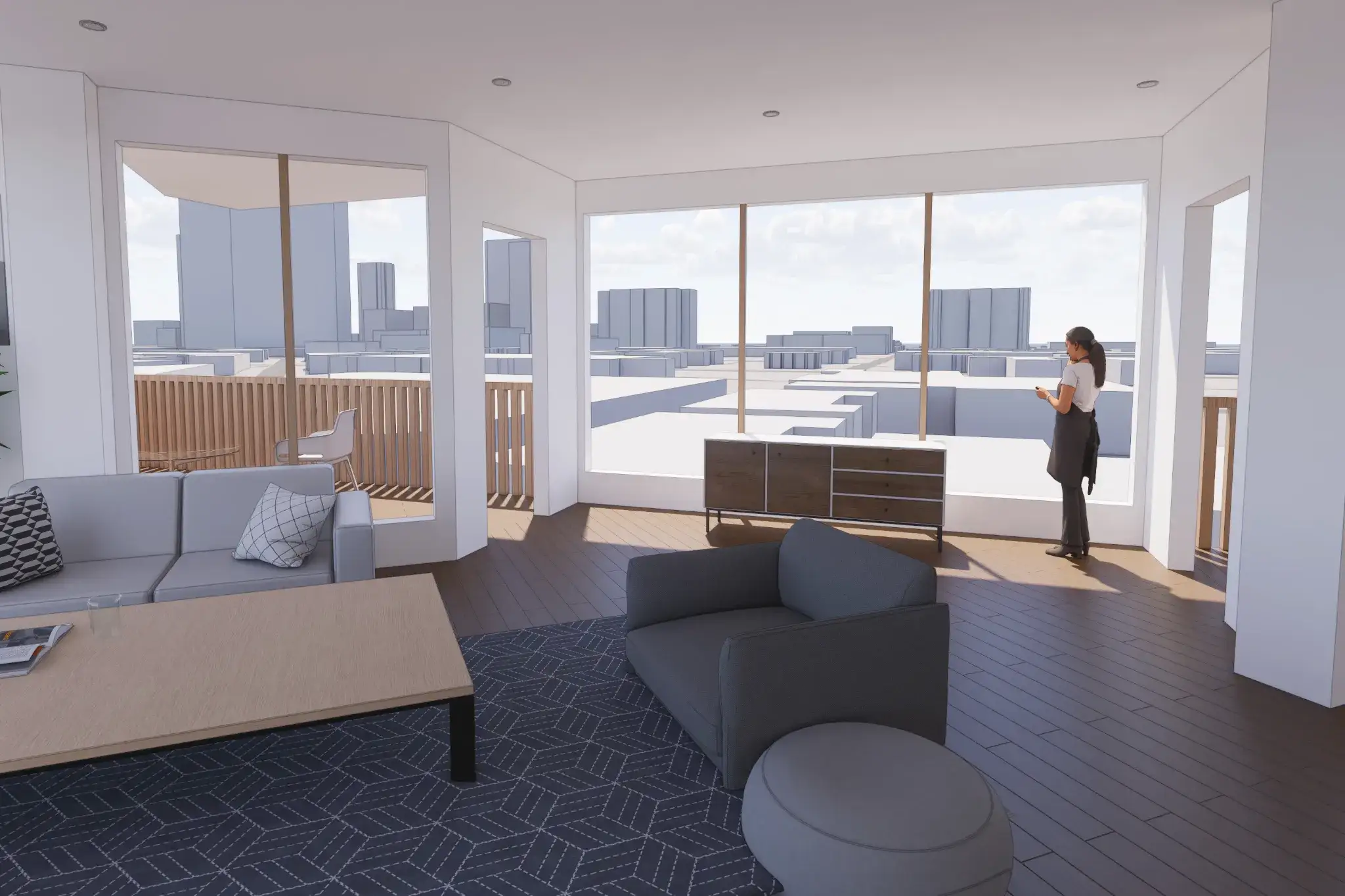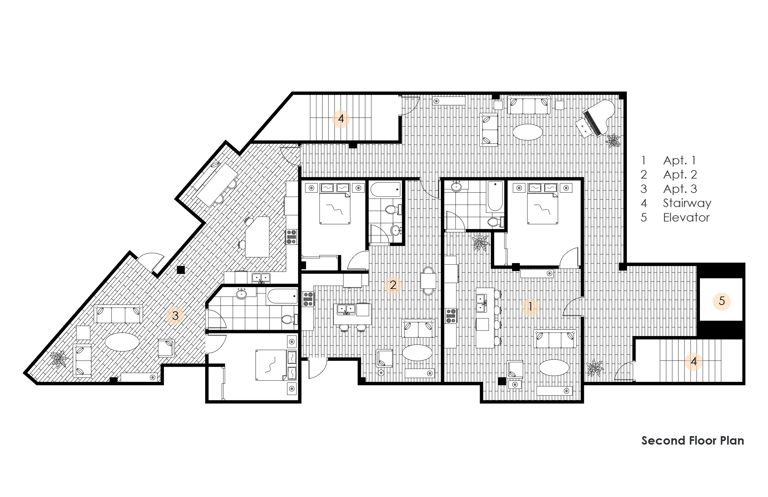 Located on a “leftover site” along Massachusetts Avenue in Indianapolis, this mid-rise, multi-purpose building transforms an underutilized space into a dynamic hub for renters, customers, and the surrounding community. Its irregular form, shaped by intentional variations in apartment sizes, establishes a visually distinct and engaging architectural presence within the vibrant neighborhood.