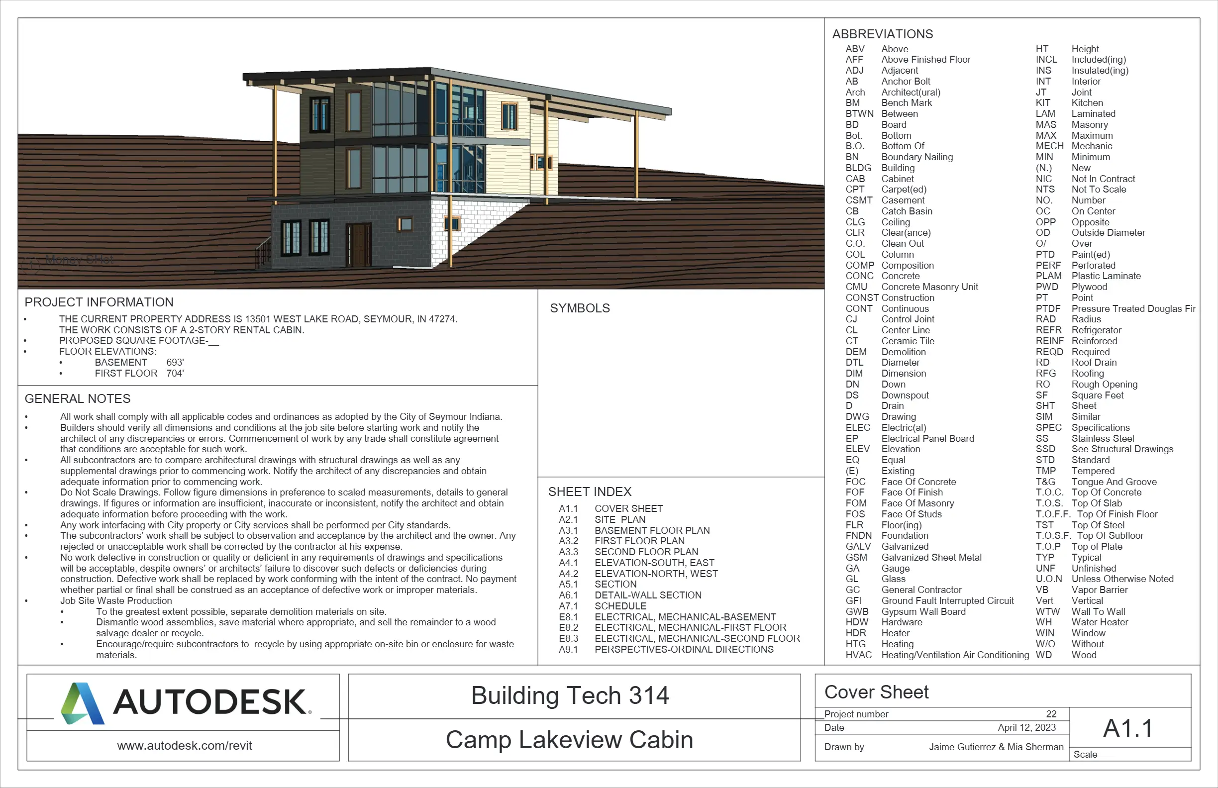This group project introduced Revit and construction drawings to the class through a simple and sustainable cabin design at a summer youth camp, Camp Lakeview.