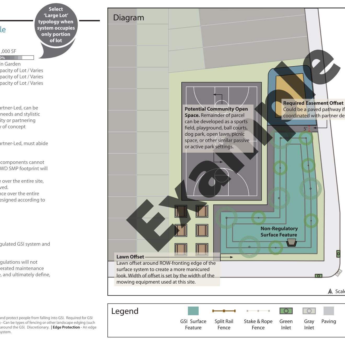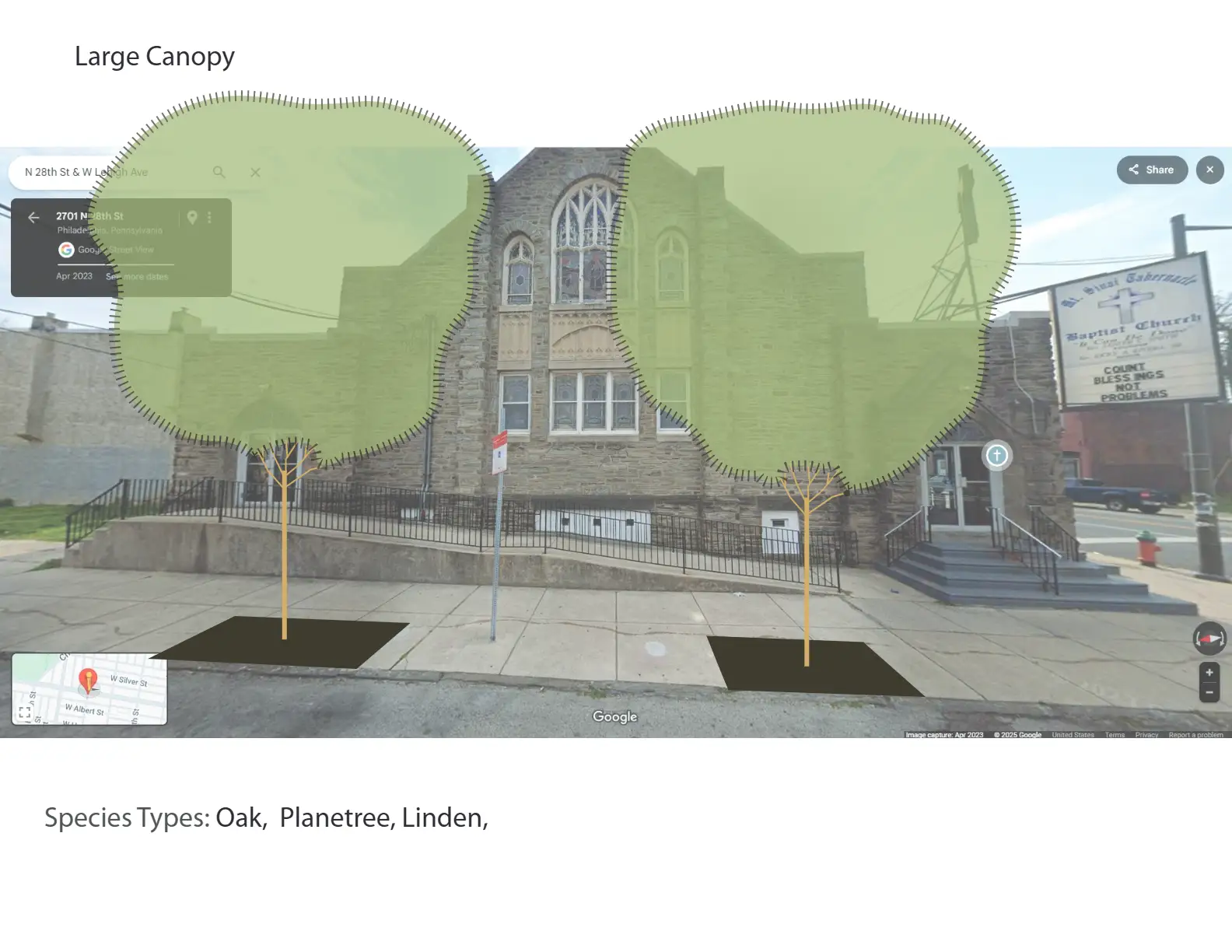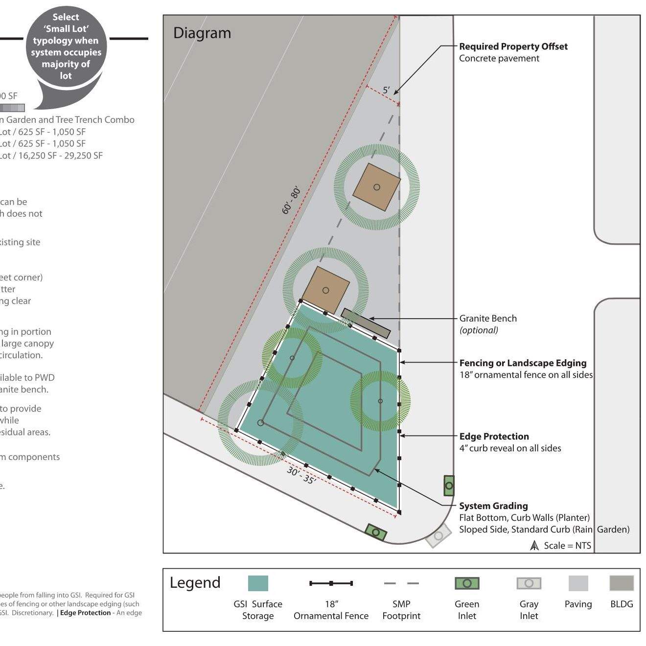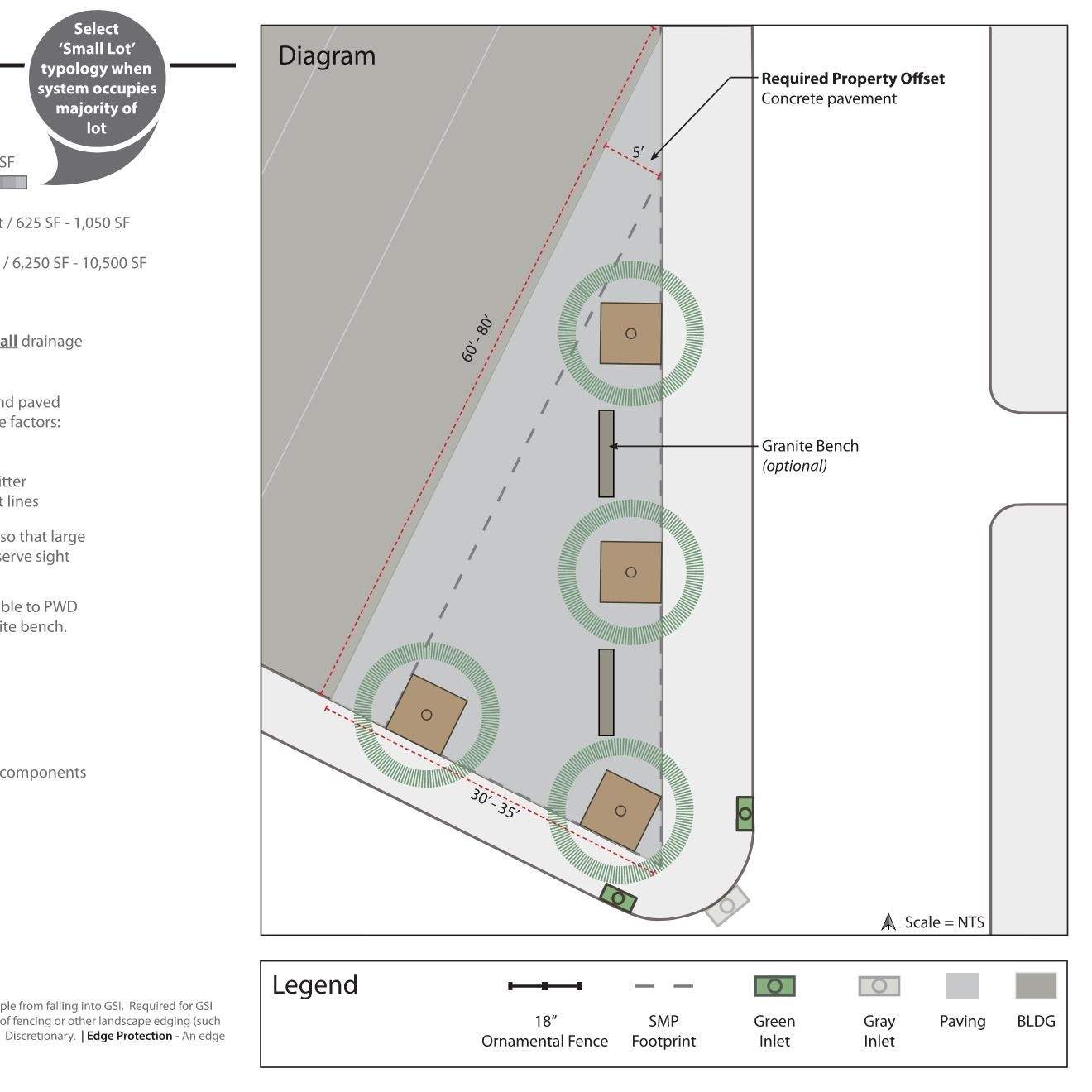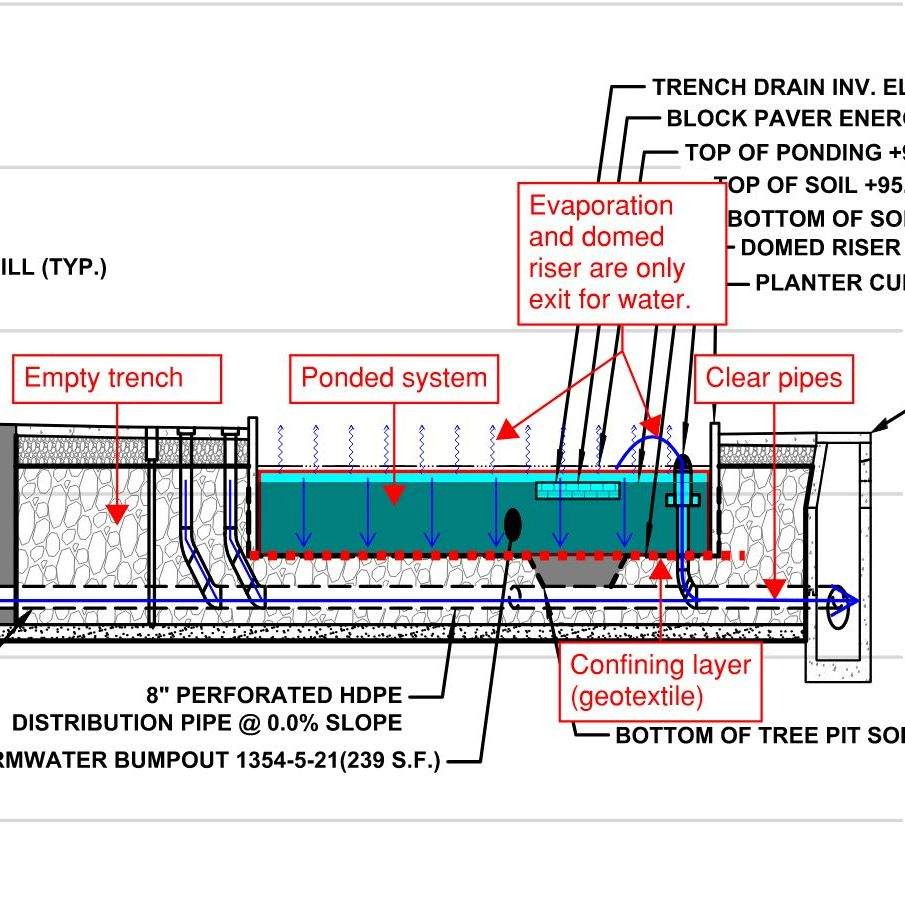 Engaging with community stakeholders is an essential part of public work. All GSI projects make use of some form of outreach, whether it be with other city agencies, community meetings / charrettes, or construction complaints from unhappy residents. In order to make our complex infrastructure digestible for the lay person, simple functional graphics are often best. Easy to understand graphics can also help break down language barriers, enabling communication with all types of communities. Below are some examples of early stage concepts for community meetings, simple perspectives for residents weary of new trees, and other resources that have been helpful with communicating with the public.