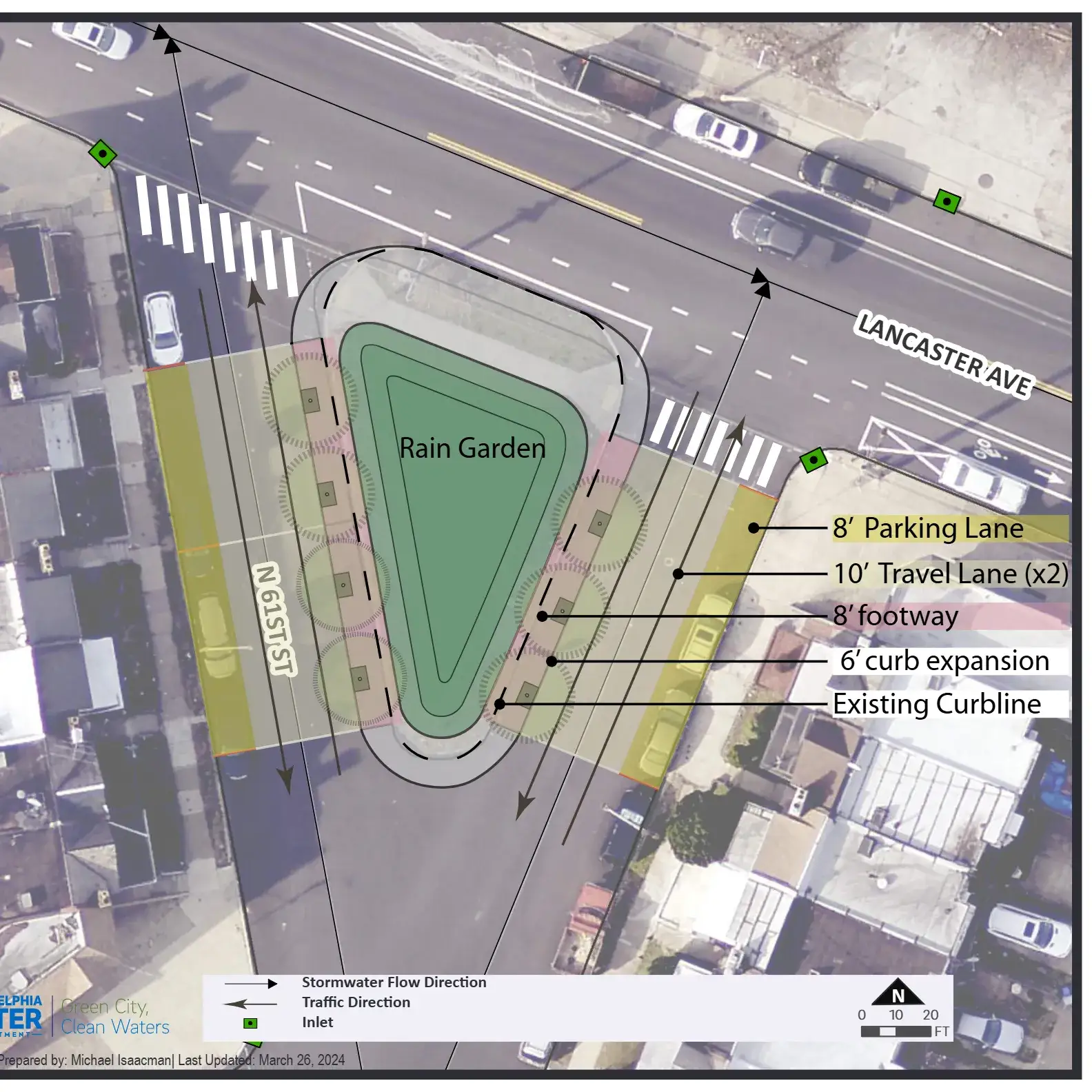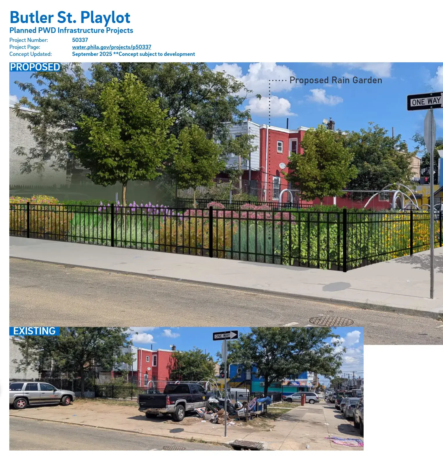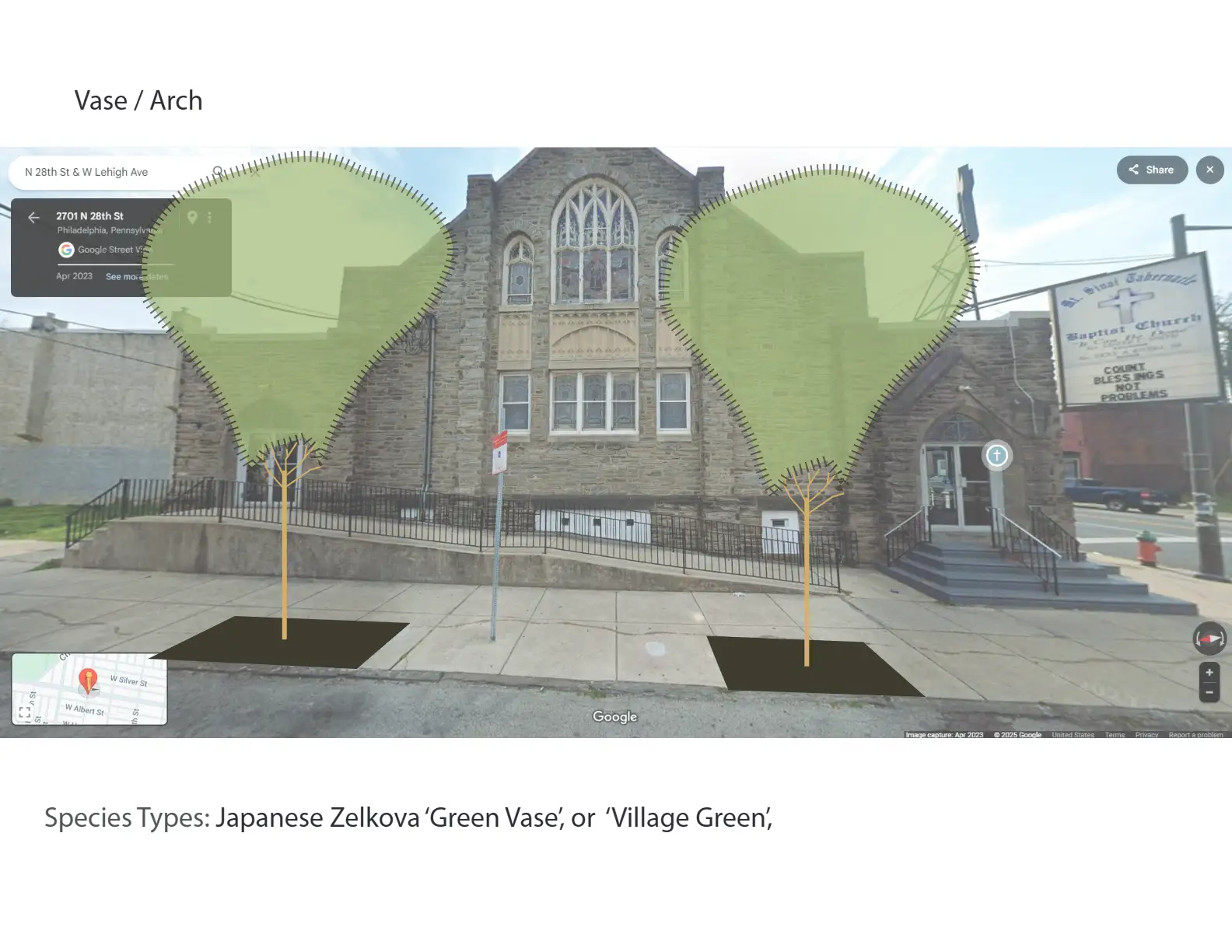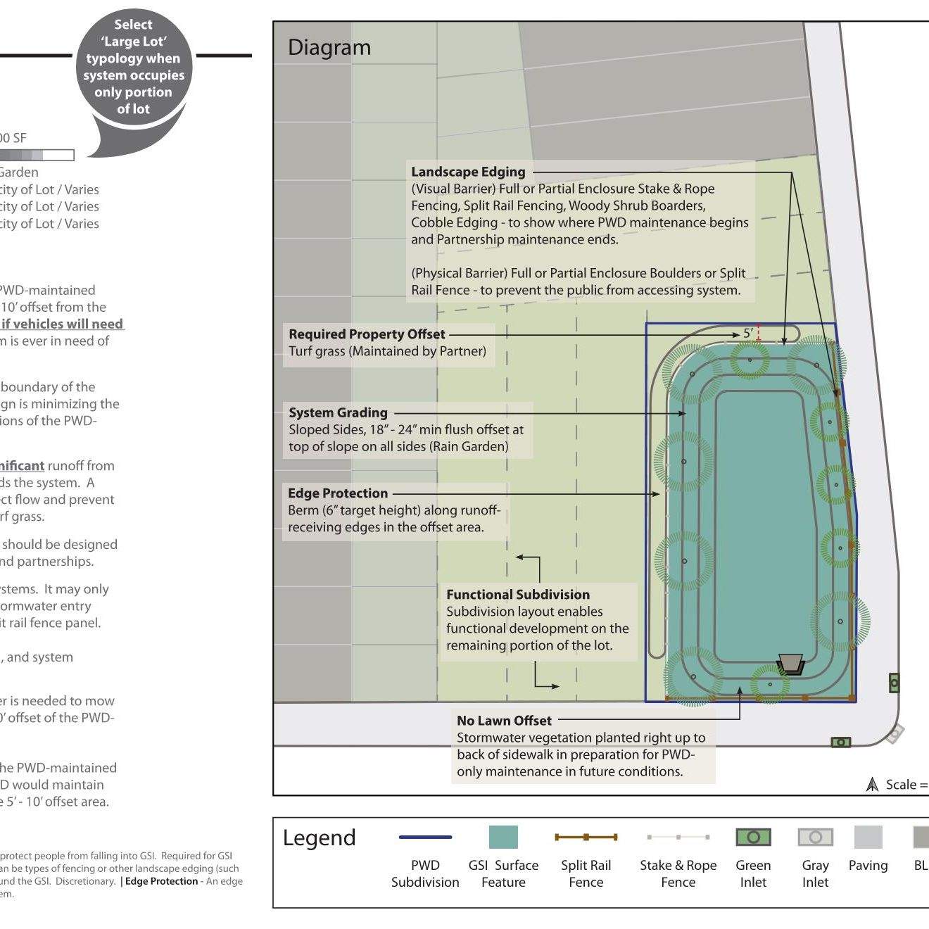 Engaging with community stakeholders is an essential part of public work. All GSI projects make use of some form of outreach, whether it be with other city agencies, community meetings / charrettes, or construction complaints from unhappy residents. In order to make our complex infrastructure digestible for the lay person, simple functional graphics are often best. Easy to understand graphics can also help break down language barriers, enabling communication with all types of communities. Below are some examples of early stage concepts for community meetings, simple perspectives for residents weary of new trees, and other resources that have been helpful with communicating with the public.