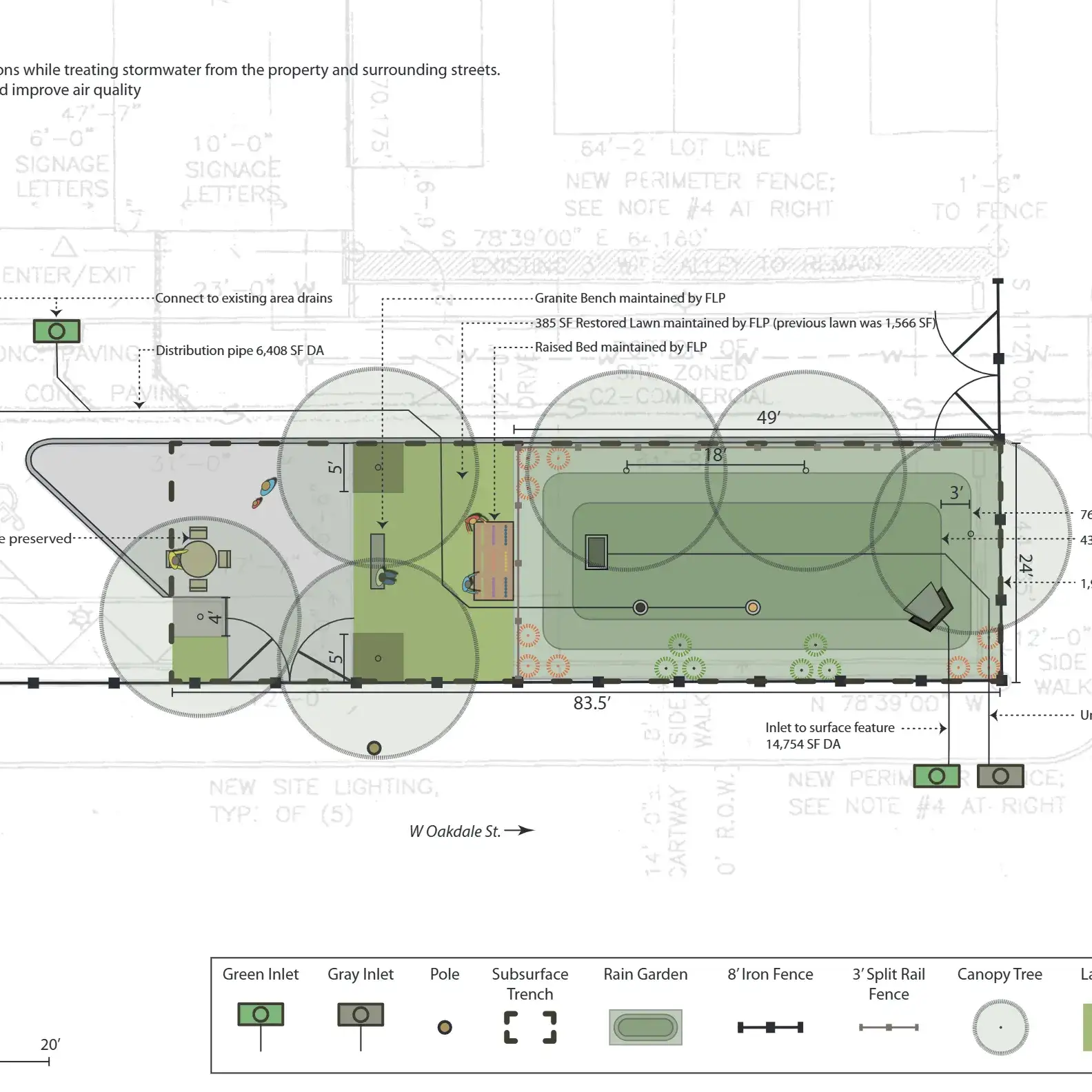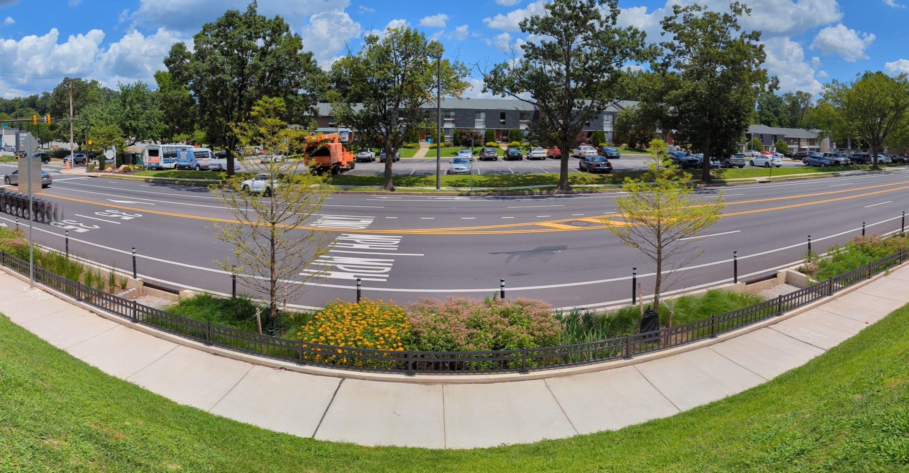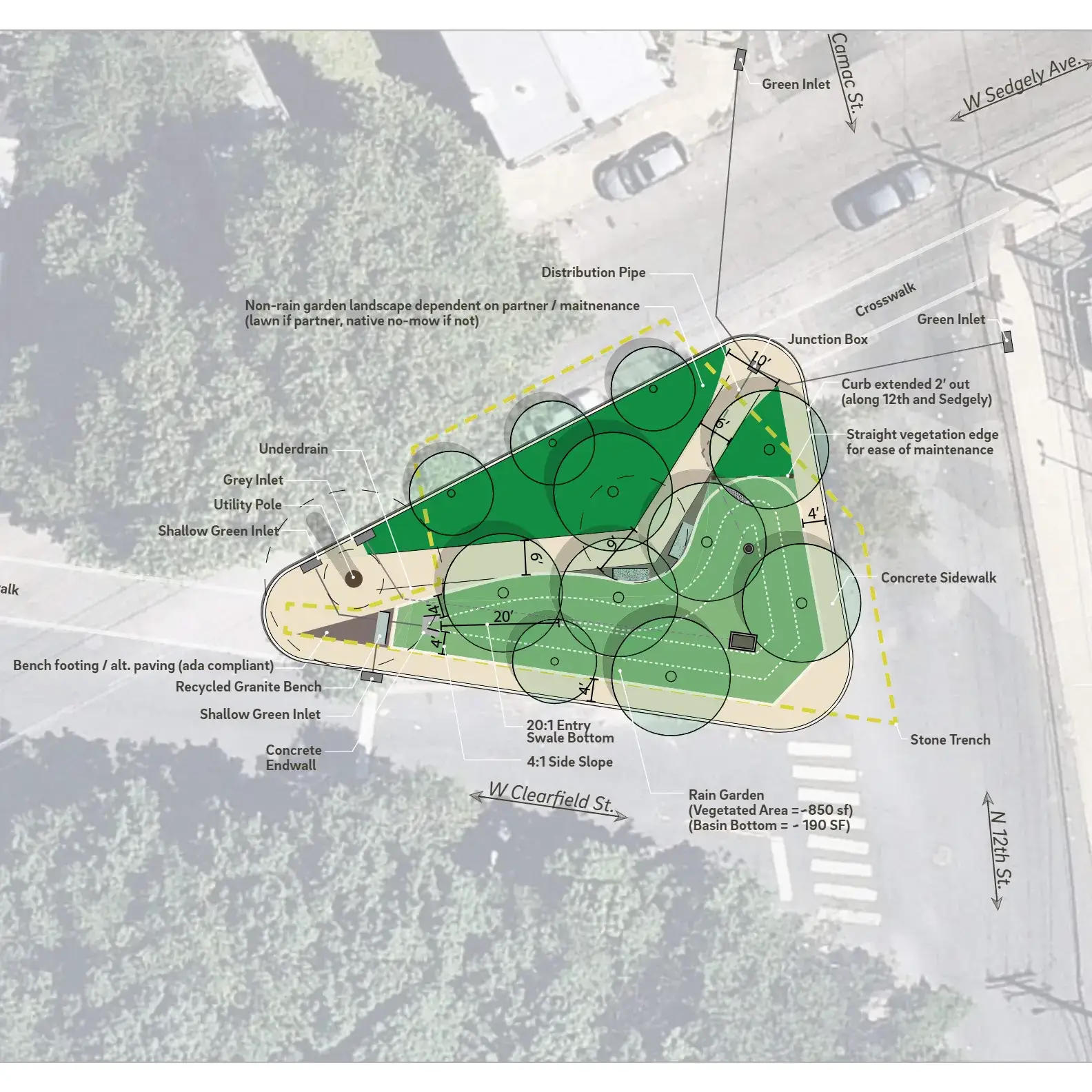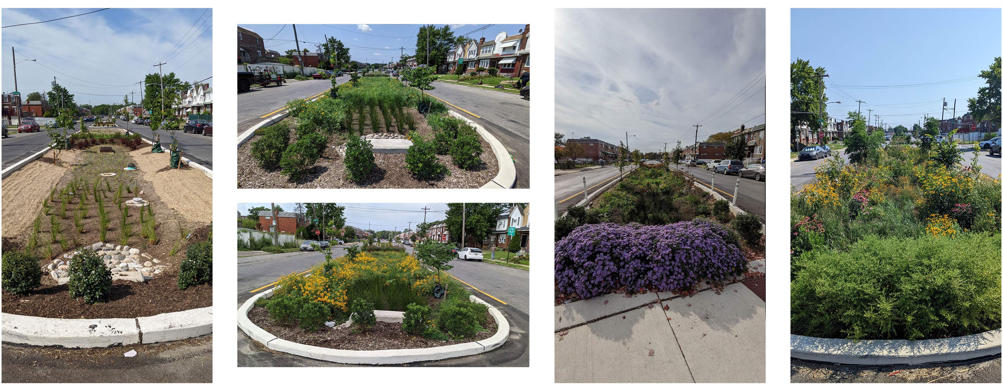 Green Infrastructure installations can be a bit of a nuisance for adjacent residents, as they involve lengthy road closures, construction noise and dust, and potential removal of street parking spaces. In order to reduce the shock to the residents, I visited the medians before construction began and took inventory of the existing trees, noting Pink and White Dogwoods, Redbuds, and a few other species compatible with GSI. When designing the landscape plans, I placed new trees of the same species in the locations where those trees previously existed, to give continuity and familiarity to the landscape. The community has responded quite positively to the plantings after enduring the lengthy construction process, and the plants have been thriving for years since installation.