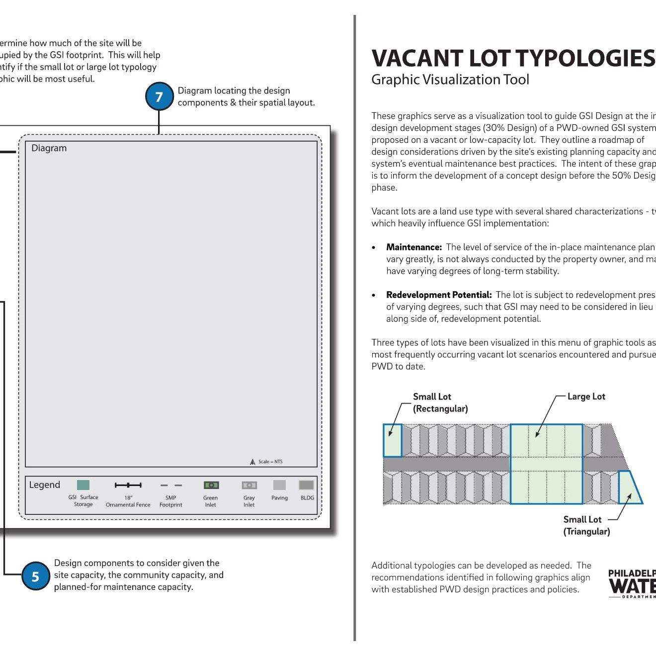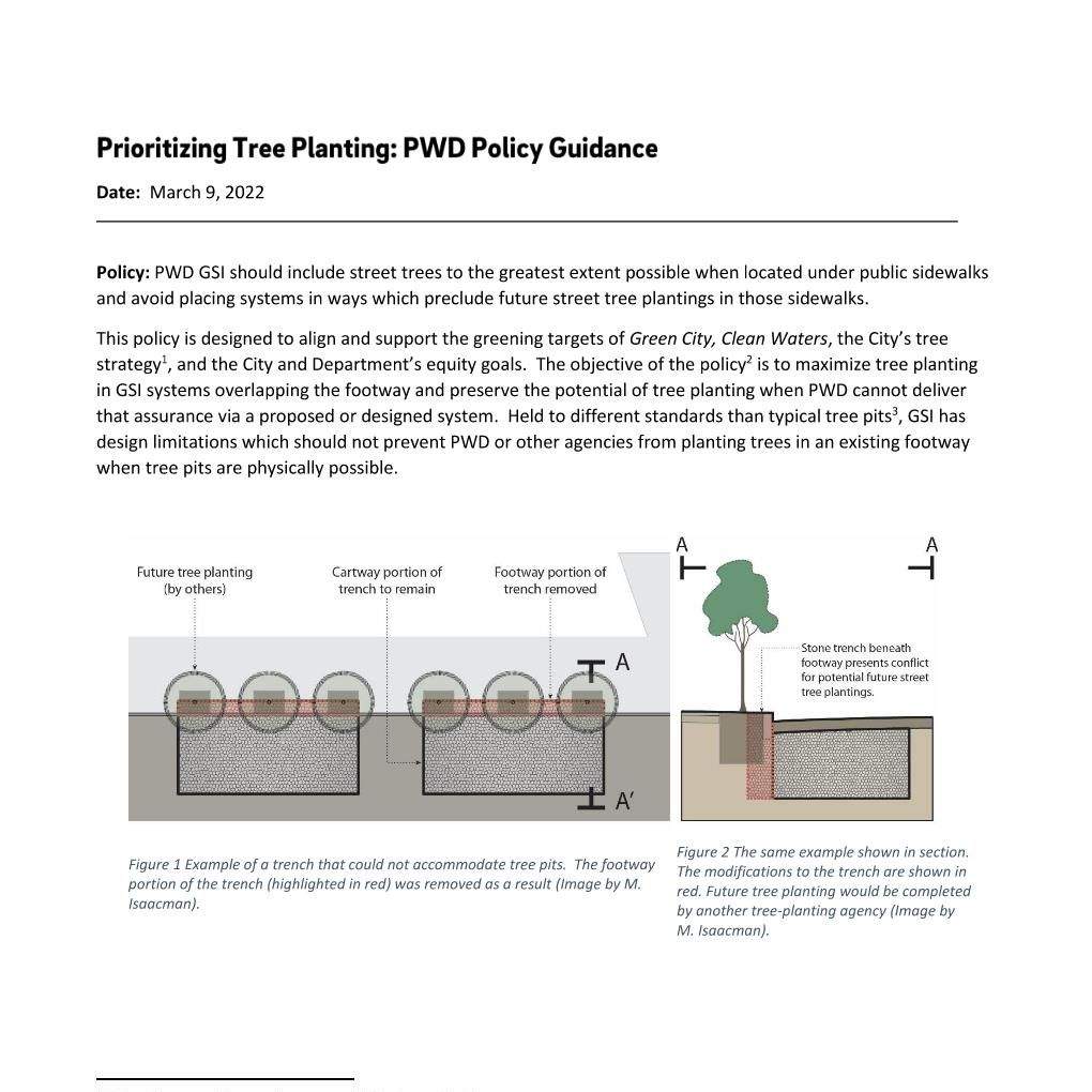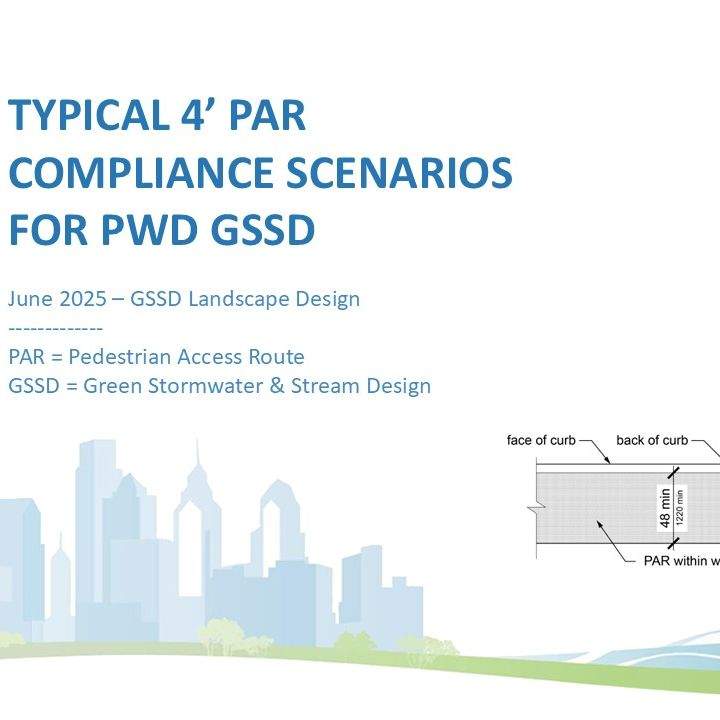 As a part of the municipal government, Landscape Architects at PWD play a role in setting policy for urban greening. This involves many initiatives, both within the department and with other agencies across the city. The topics of these documents range from conceptual to technical, encompassing items like vacant lot development typologies, minimum street tree offsets, climate change adaptation, specifications updates, and other public space design considerations.