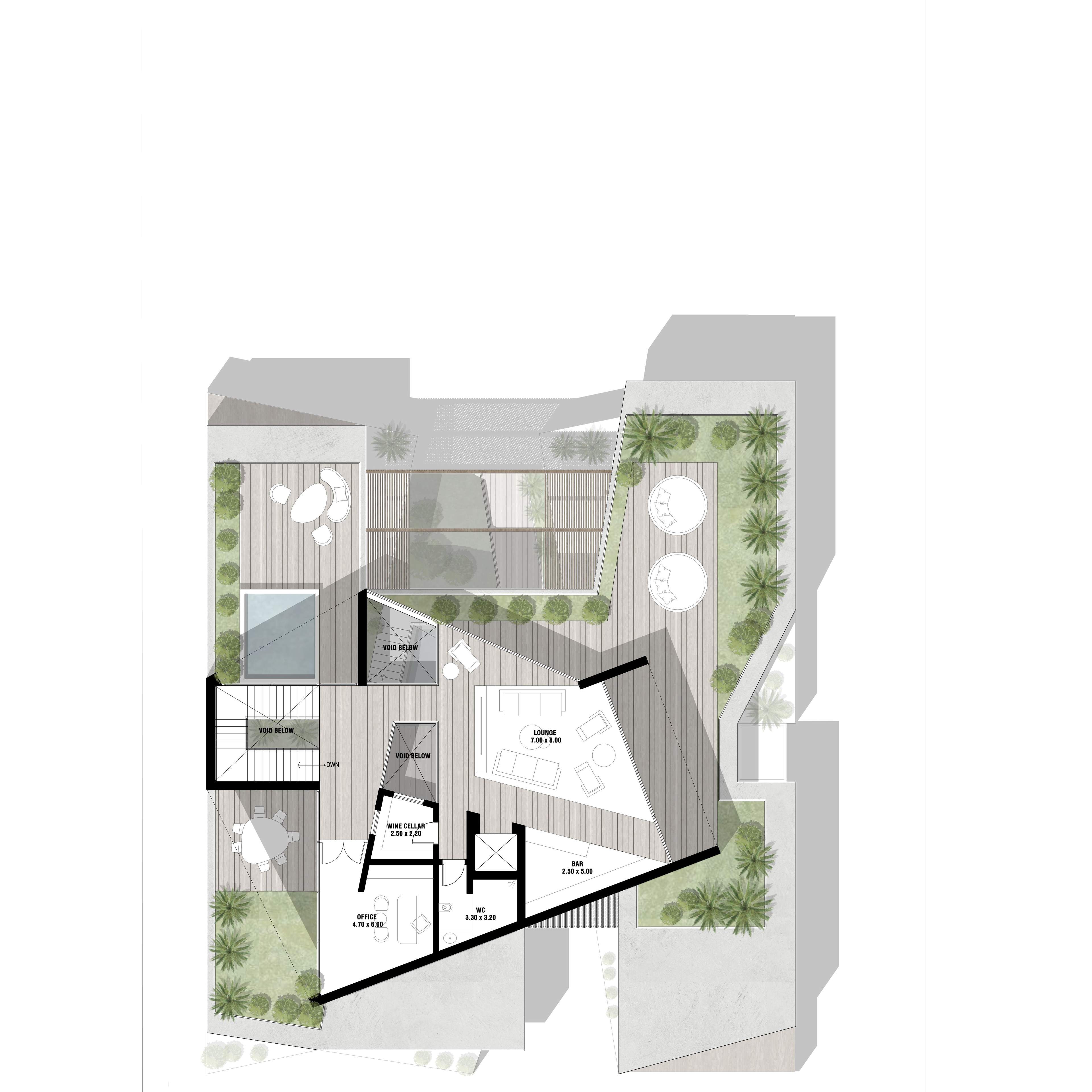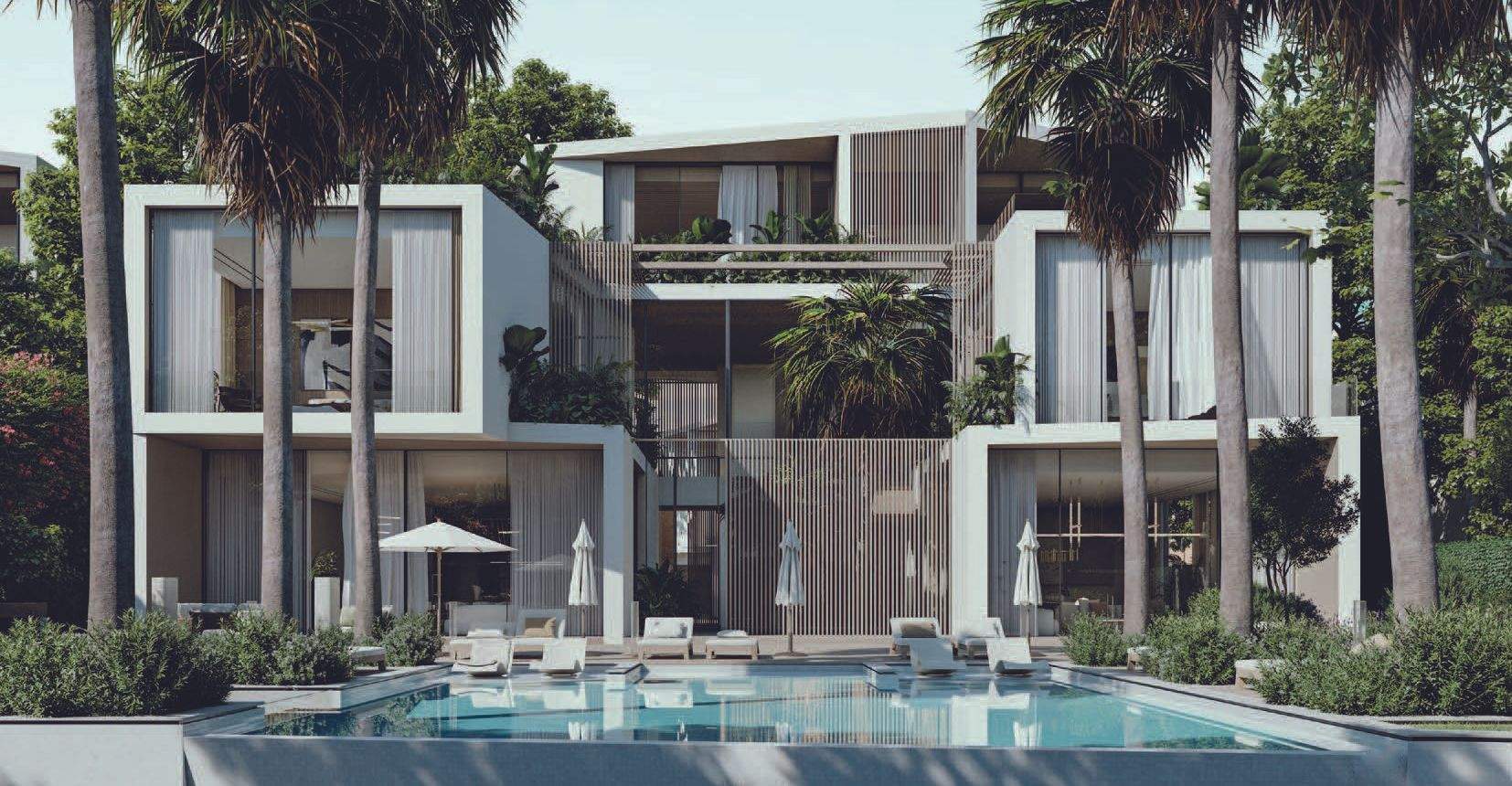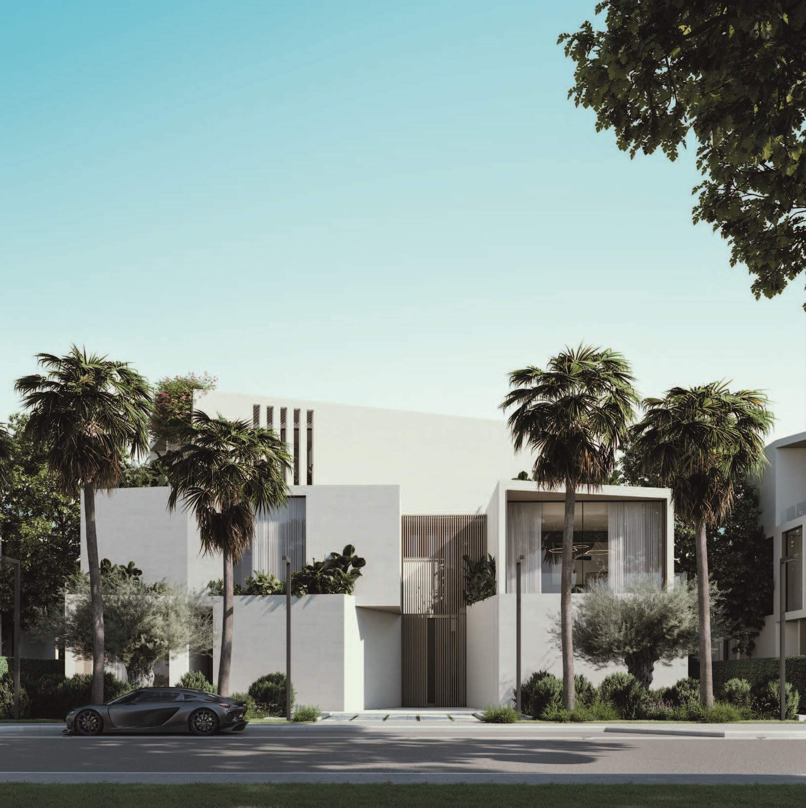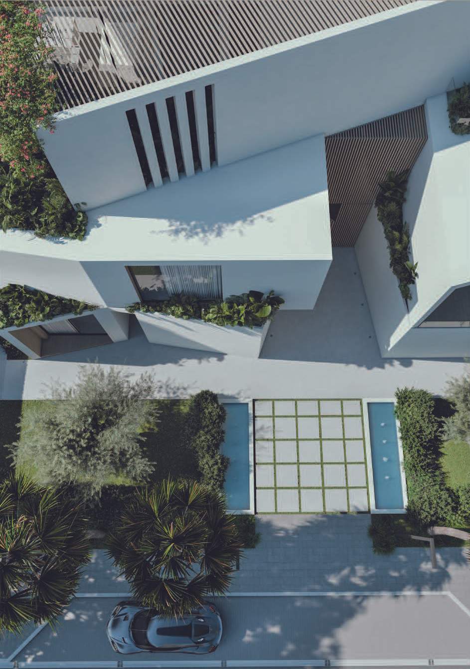 Altissima is an upscale residential complex in Al Barari, Dubai, featuring a series of carefully designed villas on distinct plots. The architecture is defined by a U-shaped pavilion layout on the ground floor, opening to a scenic backyard and housing public living areas, guest suites, and a circulation core. The first floor mirrors this arrangement with private pavilions above, featuring terraces and balconies. The second floor hosts an entertainment and office pavilion, utilizing the first-floor roofs as outdoor spaces.