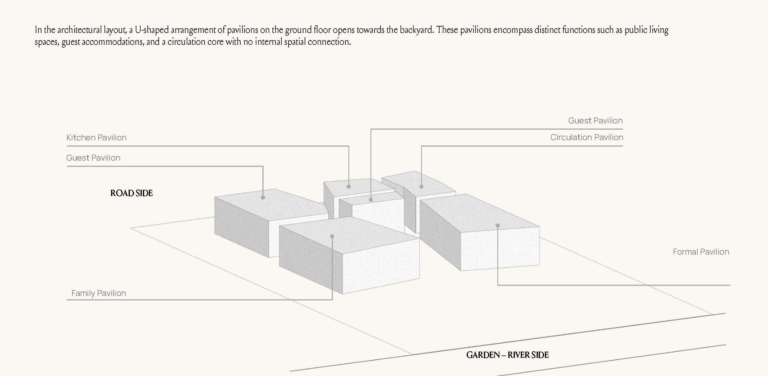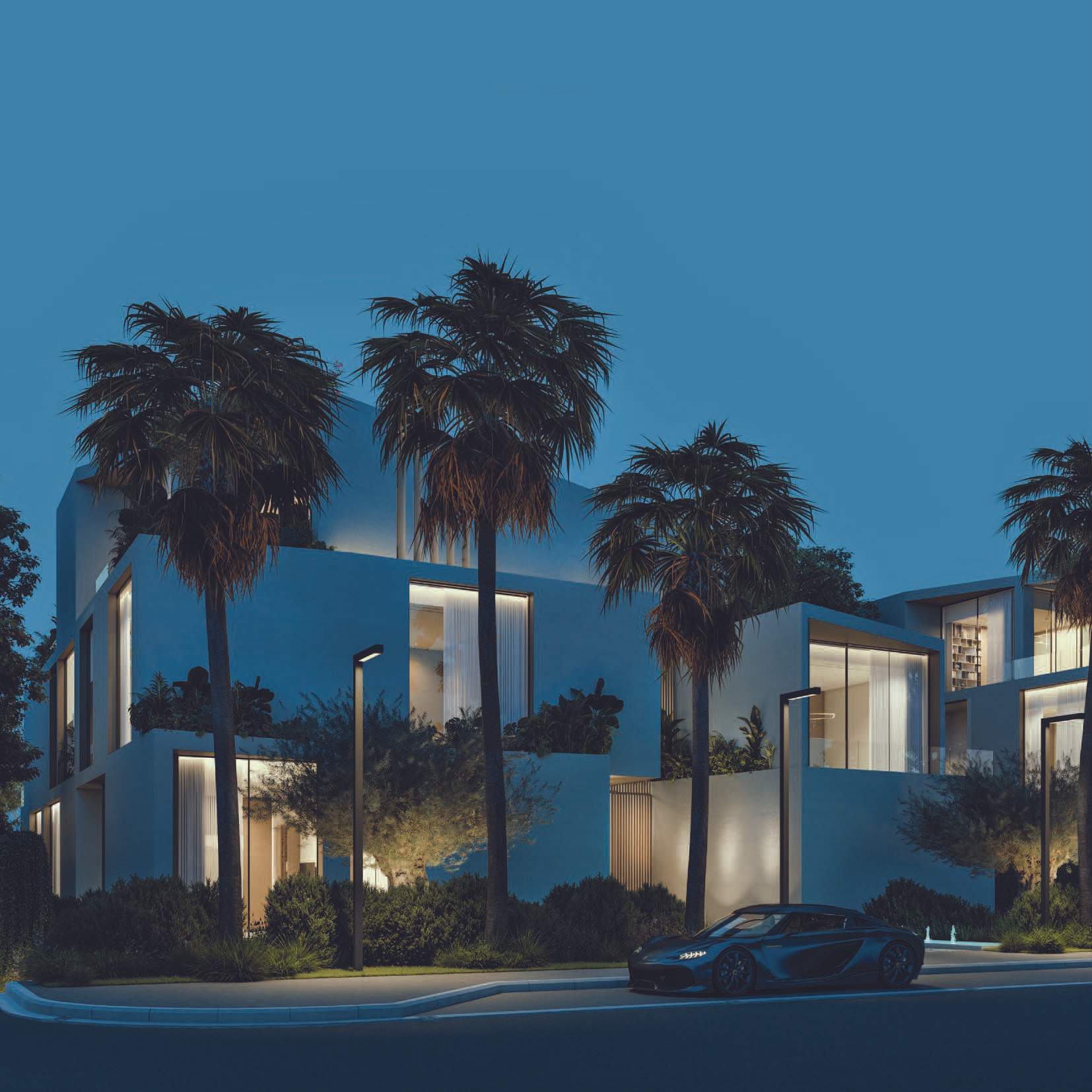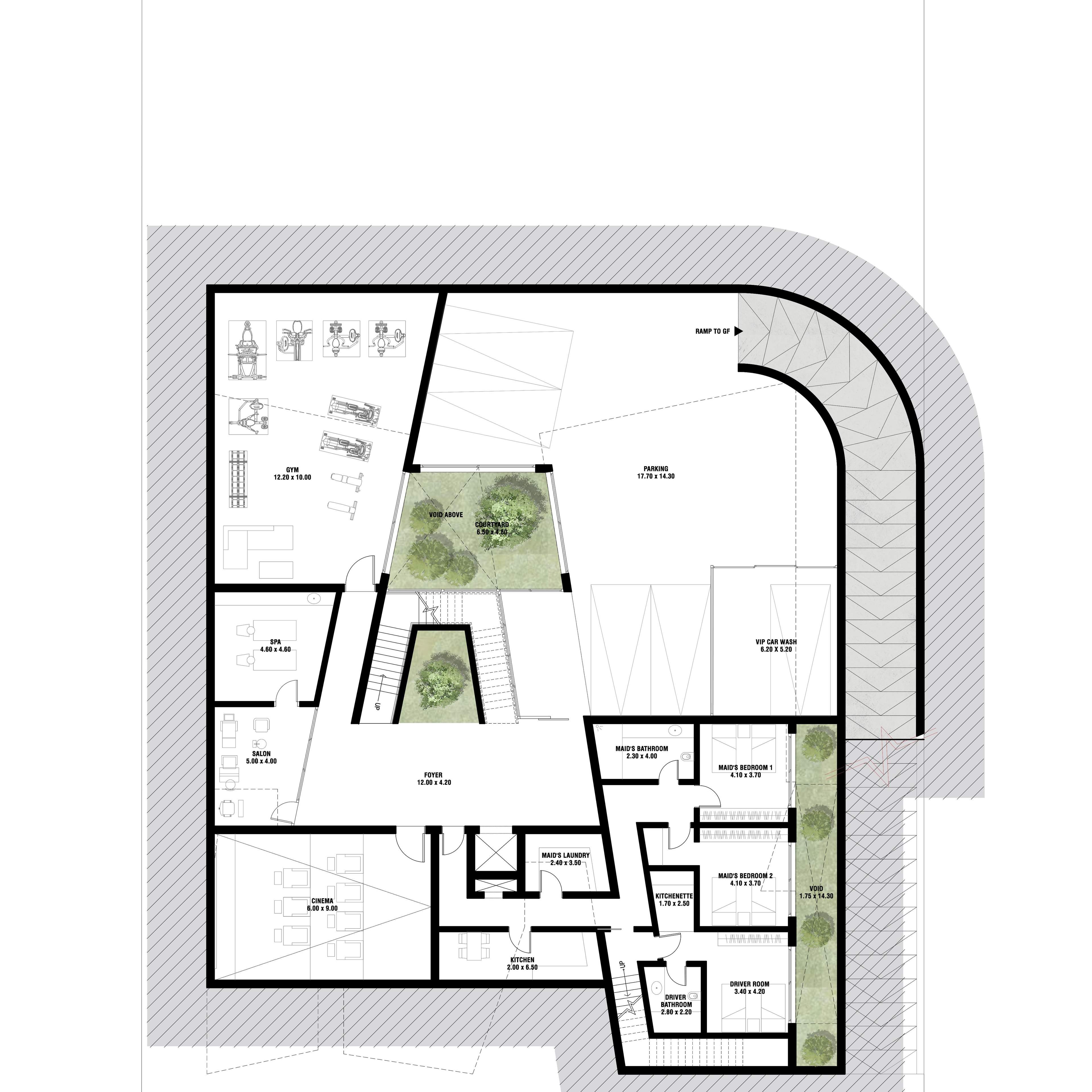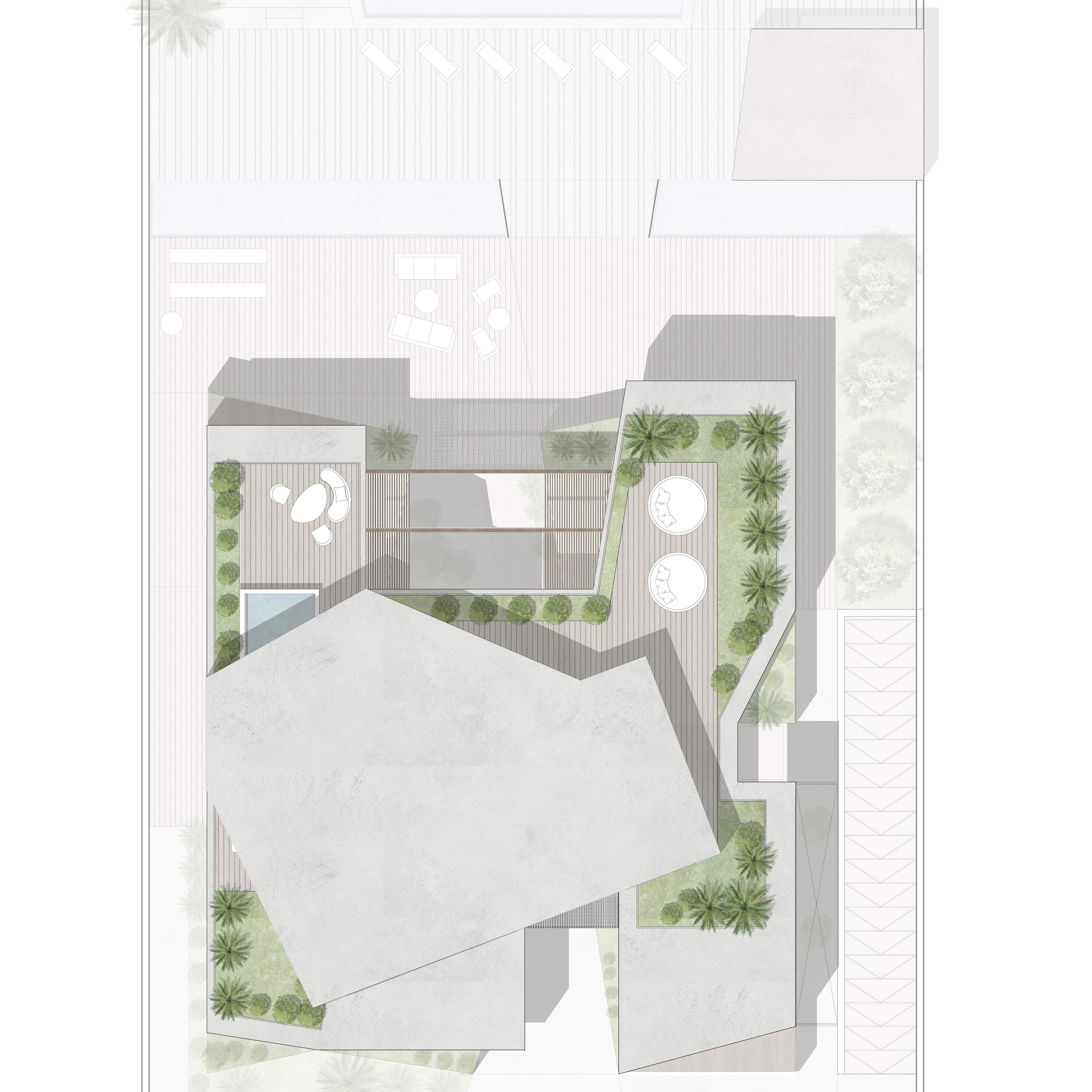 Altissima is an upscale residential complex in Al Barari, Dubai, featuring a series of carefully designed villas on distinct plots. The architecture is defined by a U-shaped pavilion layout on the ground floor, opening to a scenic backyard and housing public living areas, guest suites, and a circulation core. The first floor mirrors this arrangement with private pavilions above, featuring terraces and balconies. The second floor hosts an entertainment and office pavilion, utilizing the first-floor roofs as outdoor spaces.