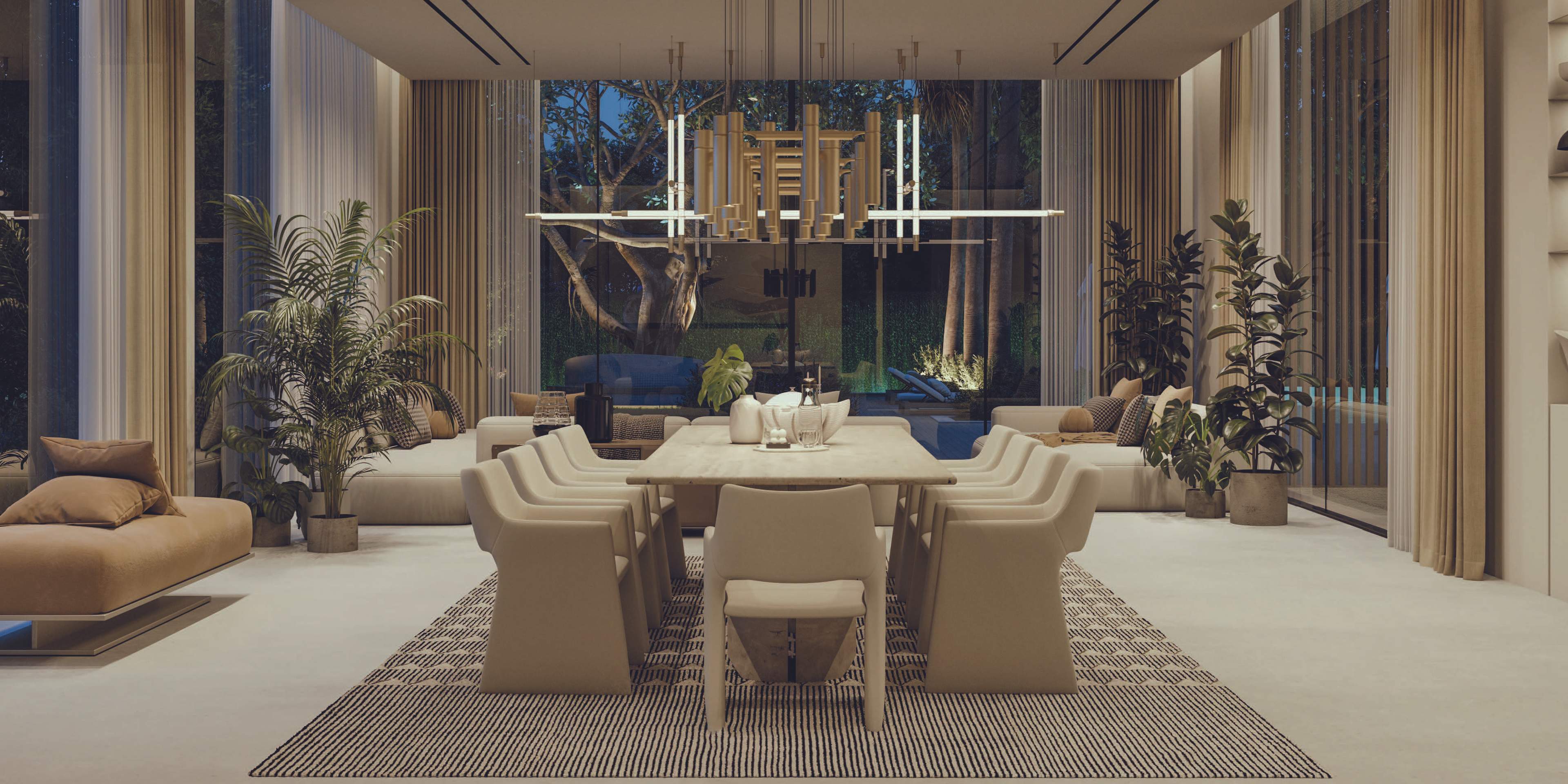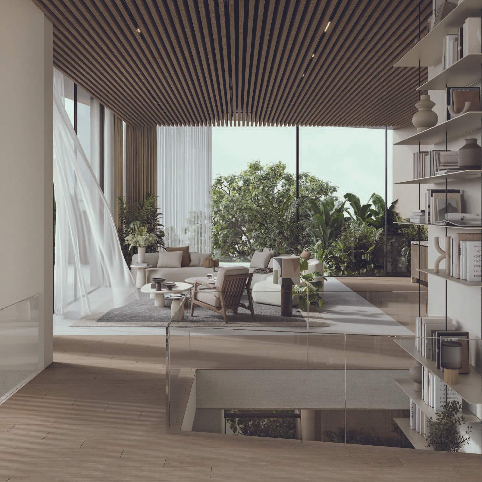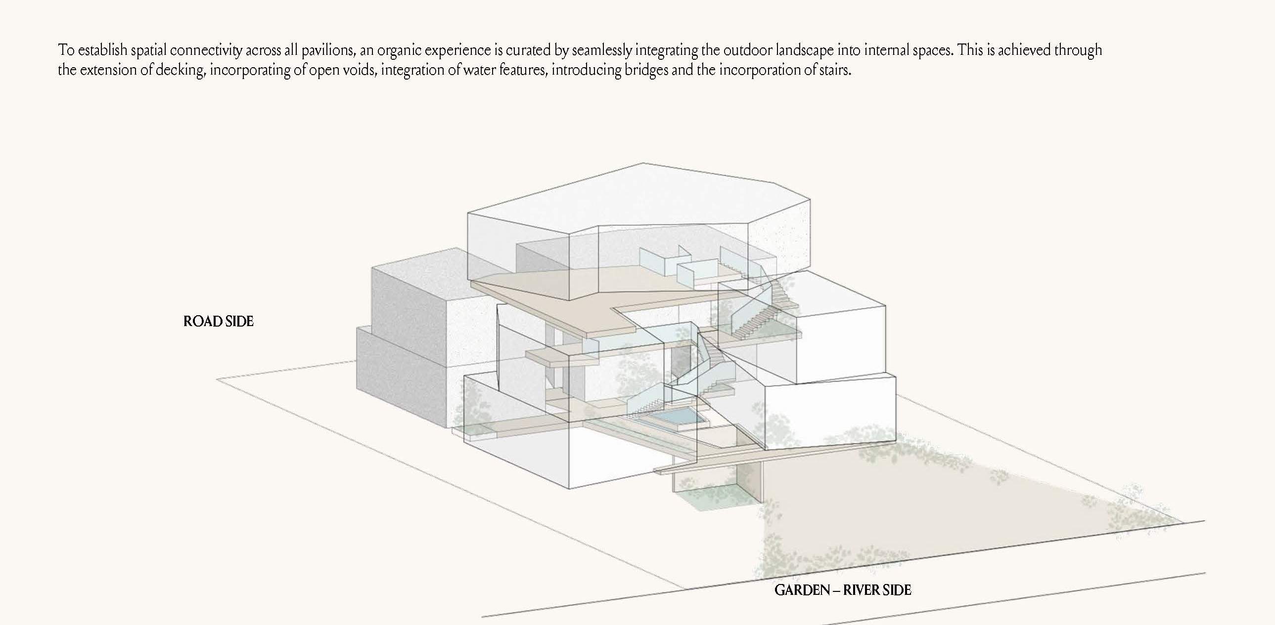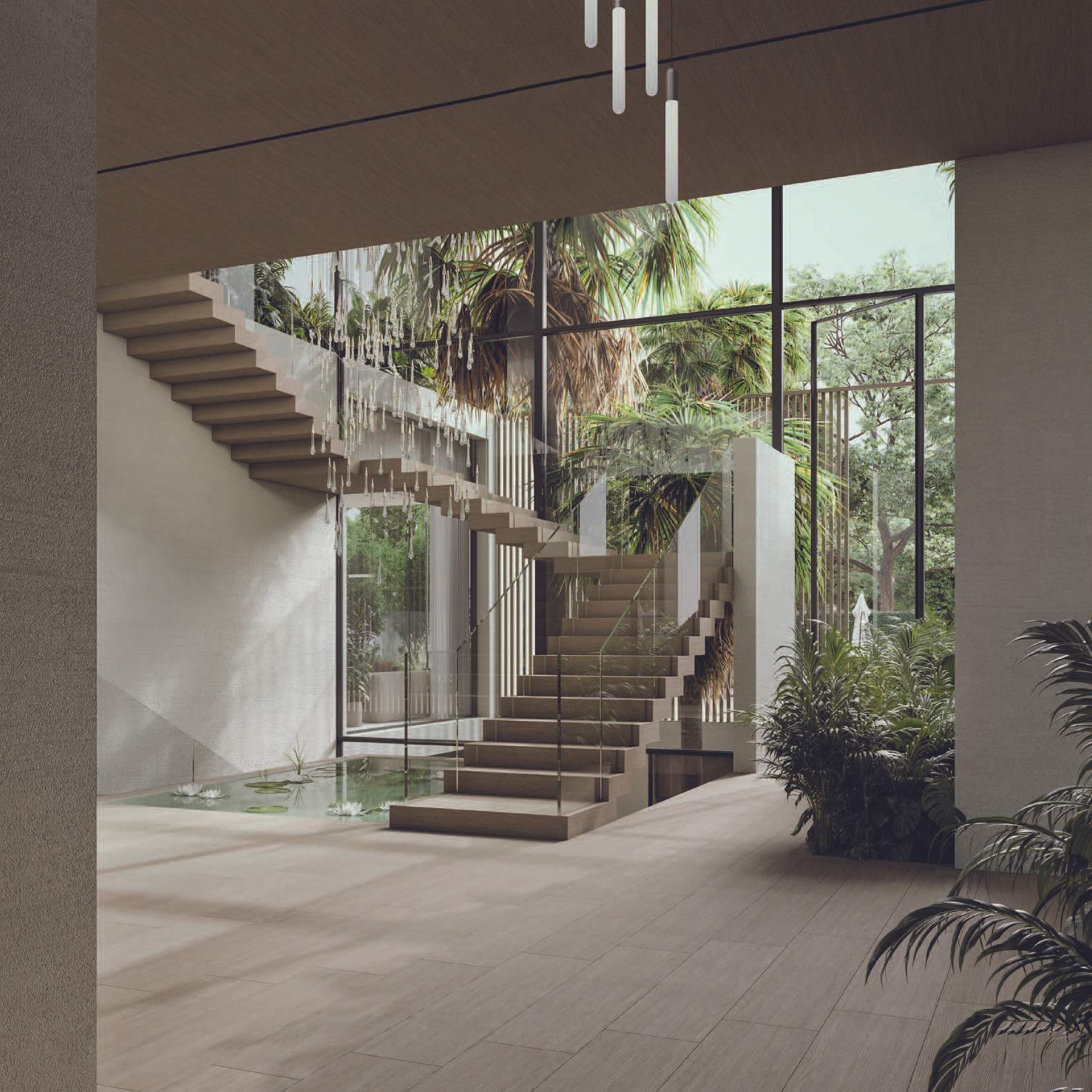 The design promotes seamless indoor-outdoor connectivity through decking, water features, and open voids. A highlight is the Summer Garden, an indoor-outdoor transitional space enhanced by automated sliding louvers. Large glazed openings and green pockets throughout the villas integrate nature into the living environment, creating a harmonious blend of luxury and natural beauty.