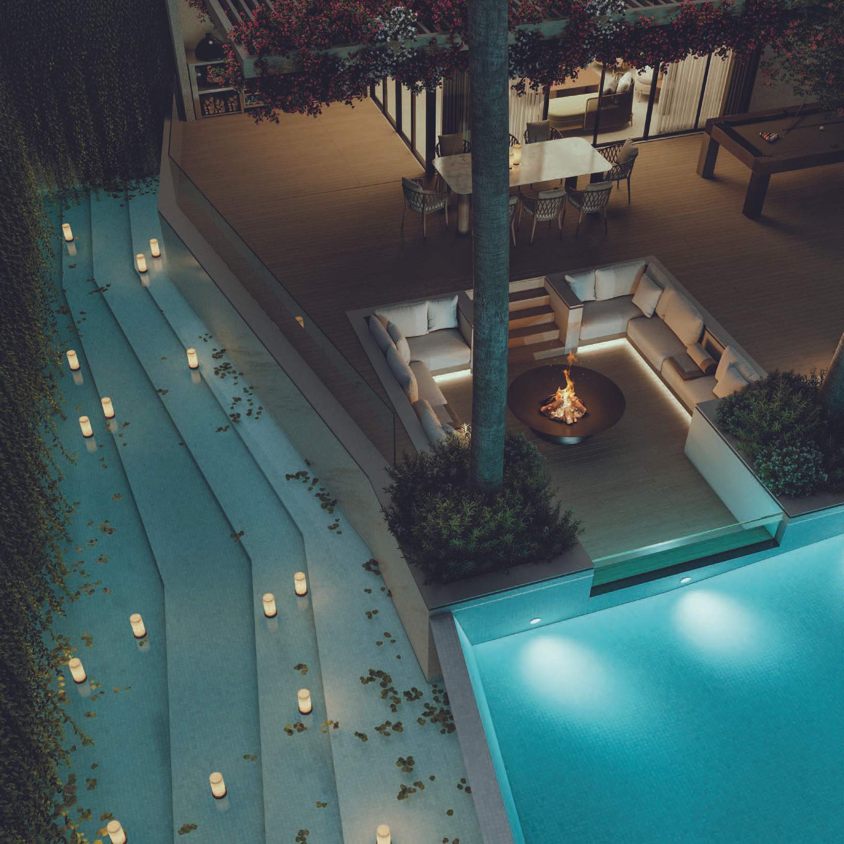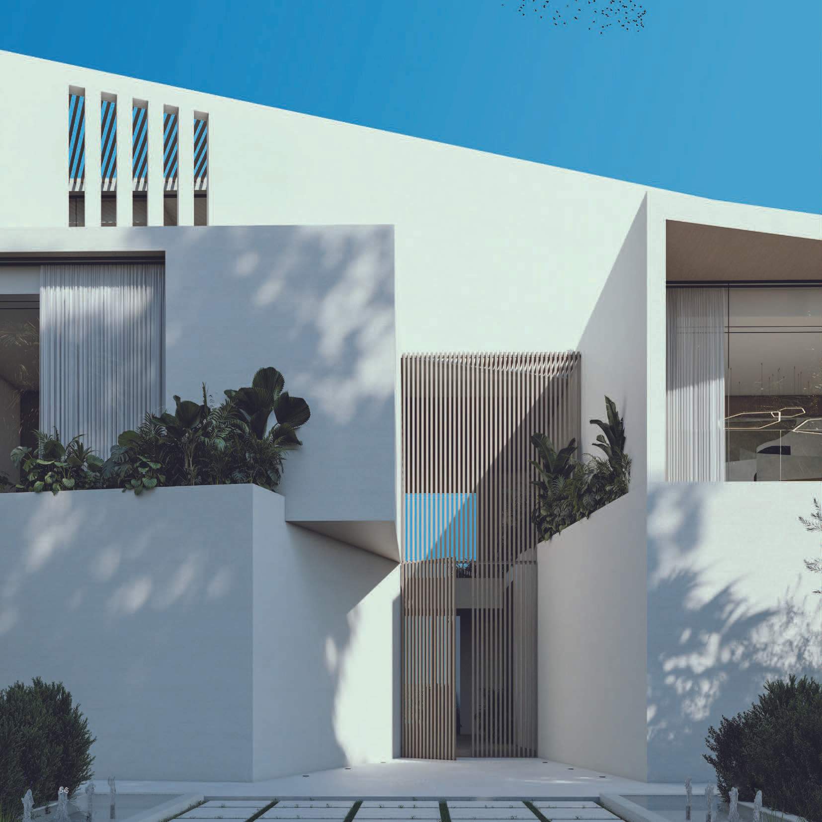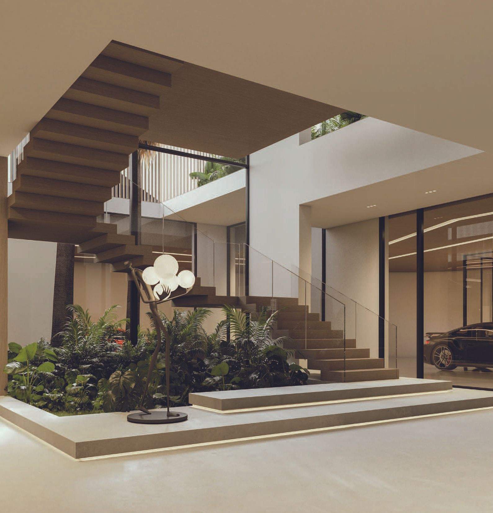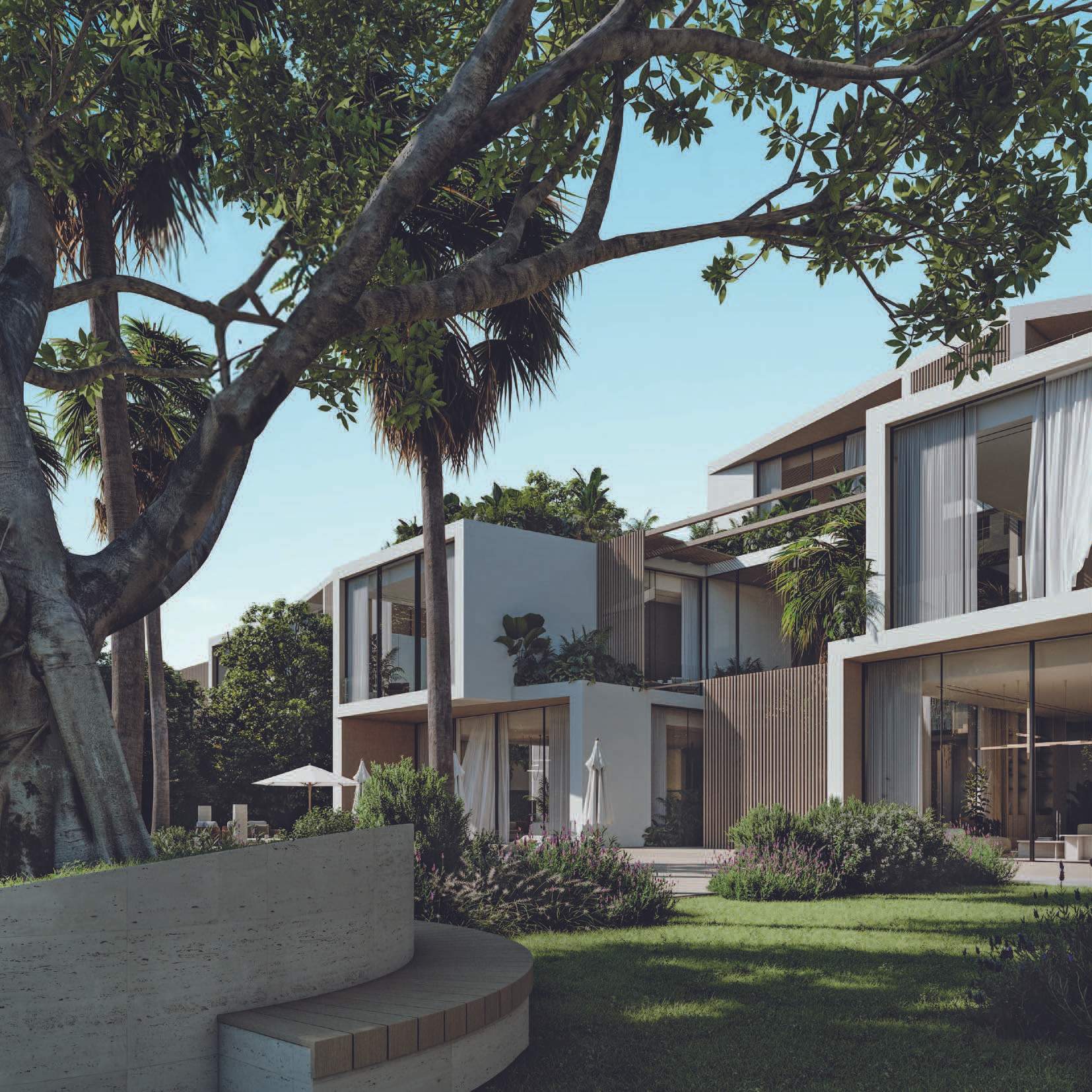 The design promotes seamless indoor-outdoor connectivity through decking, water features, and open voids. A highlight is the Summer Garden, an indoor-outdoor transitional space enhanced by automated sliding louvers. Large glazed openings and green pockets throughout the villas integrate nature into the living environment, creating a harmonious blend of luxury and natural beauty.