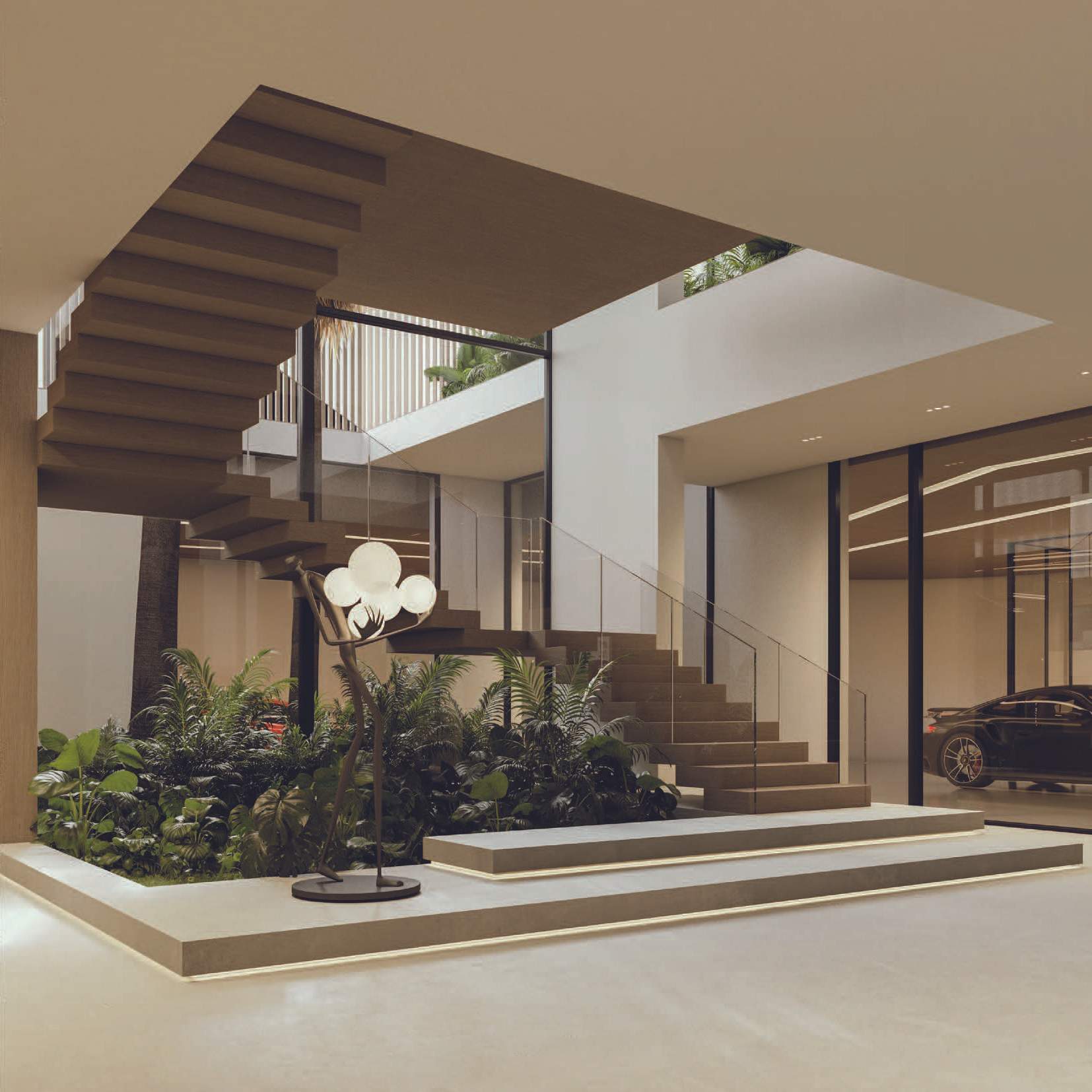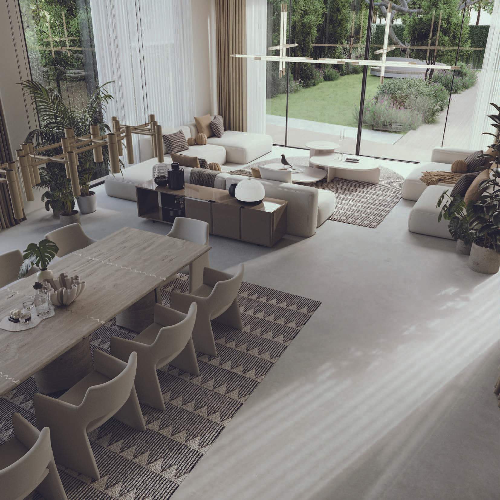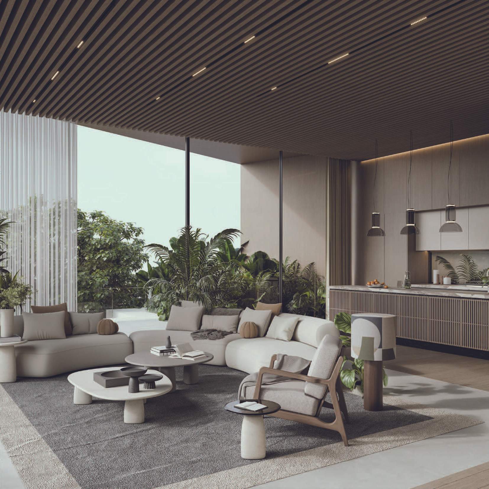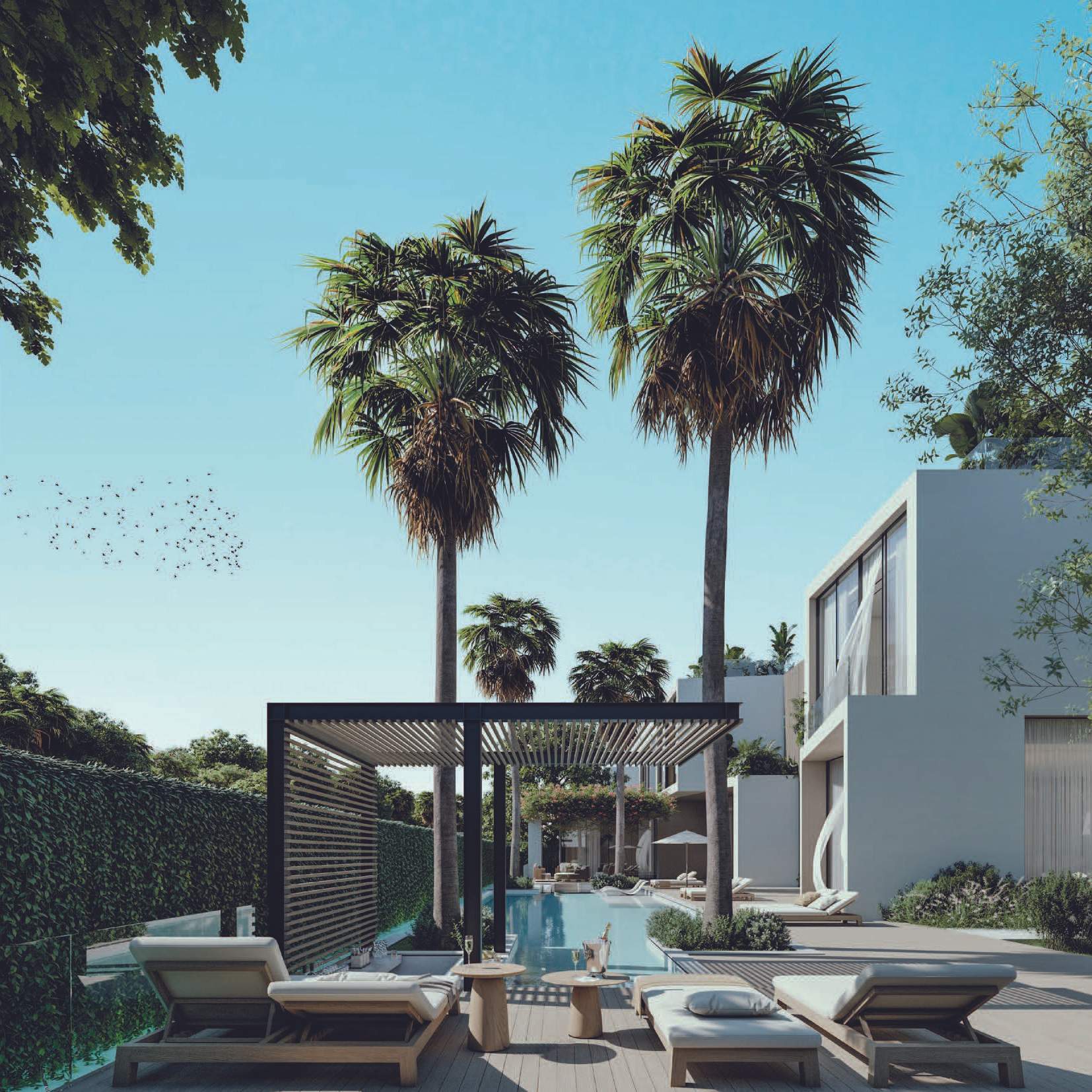 The design promotes seamless indoor-outdoor connectivity through decking, water features, and open voids. A highlight is the Summer Garden, an indoor-outdoor transitional space enhanced by automated sliding louvers. Large glazed openings and green pockets throughout the villas integrate nature into the living environment, creating a harmonious blend of luxury and natural beauty.