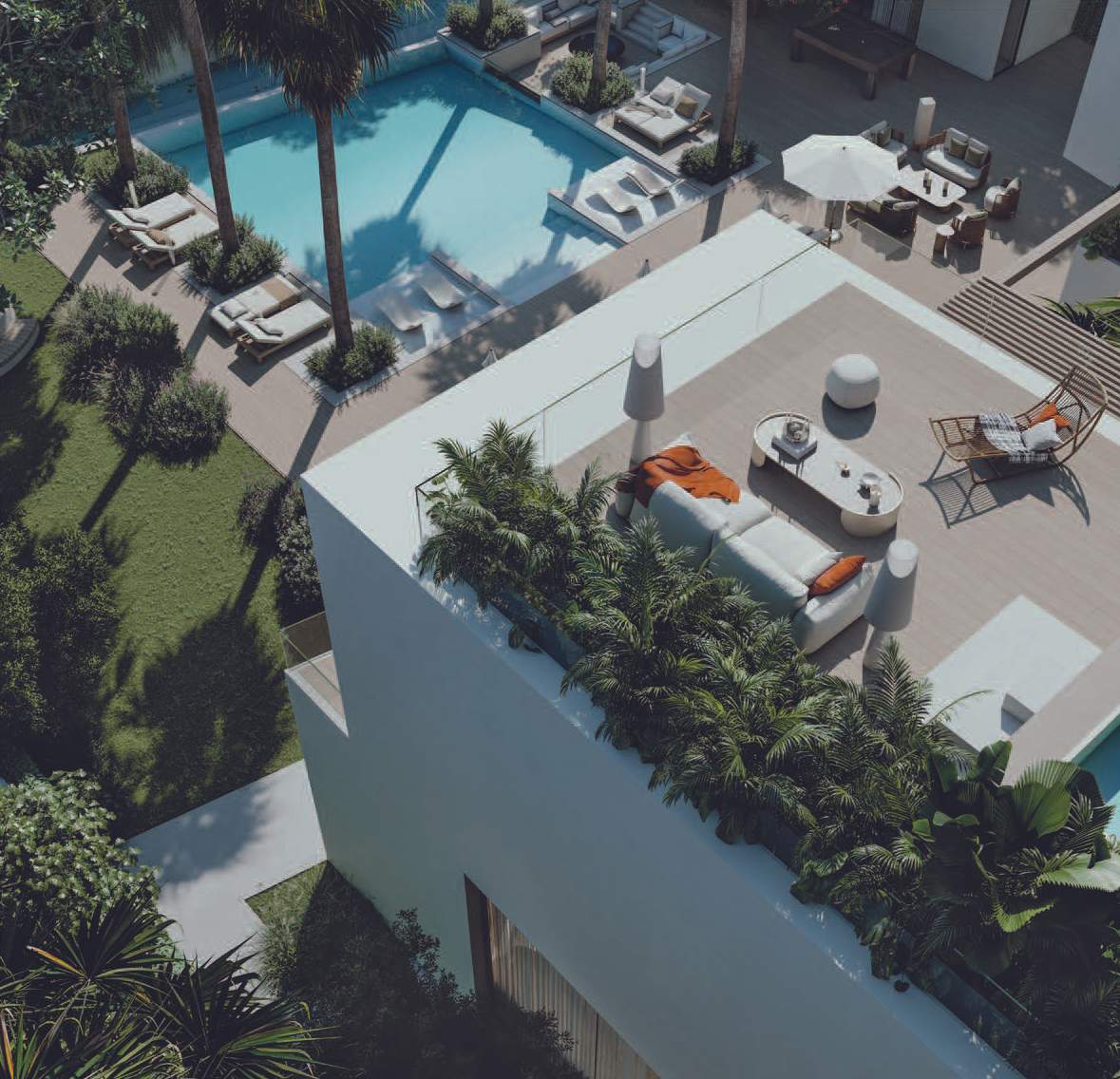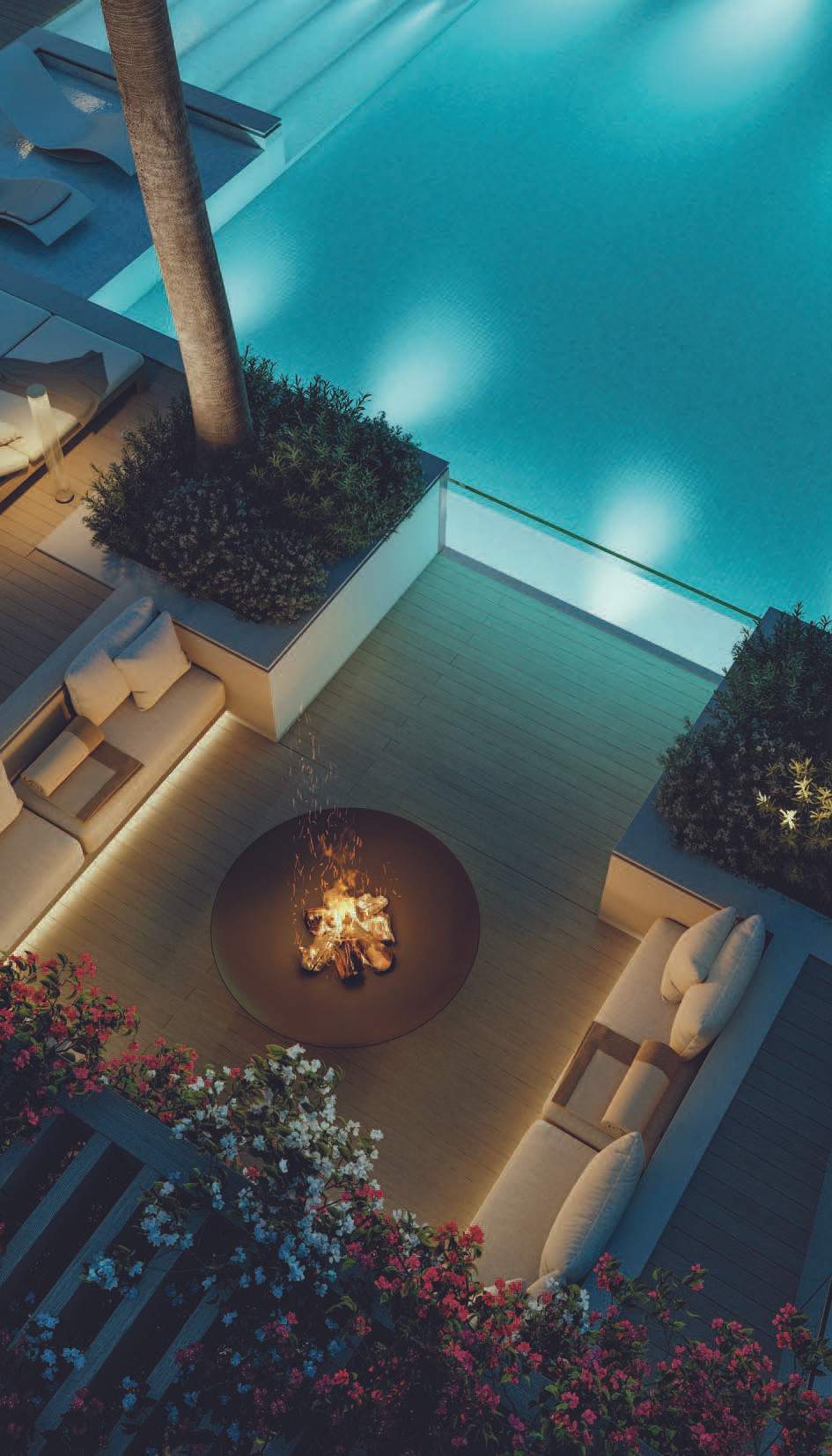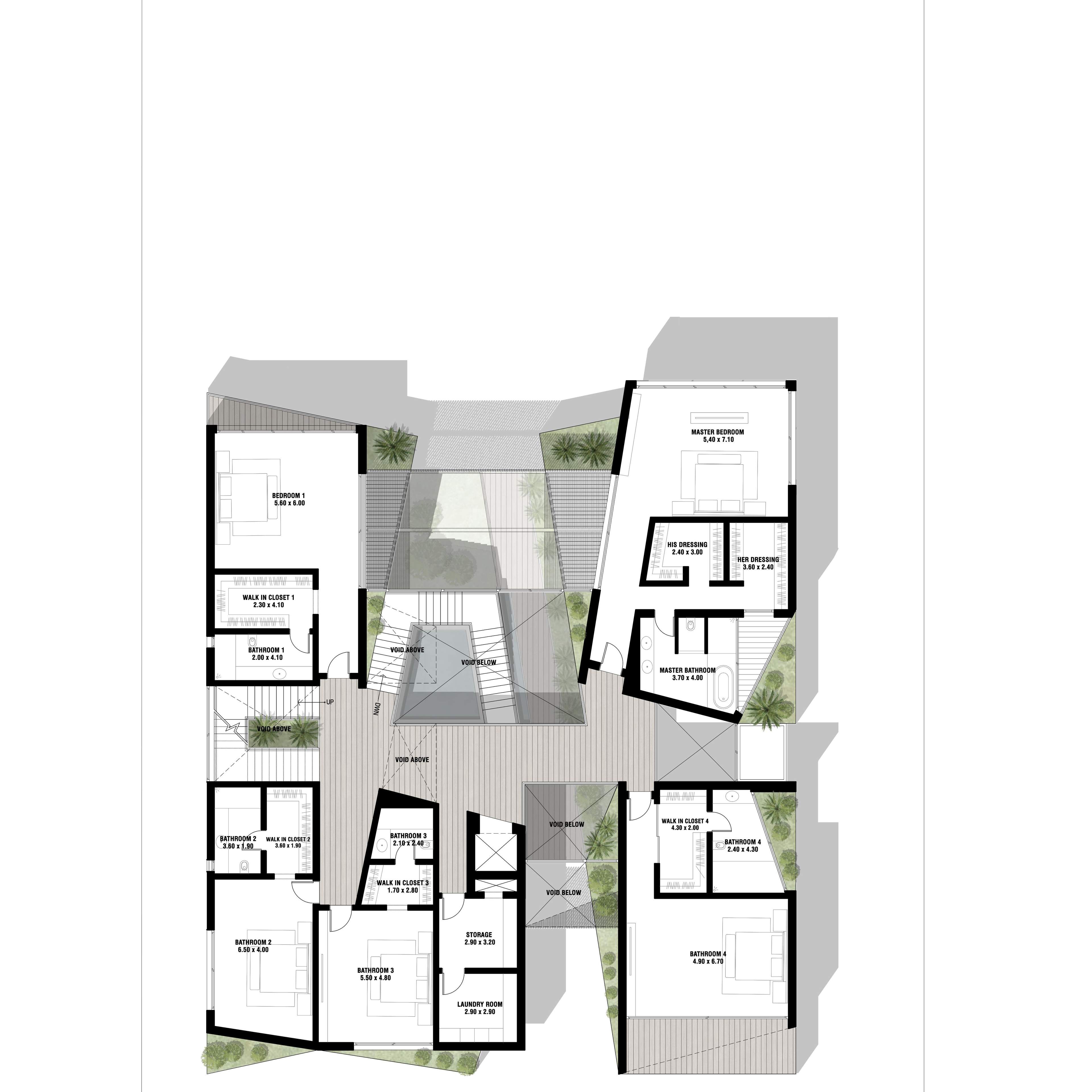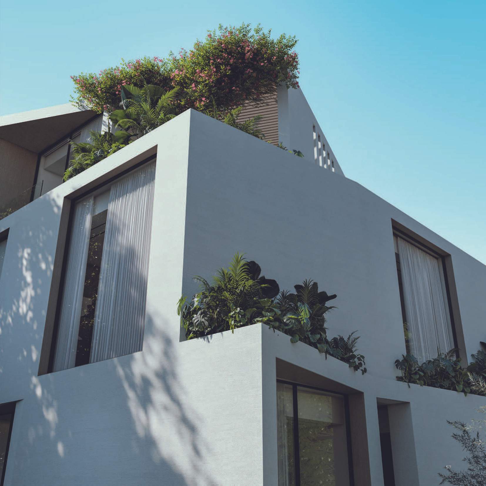 The design promotes seamless indoor-outdoor connectivity through decking, water features, and open voids. A highlight is the Summer Garden, an indoor-outdoor transitional space enhanced by automated sliding louvers. Large glazed openings and green pockets throughout the villas integrate nature into the living environment, creating a harmonious blend of luxury and natural beauty.