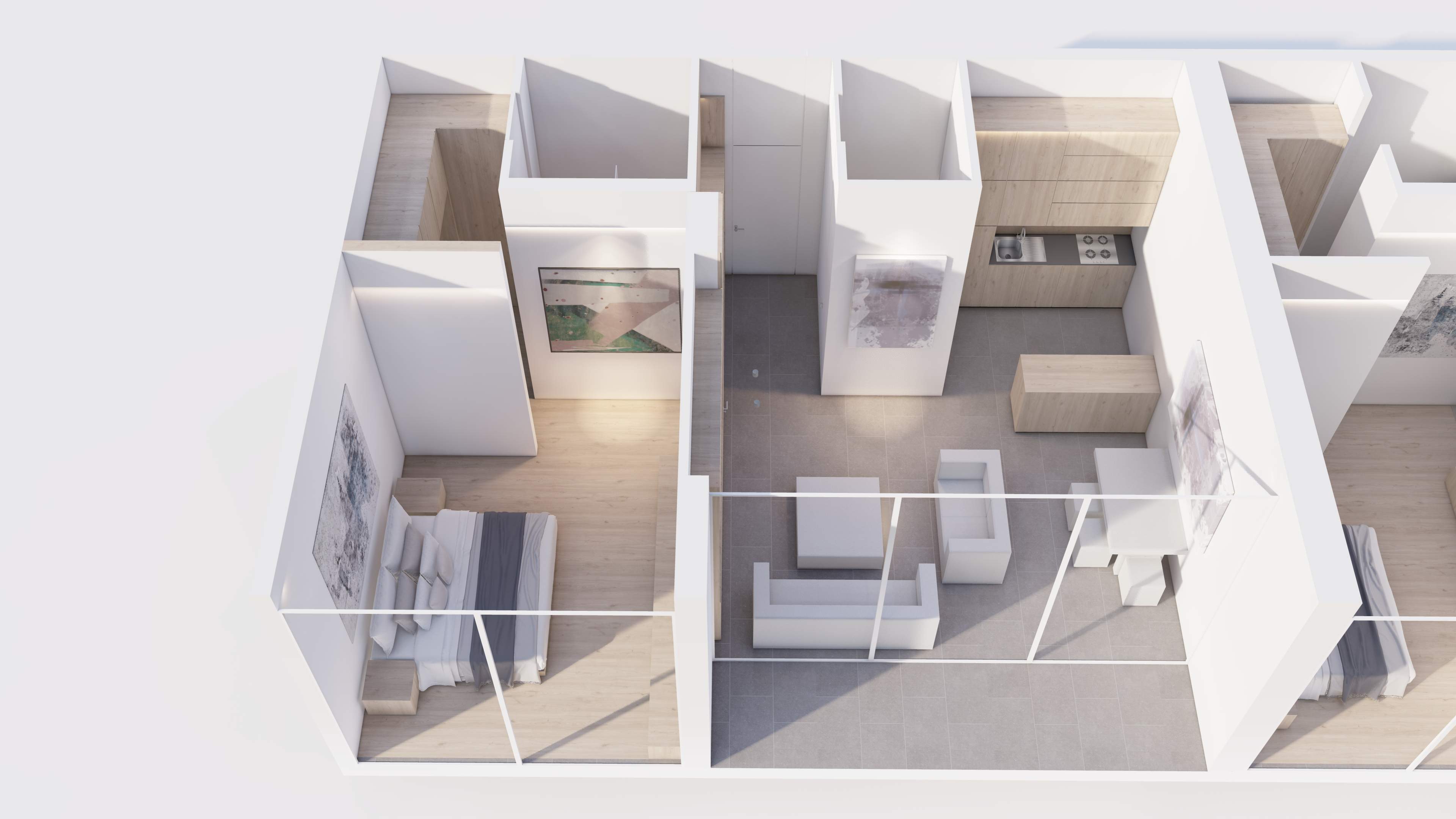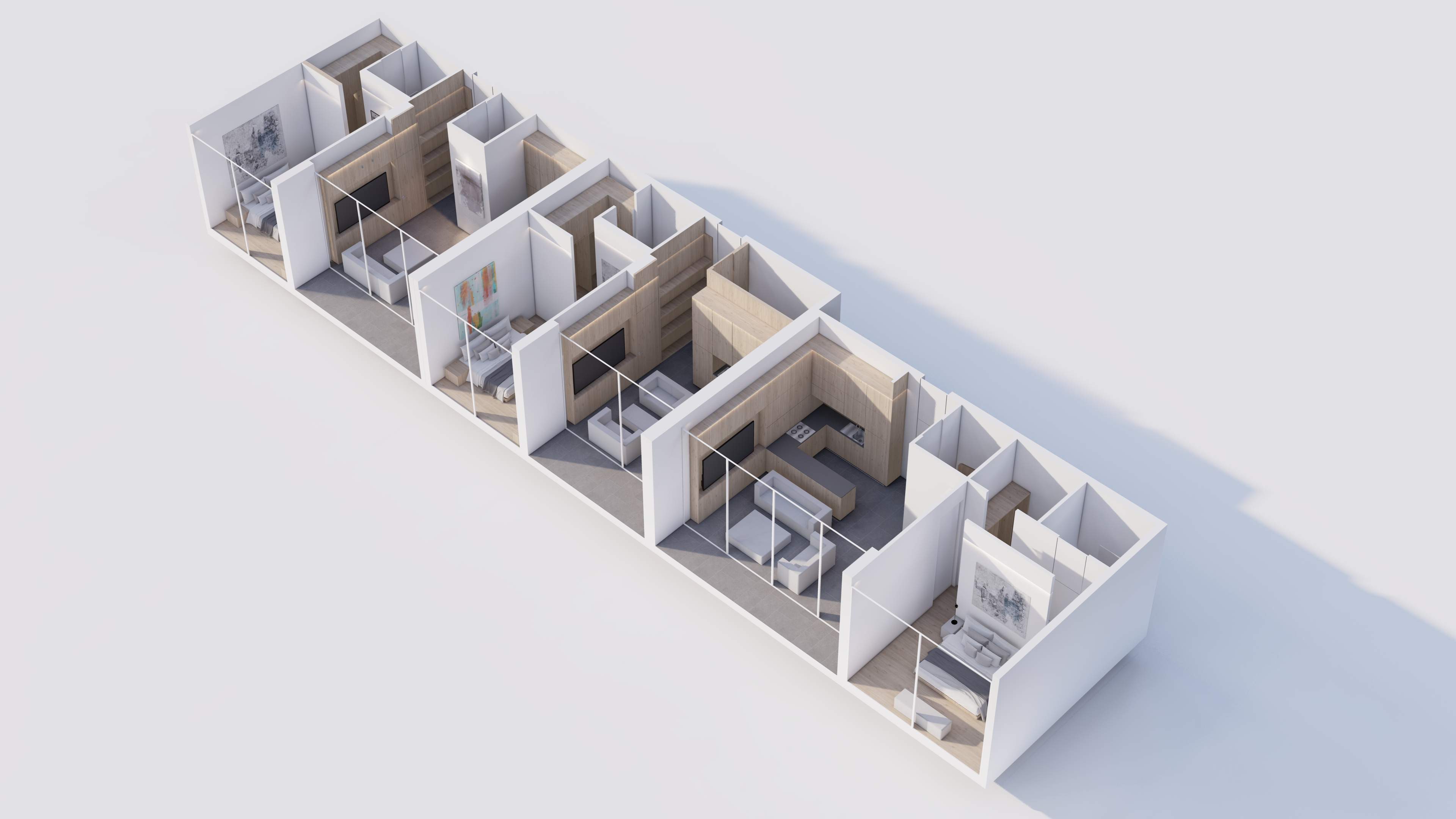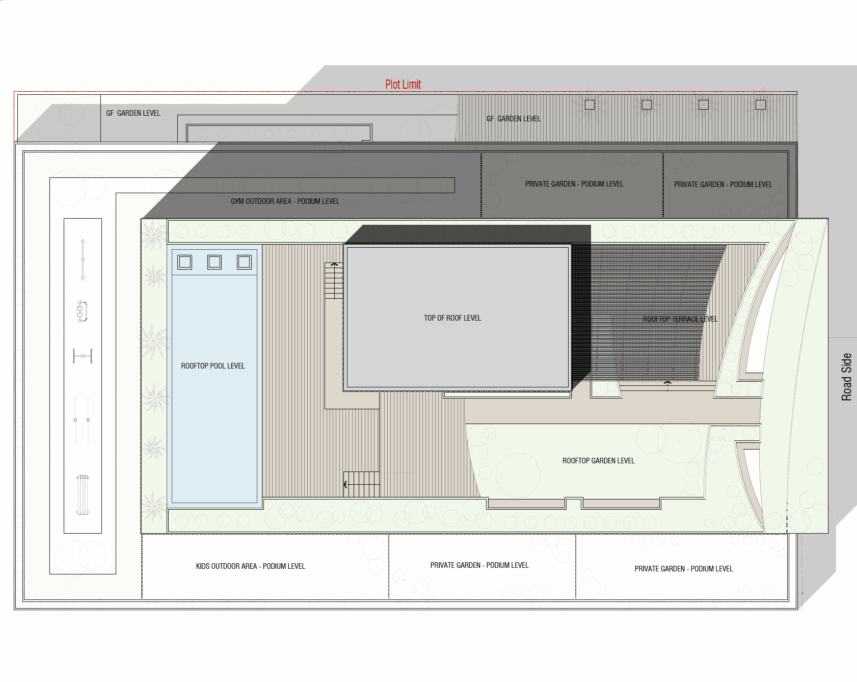The ground floor is designed to actively engage with its surroundings, featuring wide entrances, clear pathways, and designated communal areas. This design fosters a sense of openness and ease of navigation, contributing to a strong sense of community among residents.