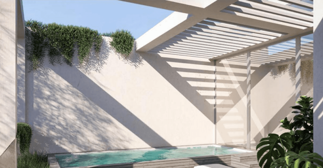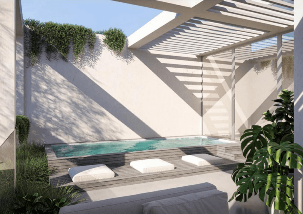 The townhouse is designed with three levels that balance communal and private areas for optimal comfort and functionality. The rooftop features a pool and a lush garden, offering a private retreat with city views.