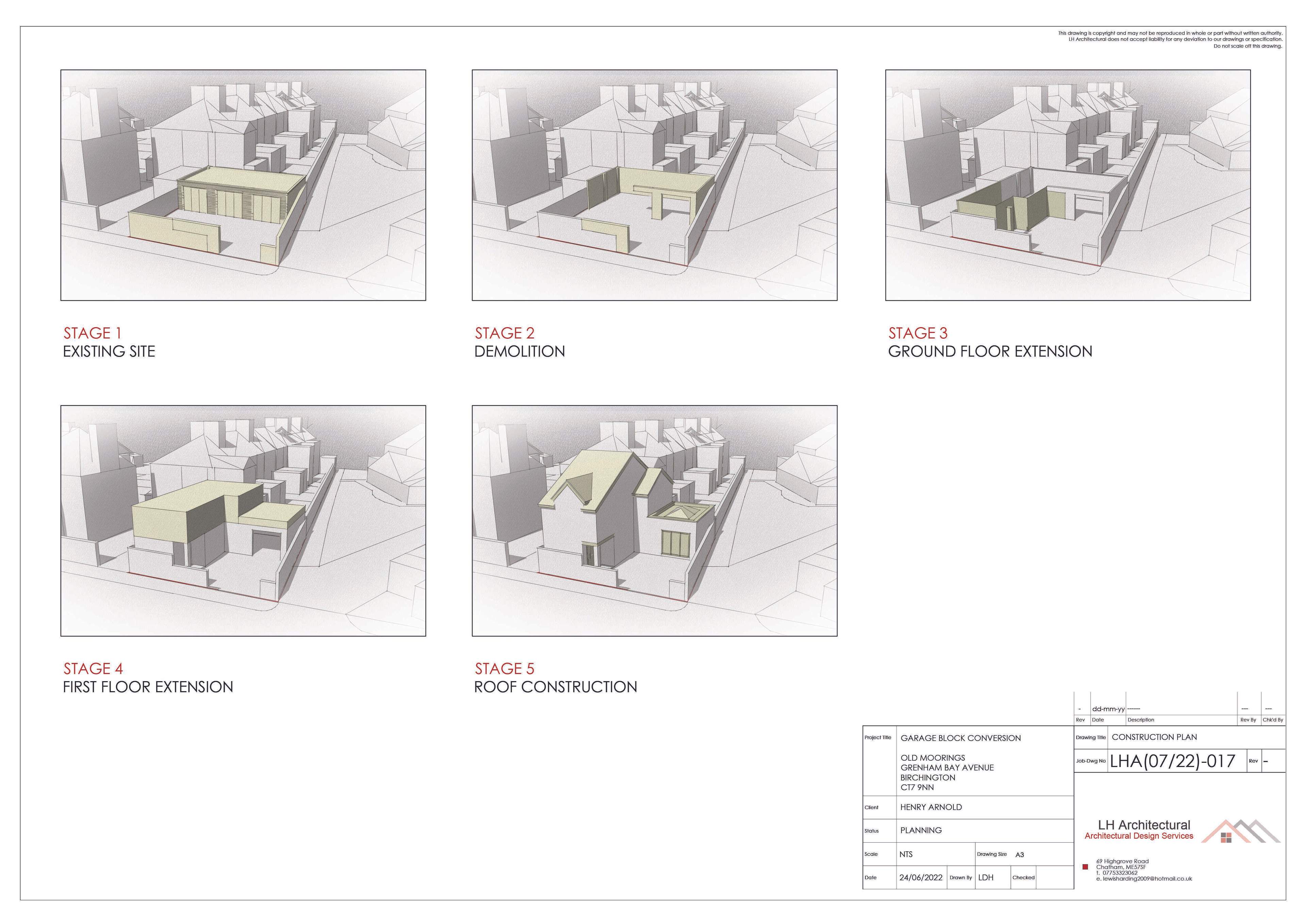 This project was for a new property investor who had purchased a set of three garages on a corner plot, seeking to convert them to a residential dwelling. the site had previous lapsed planning for a single storey dwelling with basement level however the client didn't wish to proceed with this due to the excessively high construction costs. The main constraint with this site was the sewer running through the middle of the site which called for careful design and wall placement to avoid diverting the sewer and opting for a build over agreement.