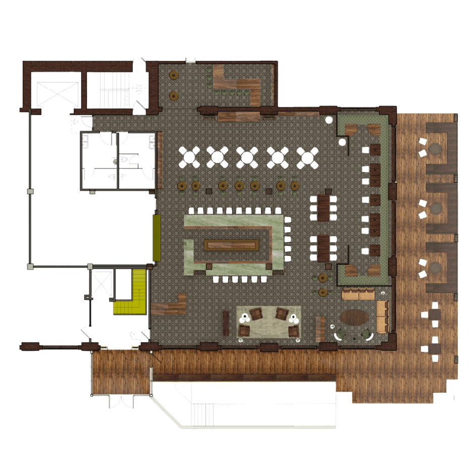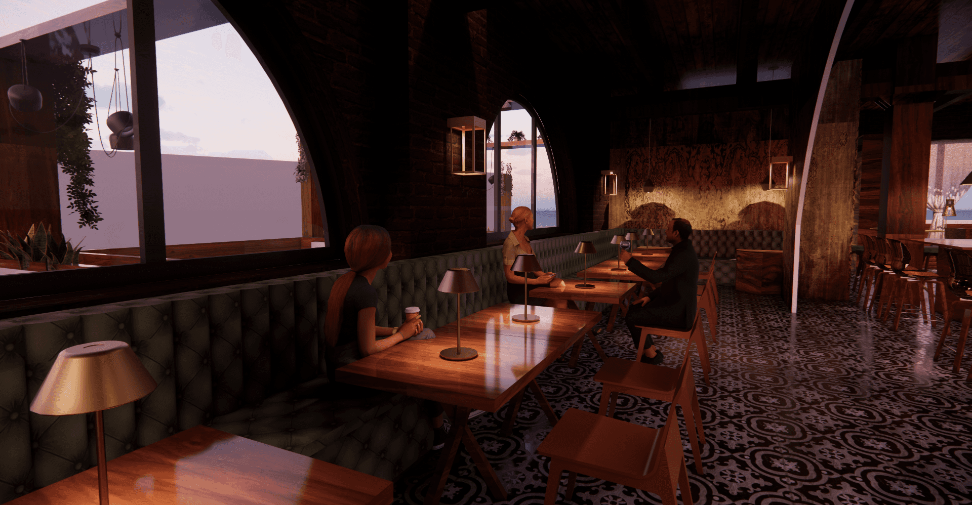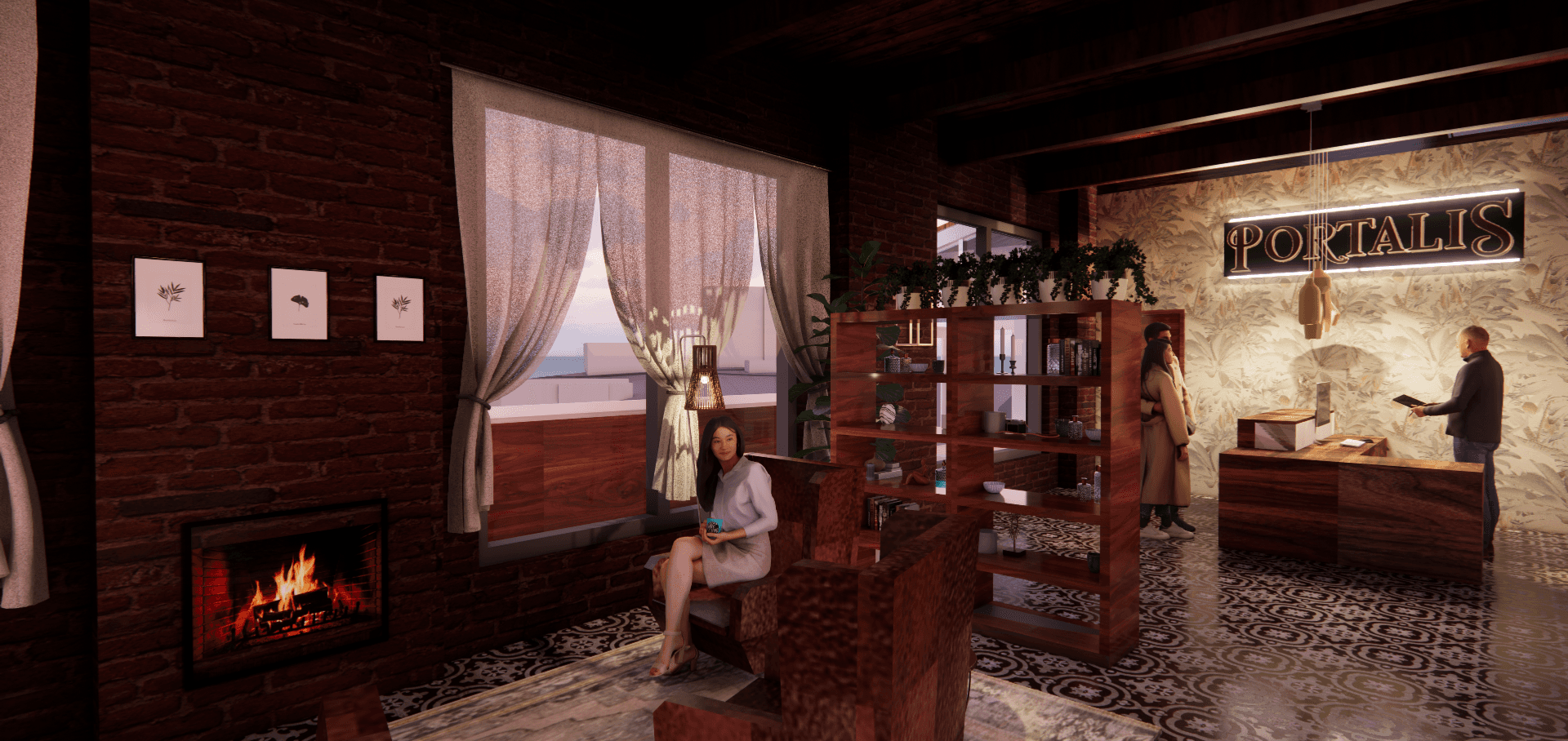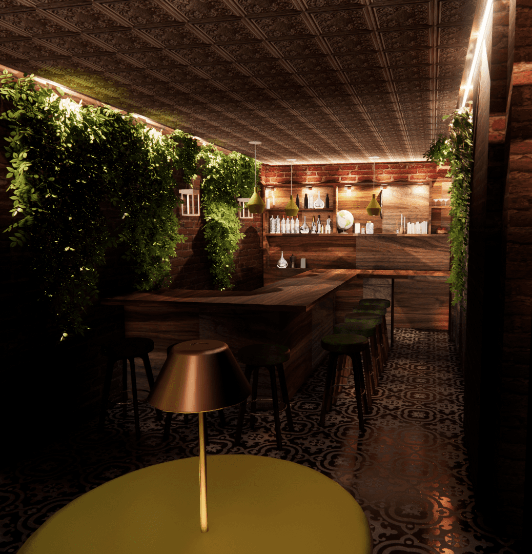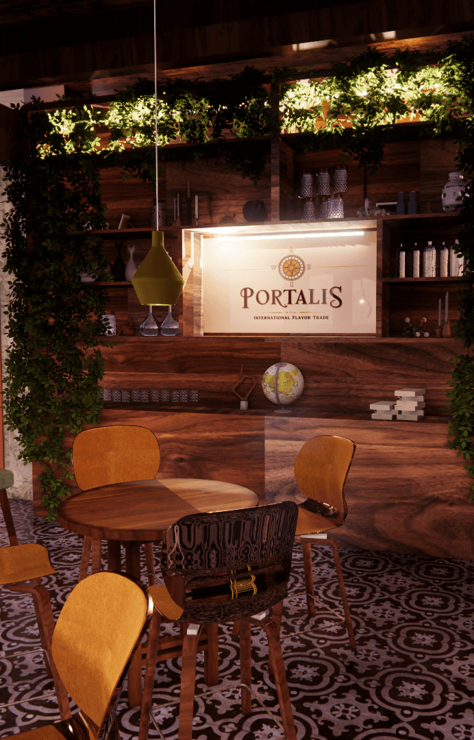 Portalis is a concept-driven craft cocktail bar inspired by the science of botanicals and herbal remedies. Rooted in the history of global trade routes and river commerce, the design blends themes of exploration, innovation, and sustainability. Drawing from early 20th-century apothecaries and the industrial character of historic mills, the space combines reclaimed wood, aged brass, vintage maps, and hydroponic plants to create a timeless, immersive environment.