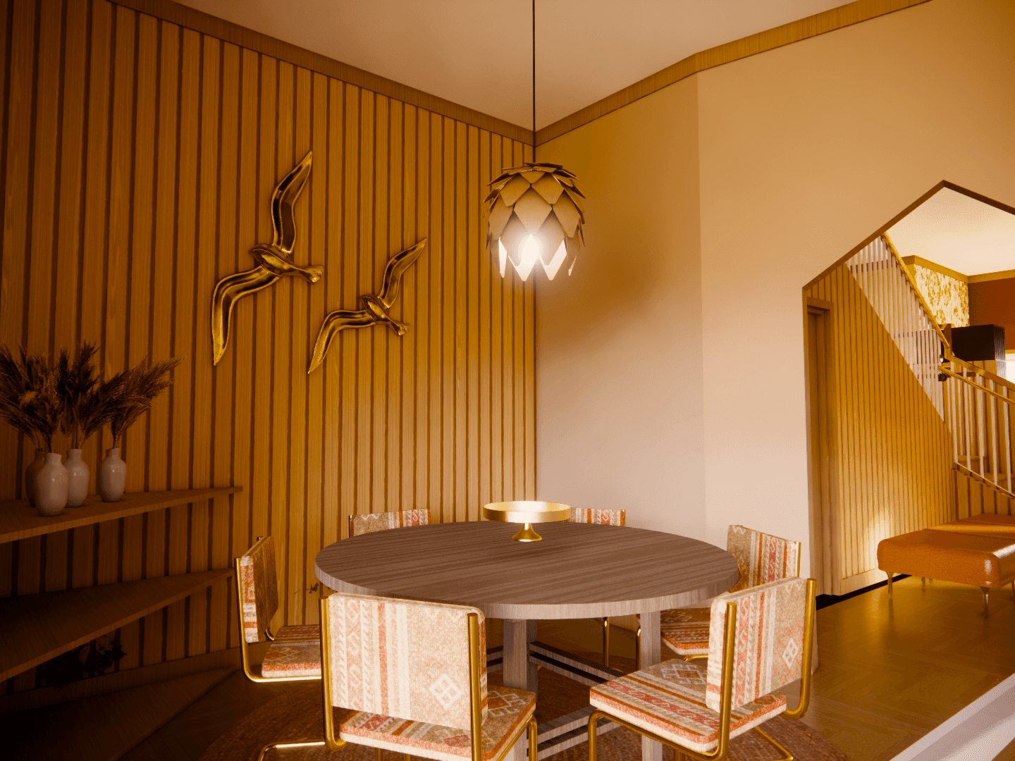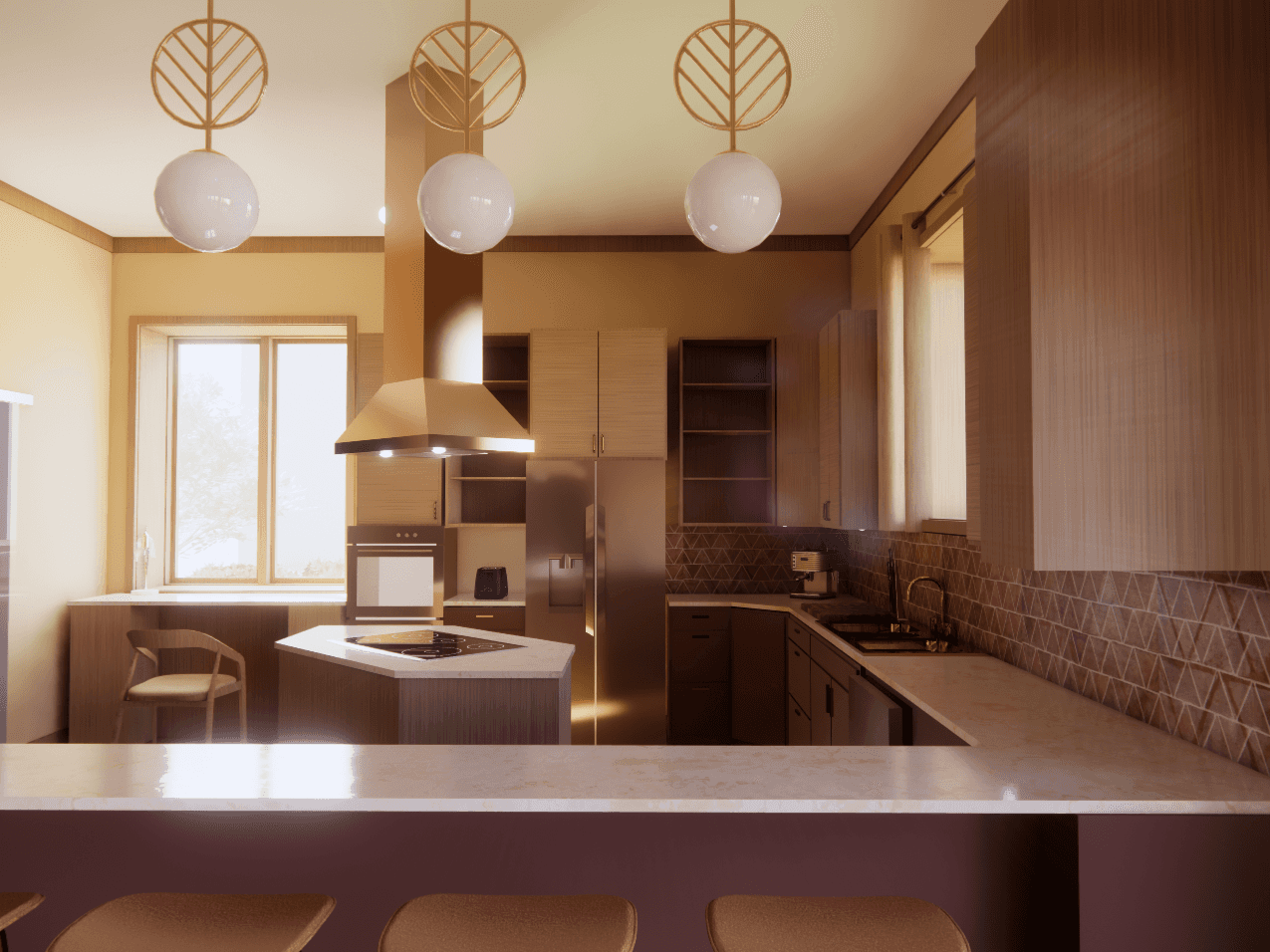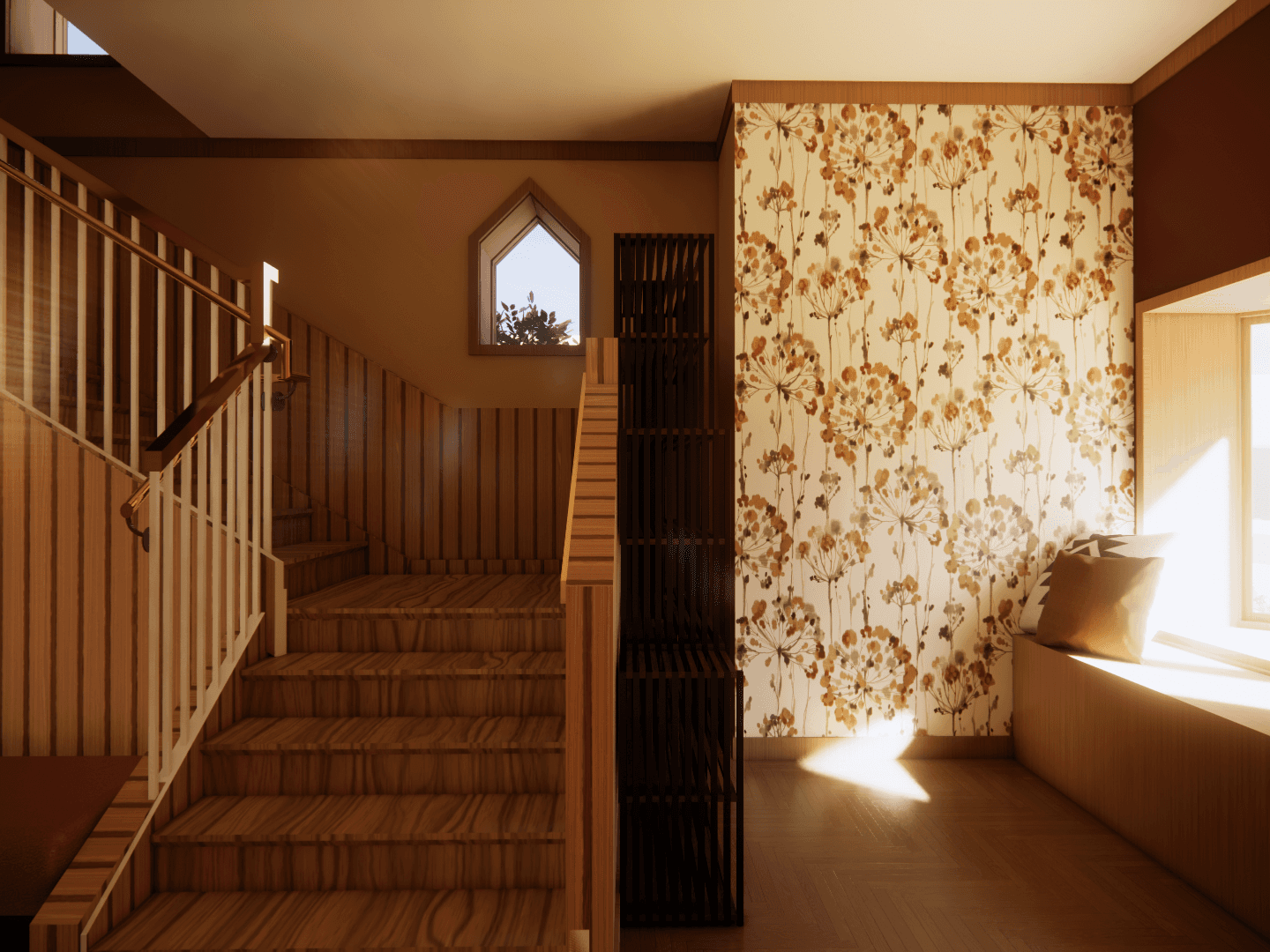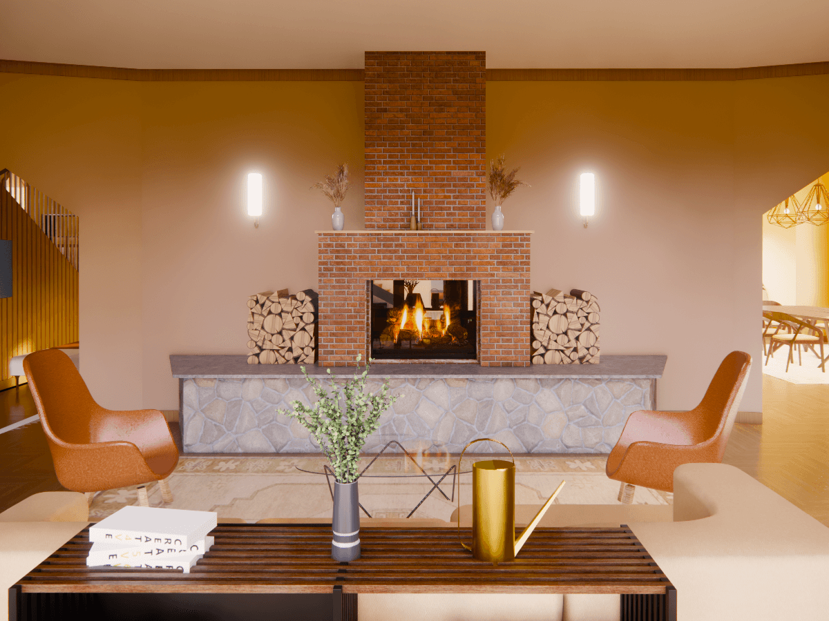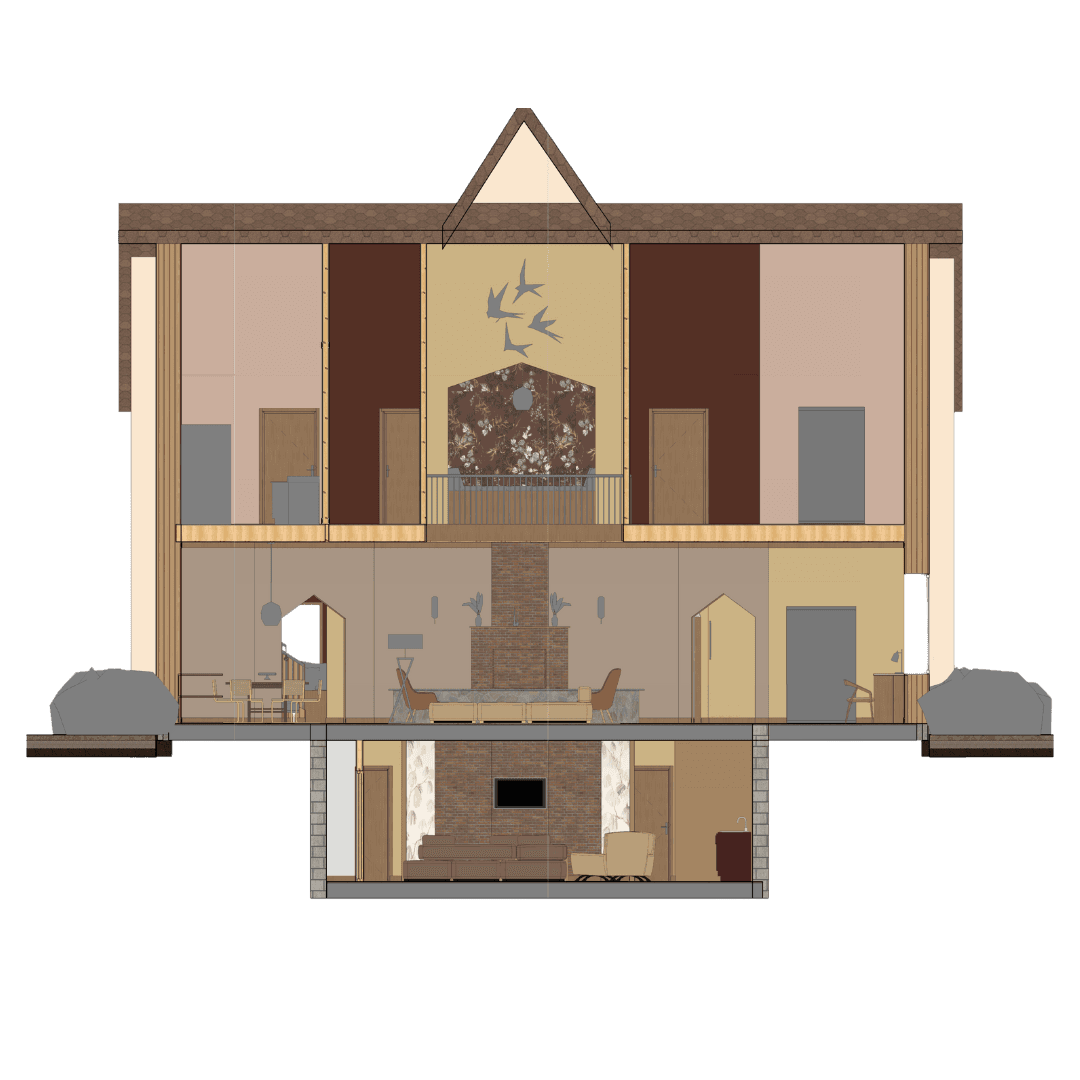 The concept of "Inner Light" is inspired by the motif of a Thunderbird—an Ojibwe symbol of protection, strength, and moral guidance. Often depicted as an inverted triangle, the Thunderbird represents the descent of spiritual energy from higher realms into the physical world, a symbol of awakening and self-realization. By following the teachings of the traditional Ojibwe 7th Fire prophecy, where it is believed that the present day is a time of awakening and a test of moral compass, this home aims to create connection through renewal and self-discovery. By using warm tones, is a place where the ancestral spirit guides each individual toward their truest path, igniting resilience and unity for years to come.