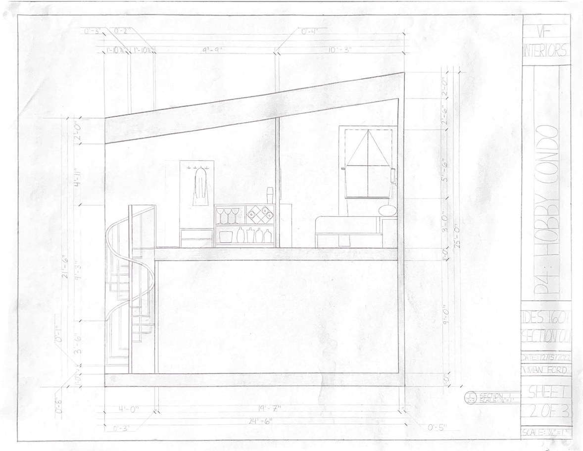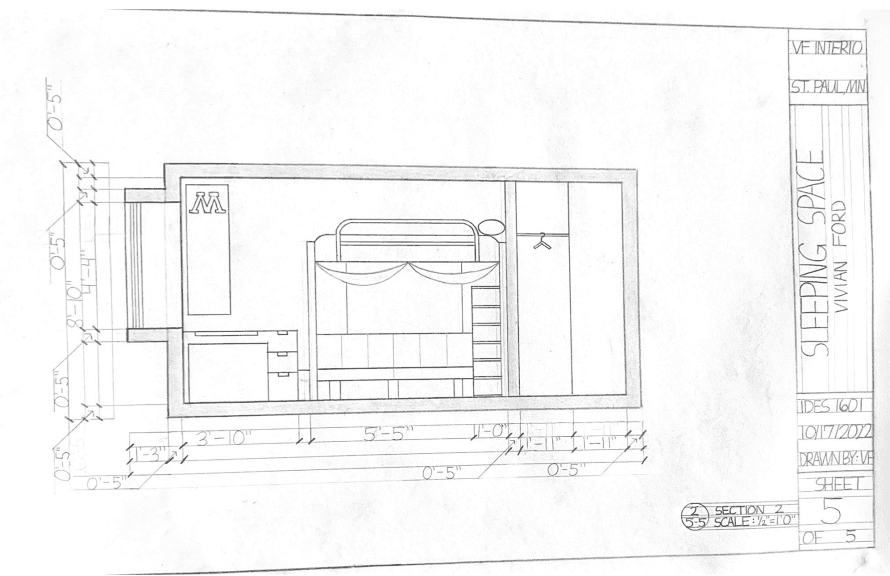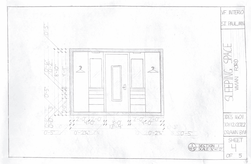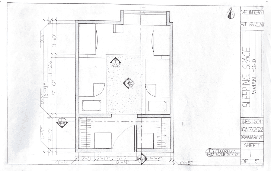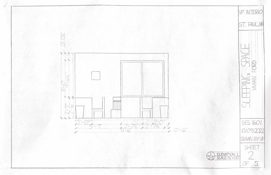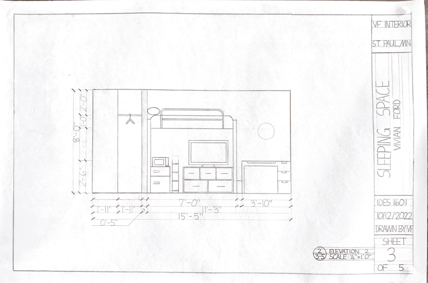 This was the very first project that was hand-drafted during my Freshman year. The task was to represent as accurately as possible the place where we sleep. Below is a representation of my Freshman year dorm room.