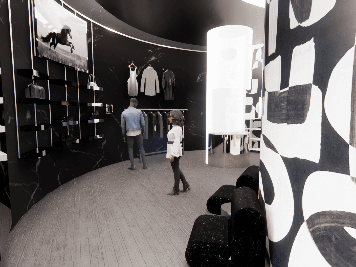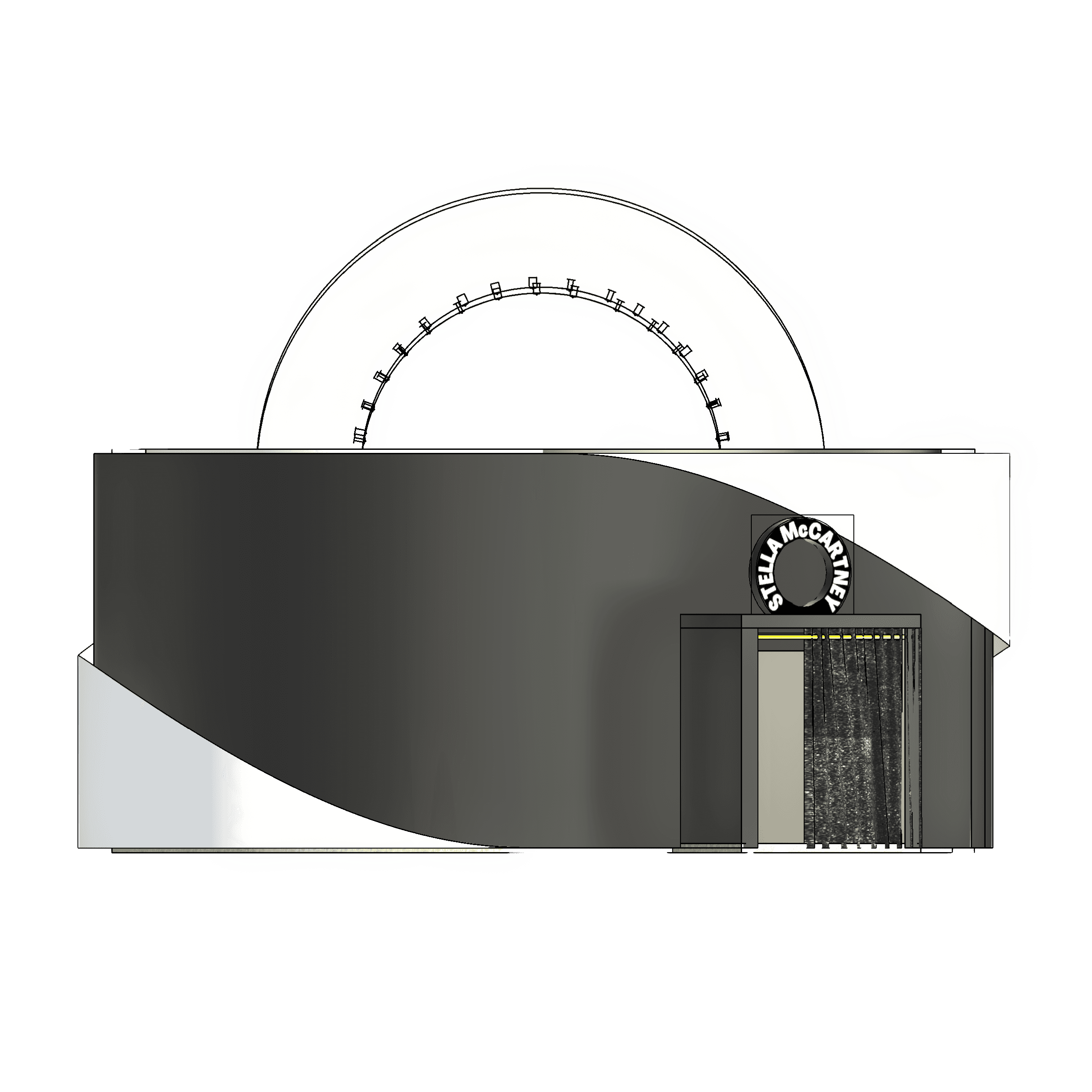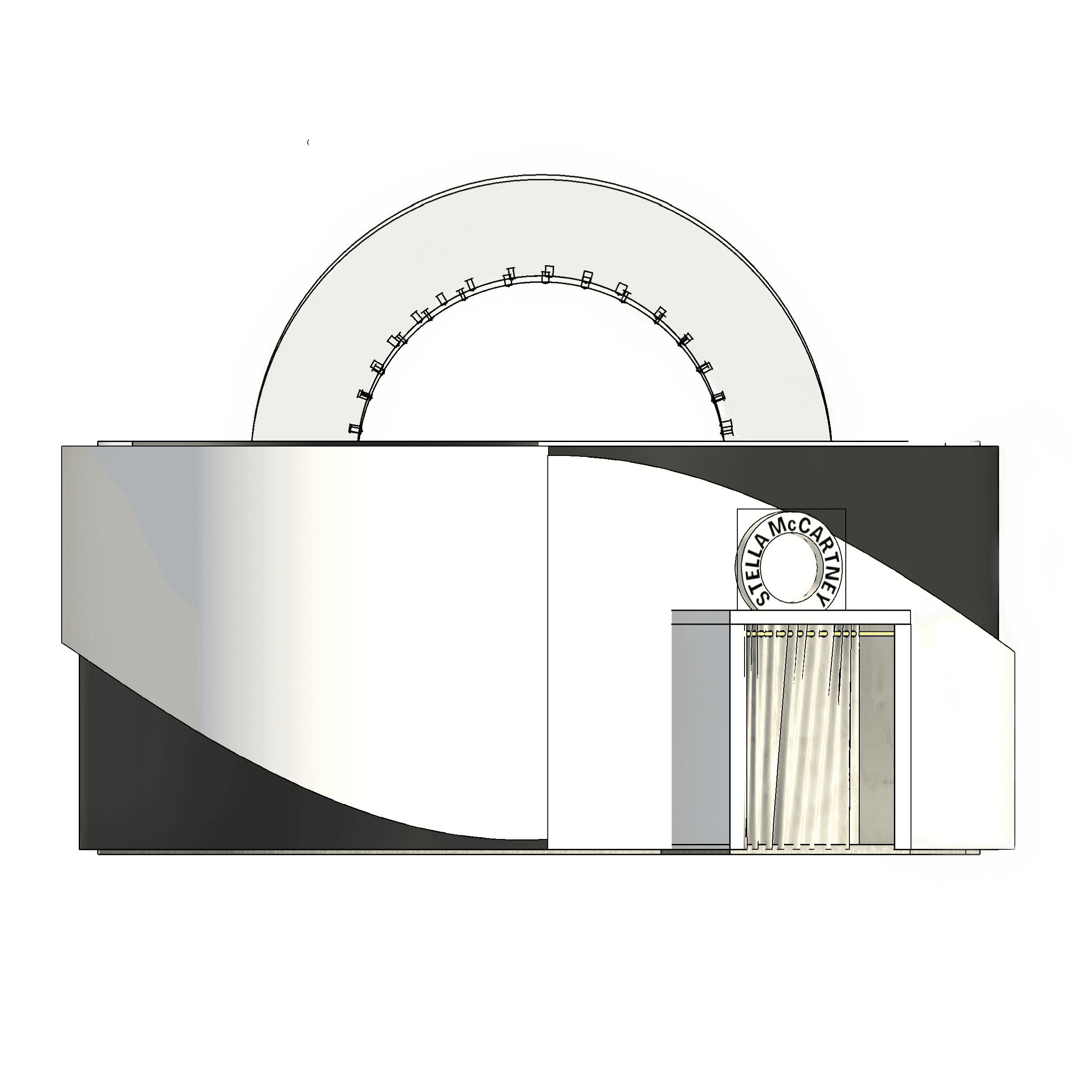This innovative pop-up store showcases Stella McCartney's dedication to sustainability and circular fashion. Designed as a yin-yang symbol, the structure embodies the brand’s core values of harmony, duality, and regeneration. The circular form reflects the balance between nature and fashion, with two distinct spaces highlighting the Black Edit and White Edit collections. Located in Central Park, the pop-up is strategically placed between the iconic Plaza Hotel, hosting the Fashion Group International (FGI) Night of Stars, and the Central Park Zoo, home to the National Animal Conservation Society.